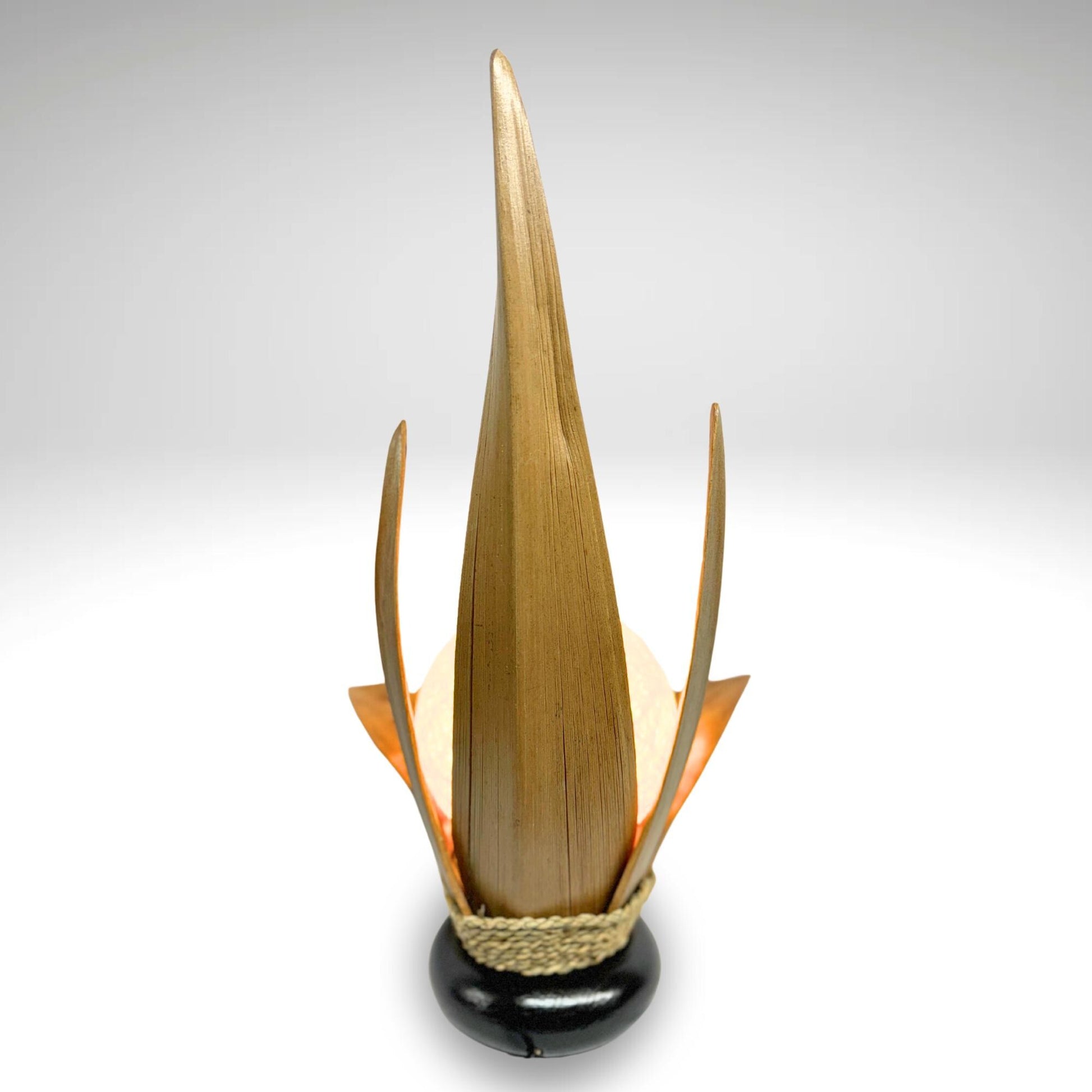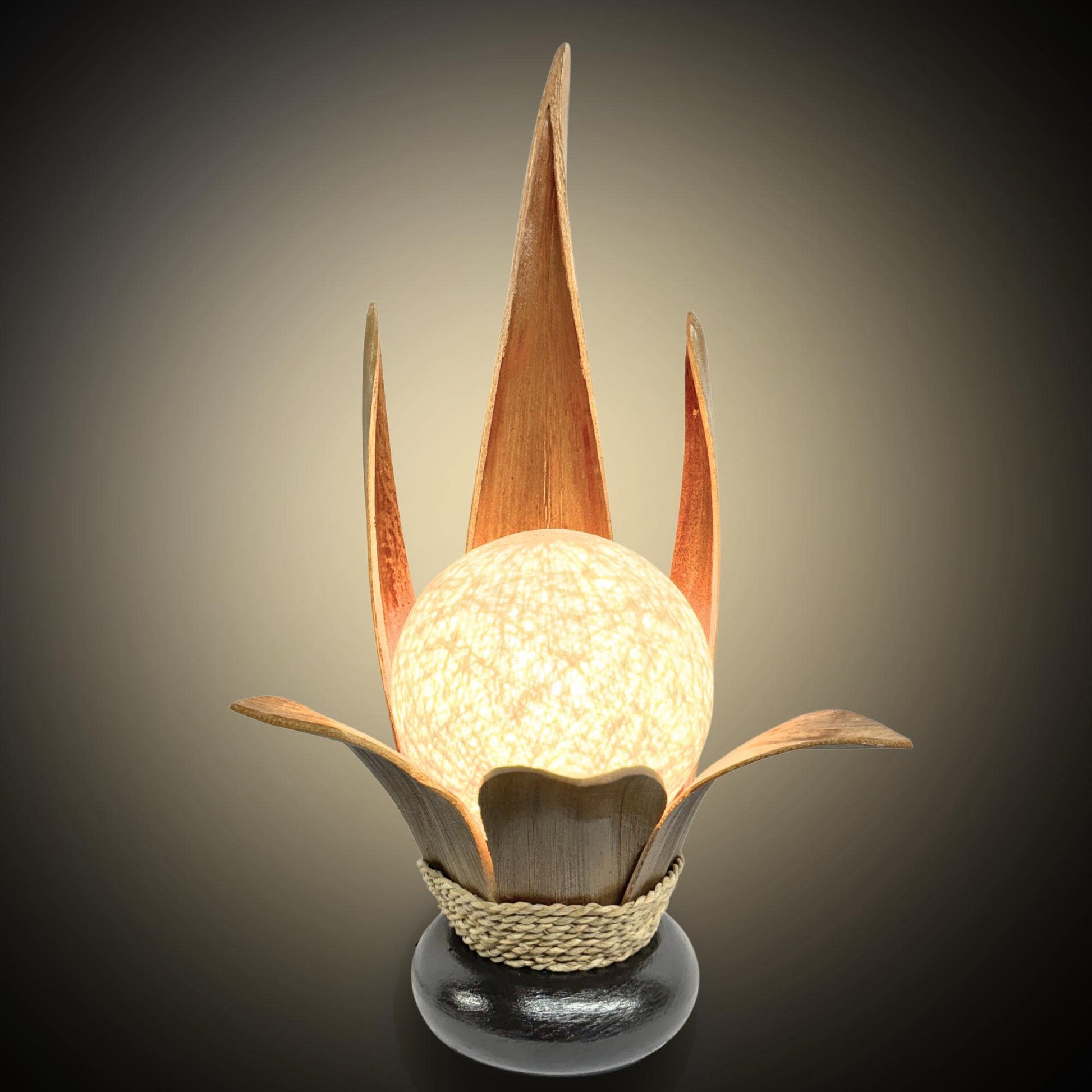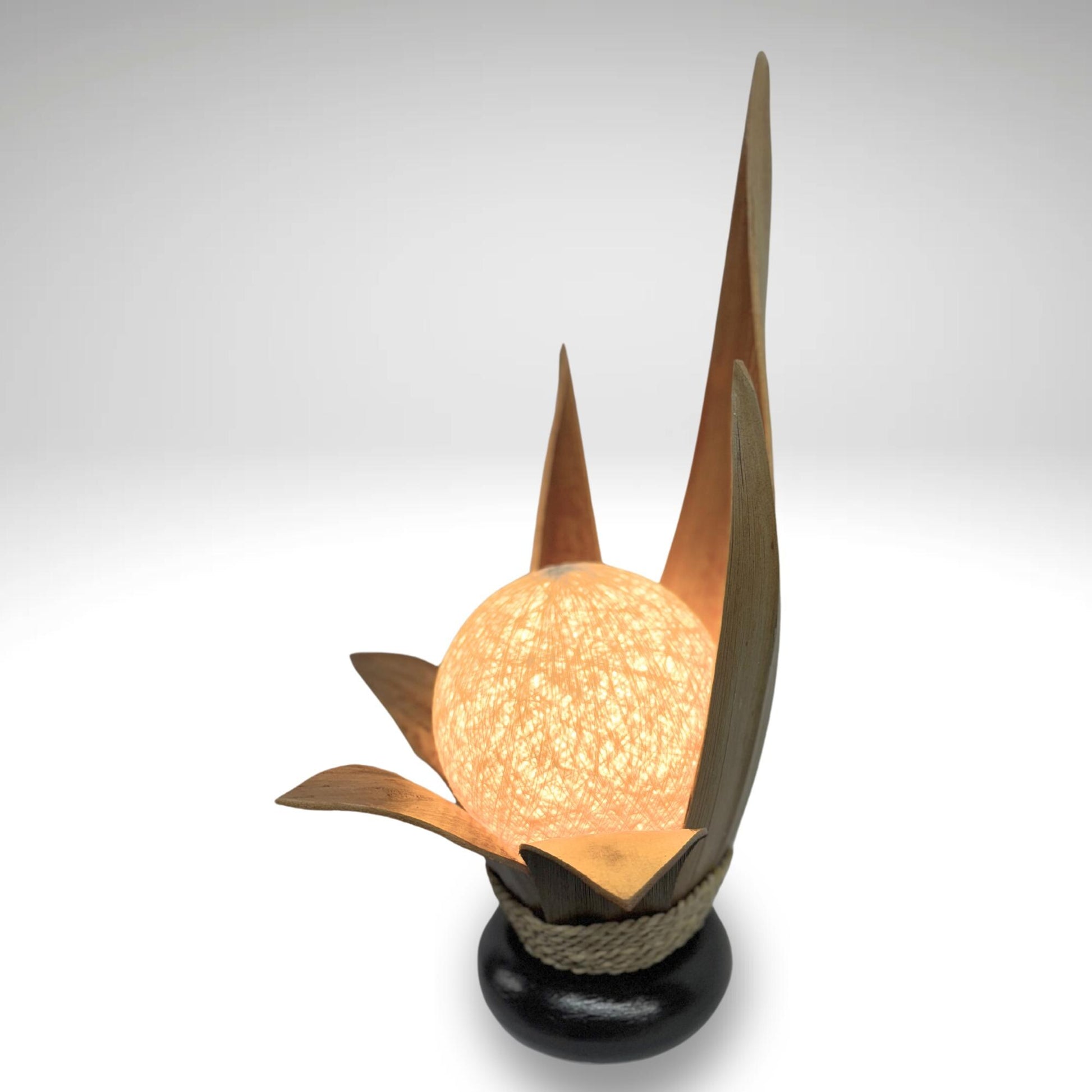 Accent Table Lamp Lotus Natural Upcycled Palm Frond Sheath Boho Decor Handmade Balinese Homeware Art