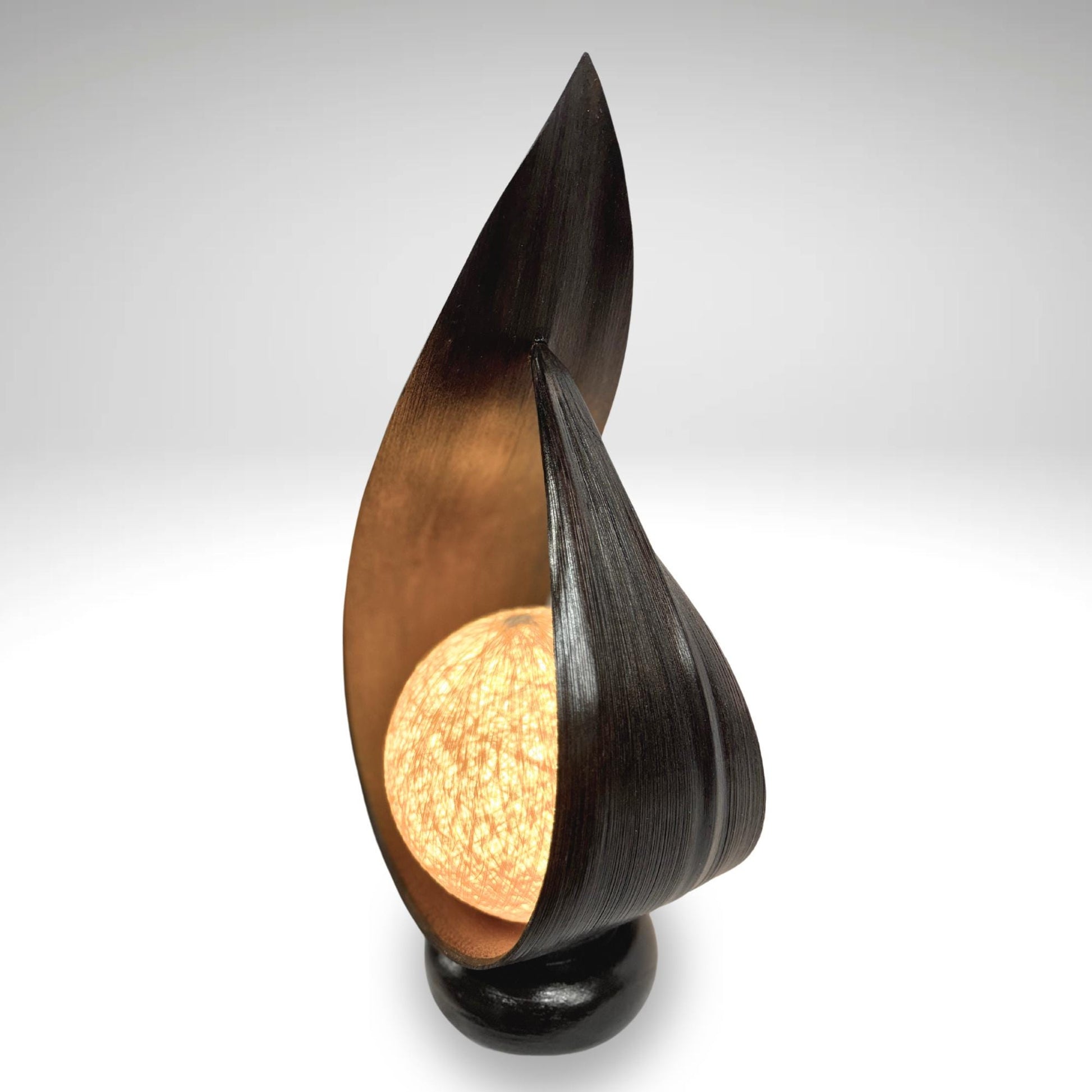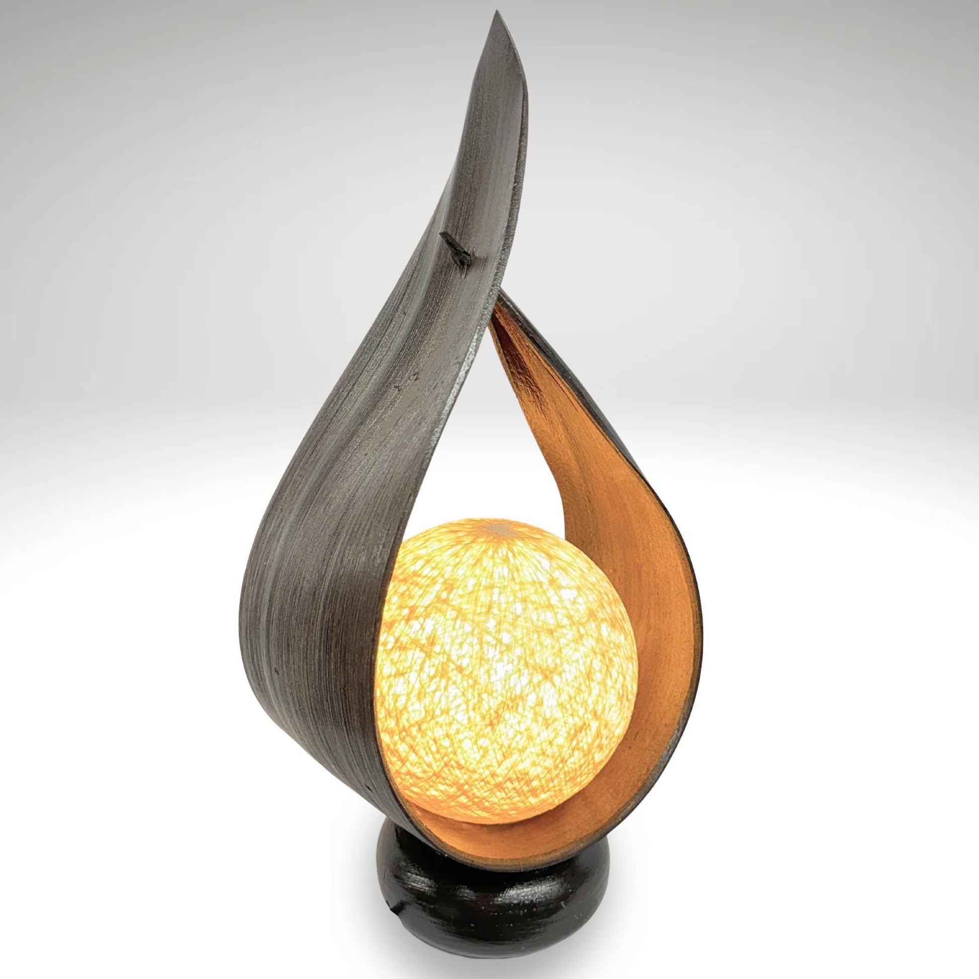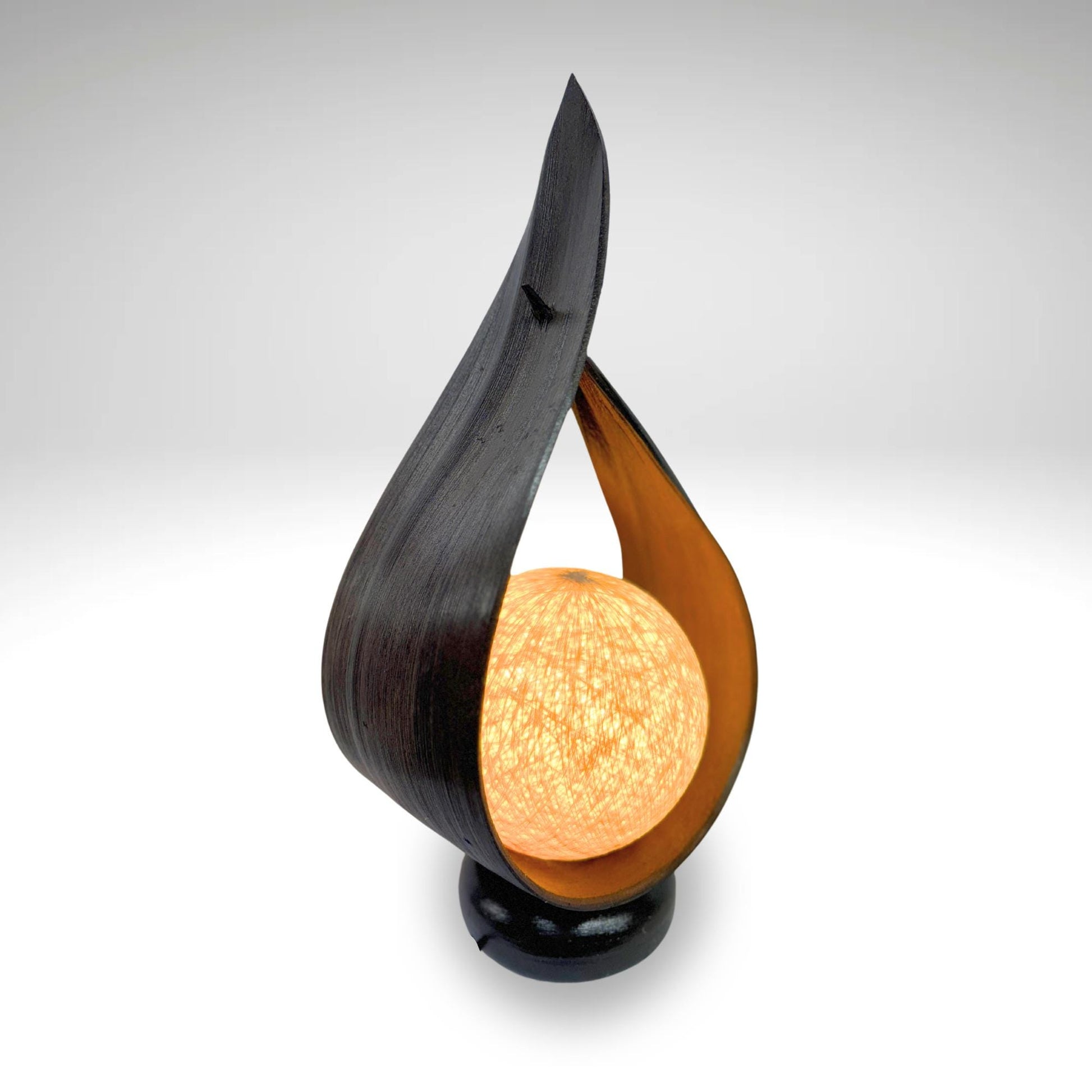 Accent Table Lamp Natural Upcycled Palm Frond Sheath Teardrop Boho Decor Handmade Balinese Homeware Art Coffee