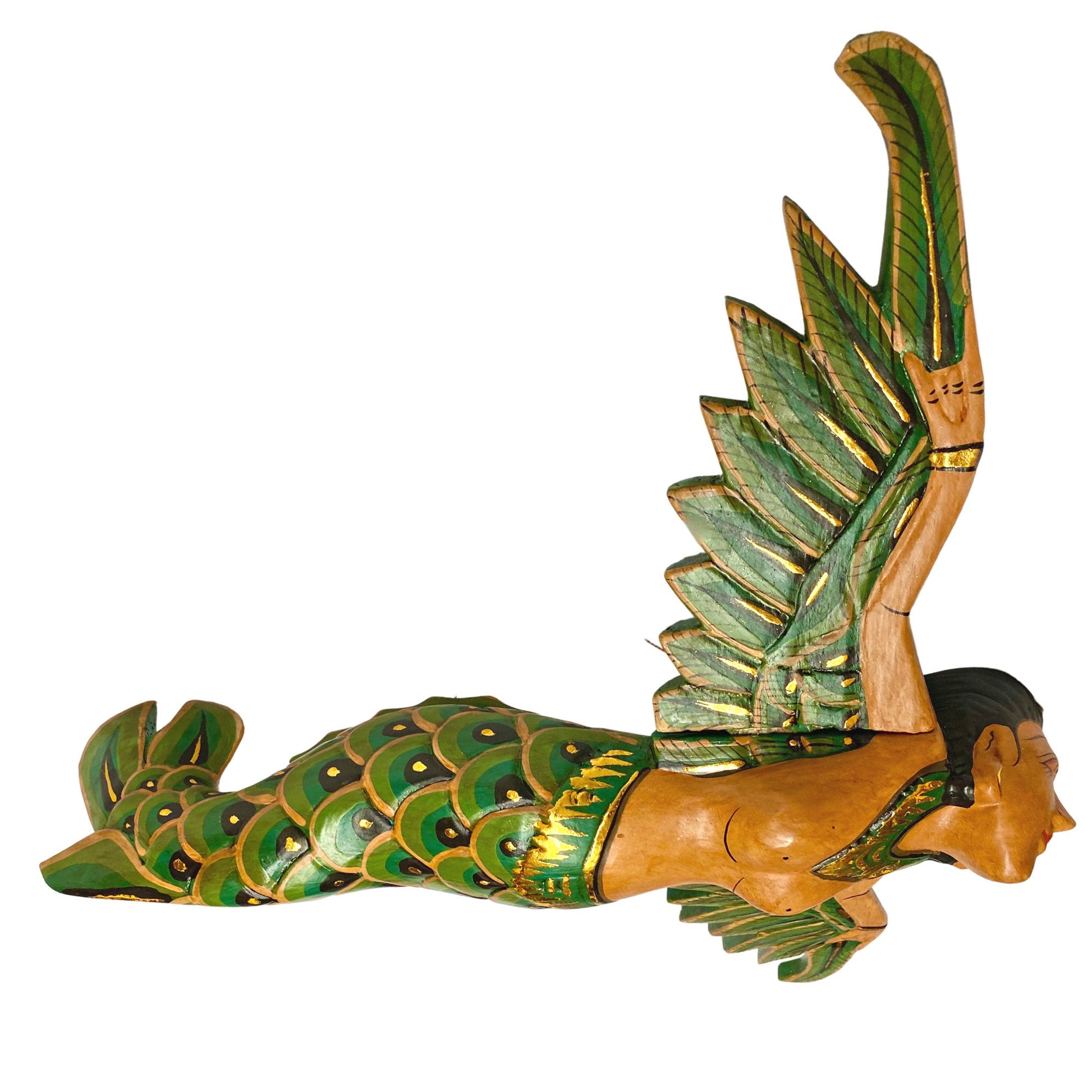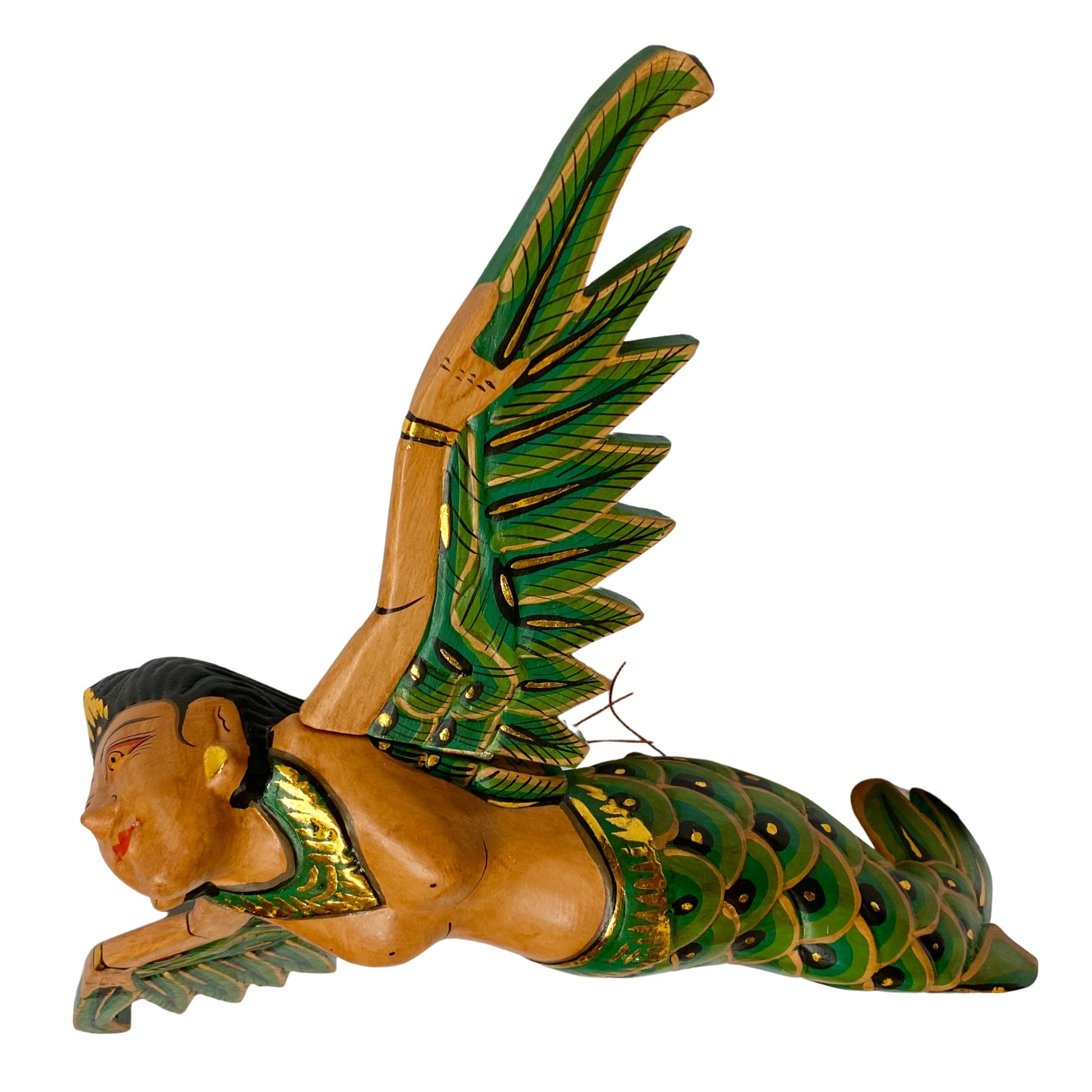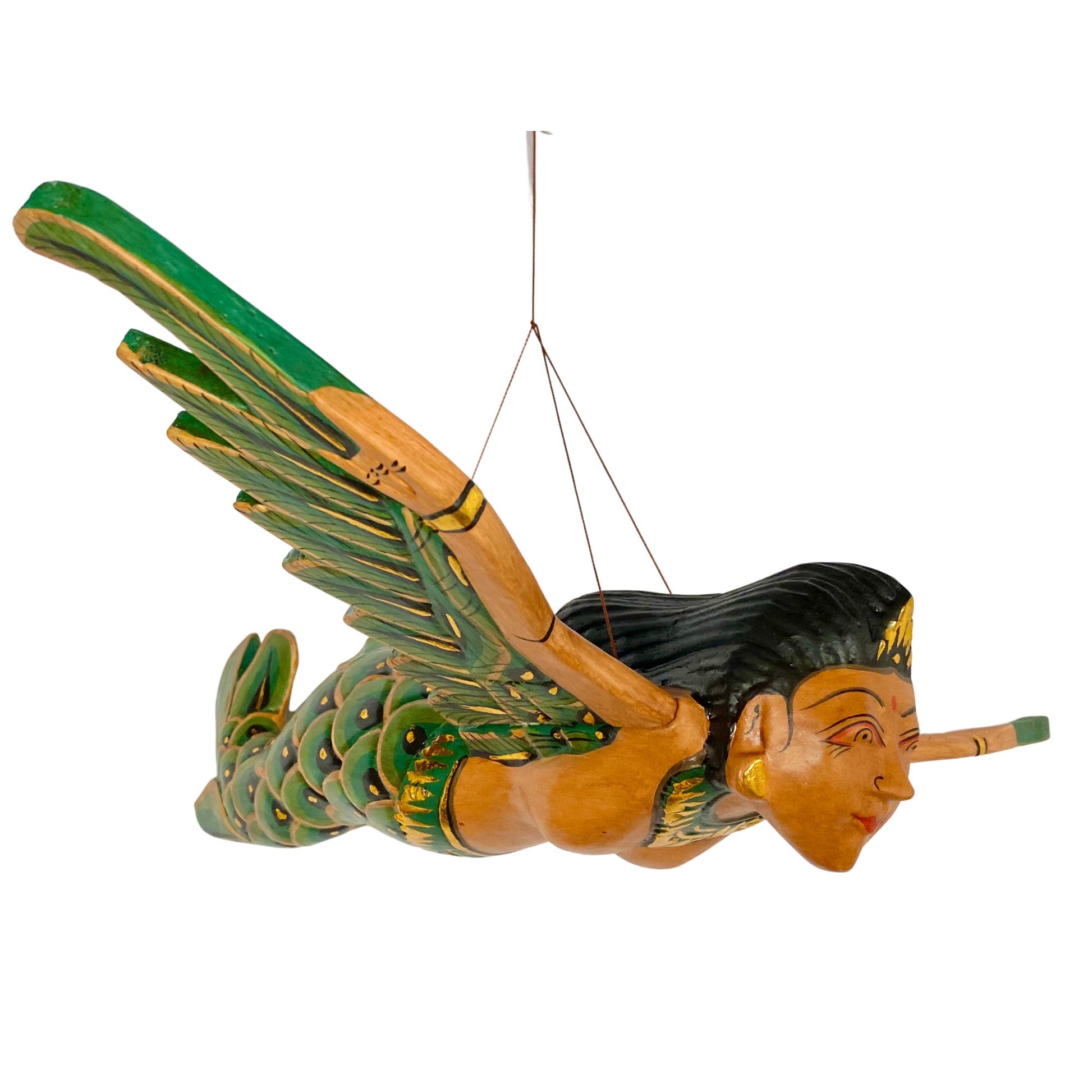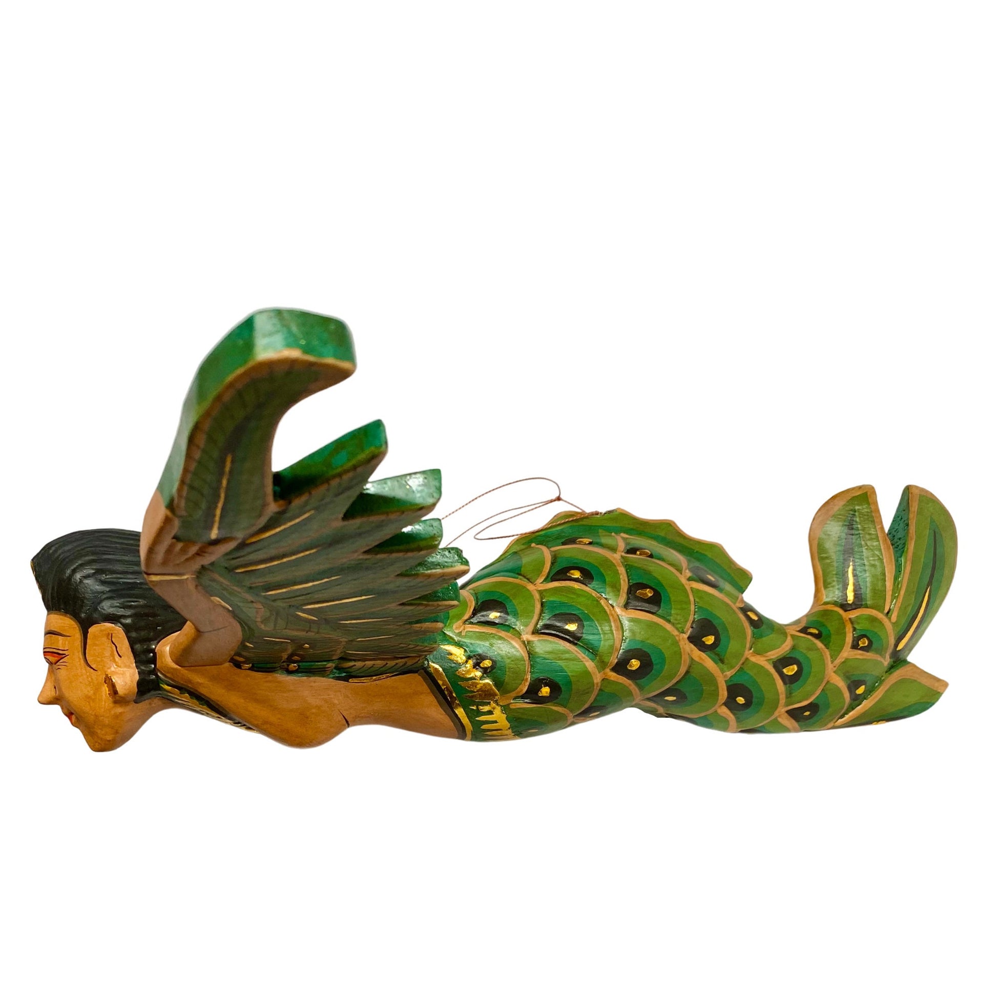 Bali Mermaid Mobile Goddess Winged Flying Sea Maiden Spirit Chaser Cradle Guardian Hand Carved Wood Green Balinese Folk art 16"