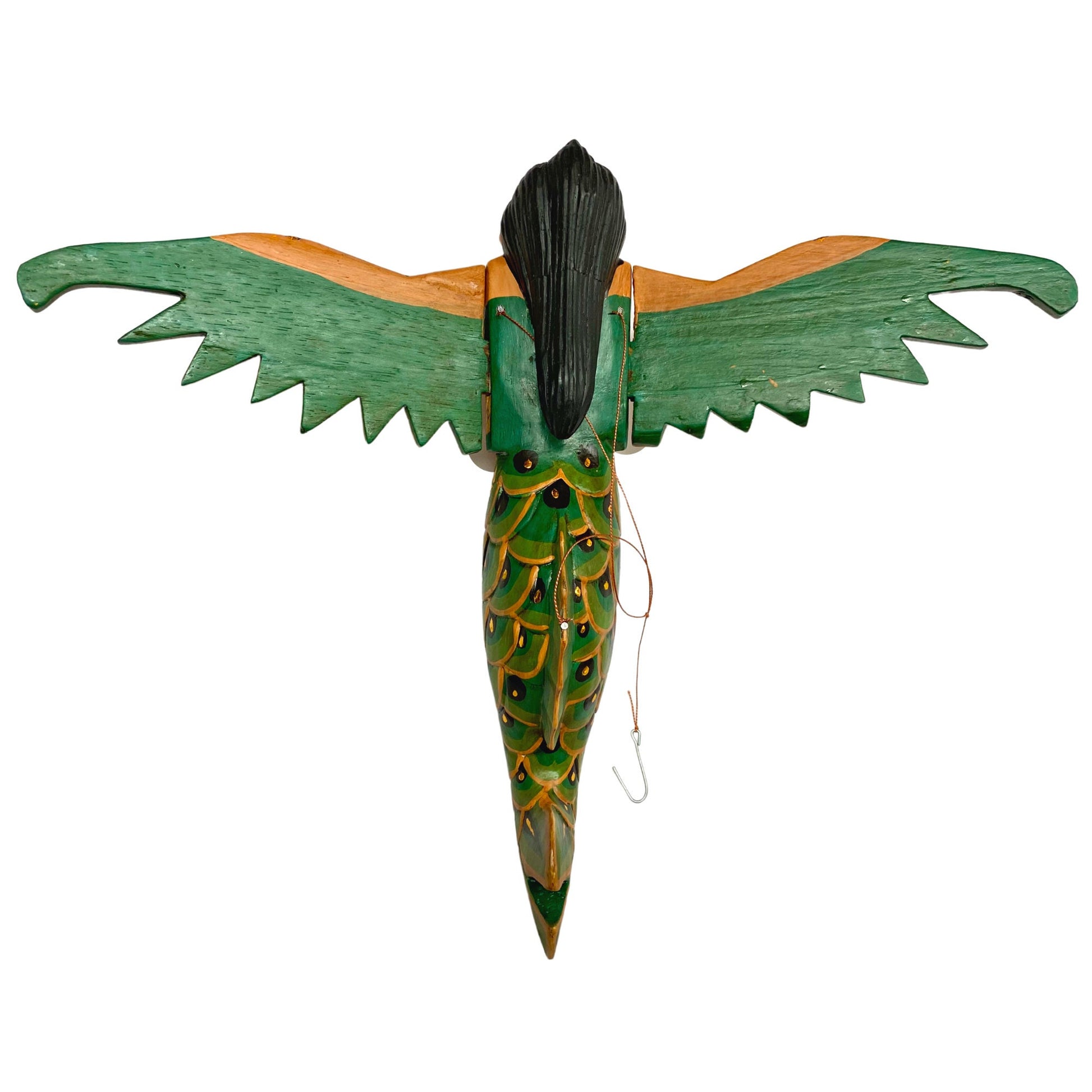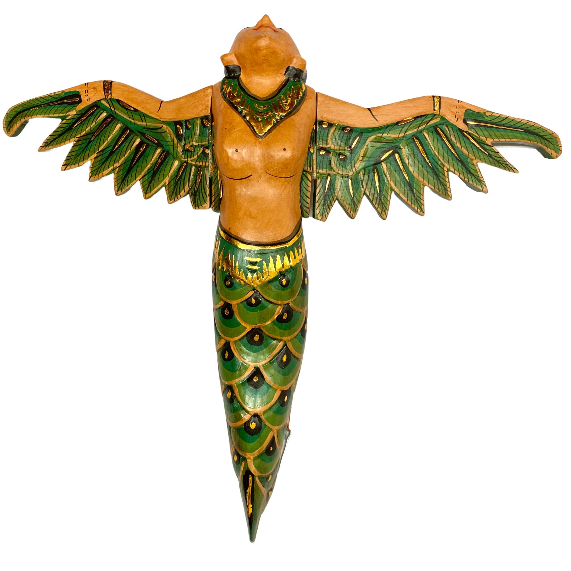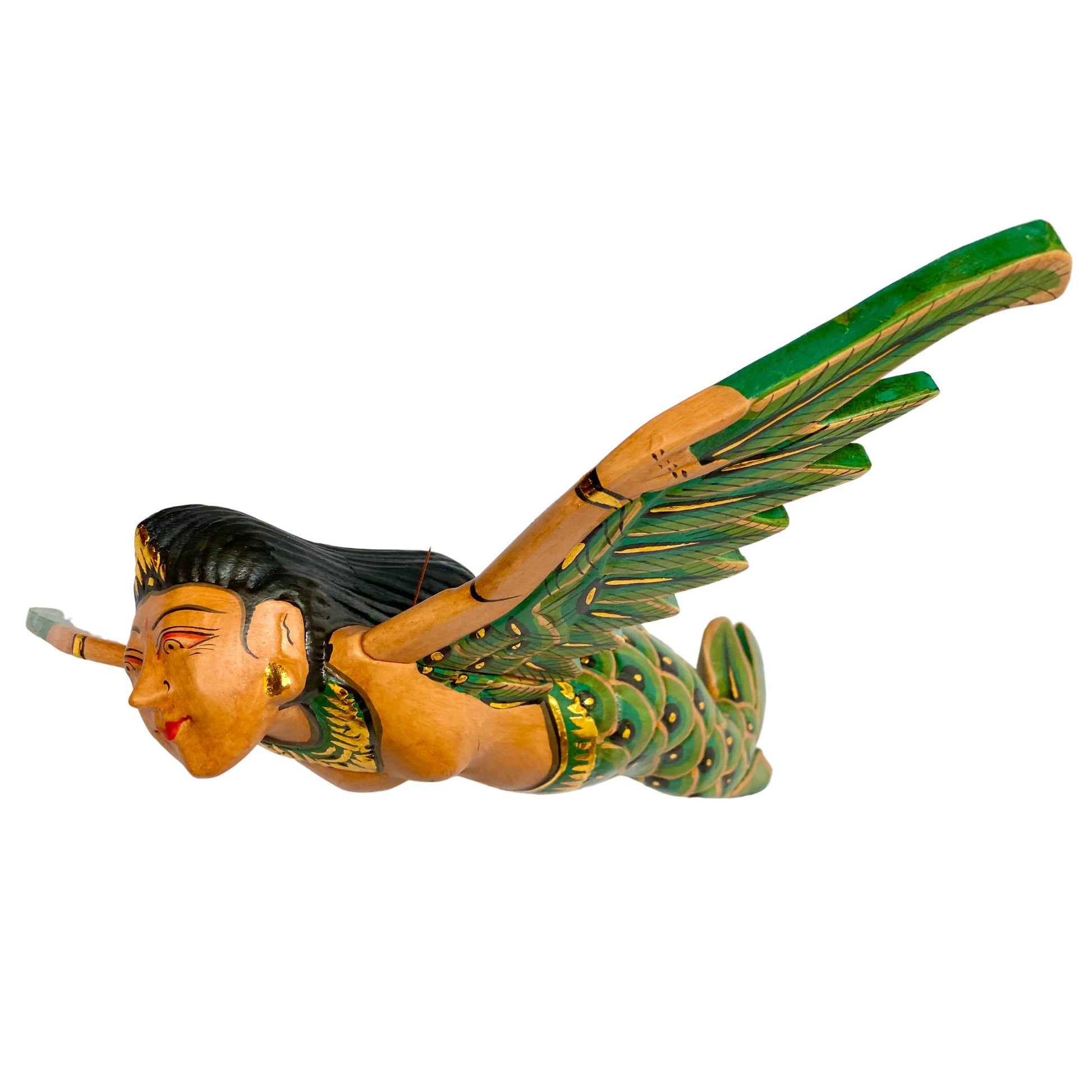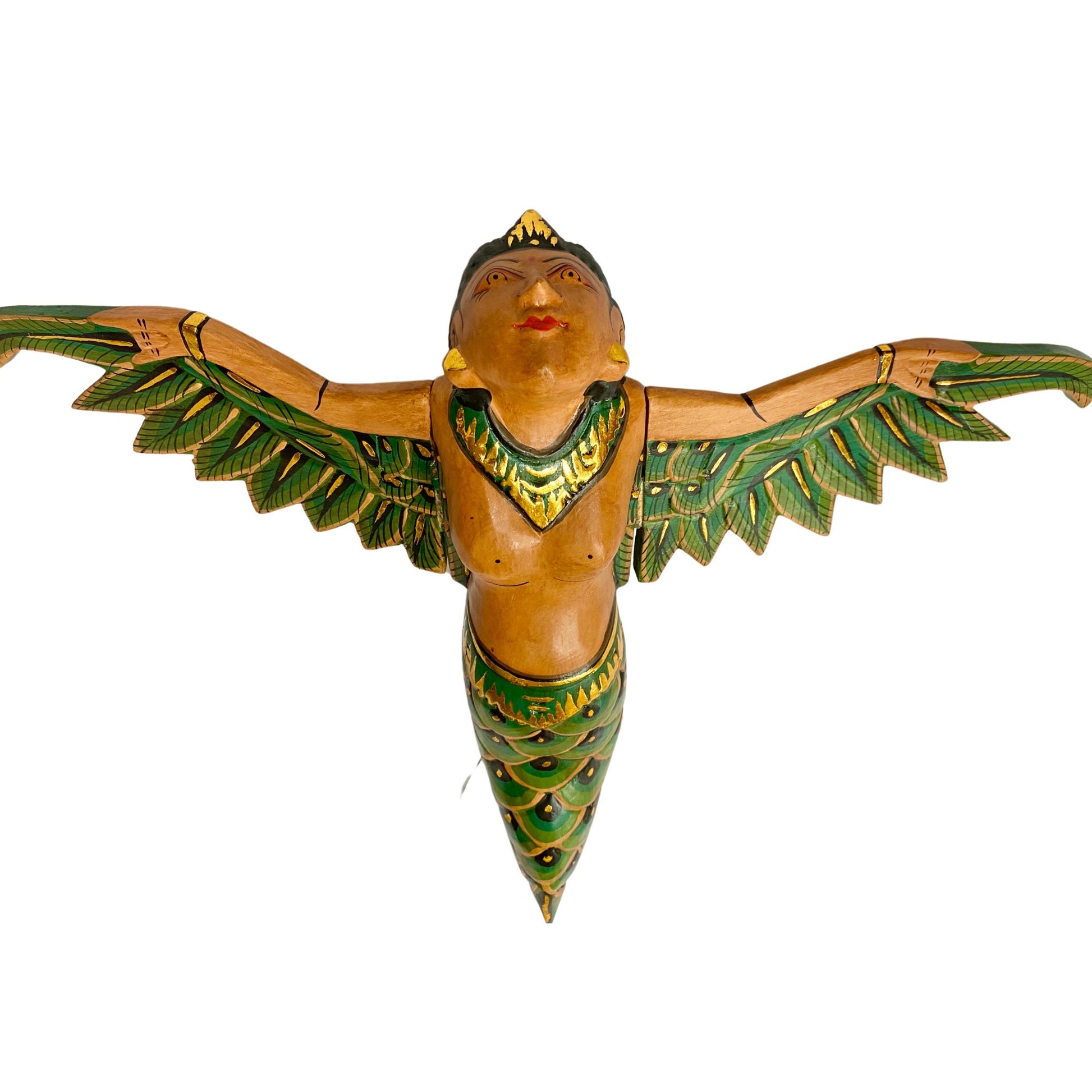 Bali Mermaid Mobile Goddess Winged Flying Sea Maiden Spirit Chaser Cradle Guardian Hand Carved Wood Green Balinese Folk art 16"