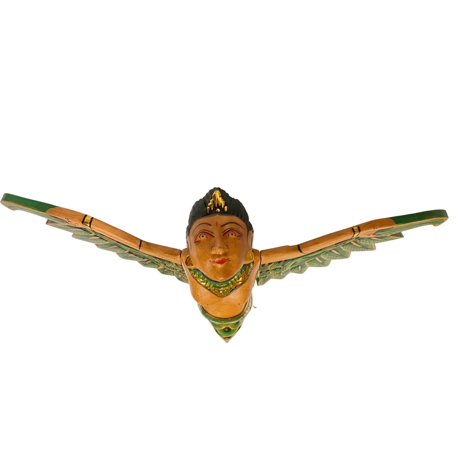 These Guardian figures are still produced by Balinese artisans today for they have deep cultural & spiritual significance. Typically these carvings have been used in temples or homes since ancient times to ward off evil spirits. They are always hung in a high spot, or if a statue placed on a beam or shelf looking down towards a door or window. Many types may be found from flying angels (known as "Dewi" which means "Goddess" in Balinese), animals or strange hybrids, such as head of a horse head & tail of a fish, or "Gajamina" head of an elephant & tail of a fish. It is believed that a Flying Guardian placed in ones home or sacred space will drive away evil spirits and protect the premises from harm.