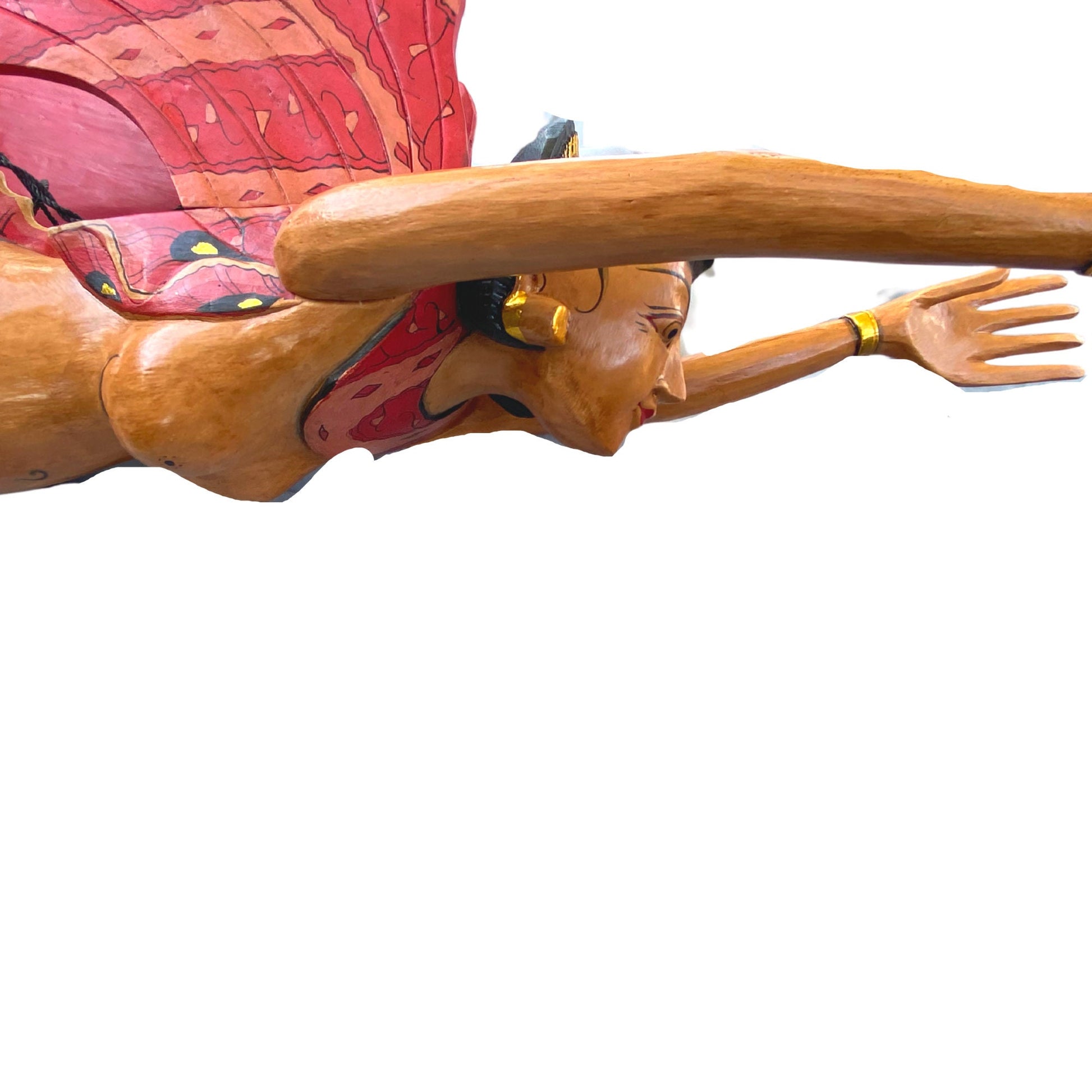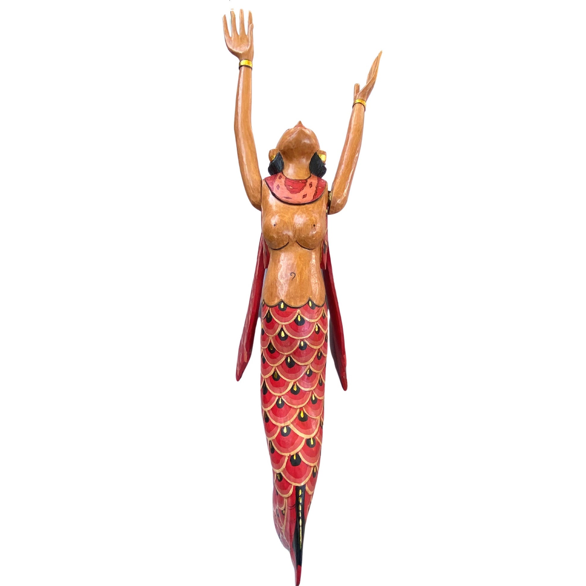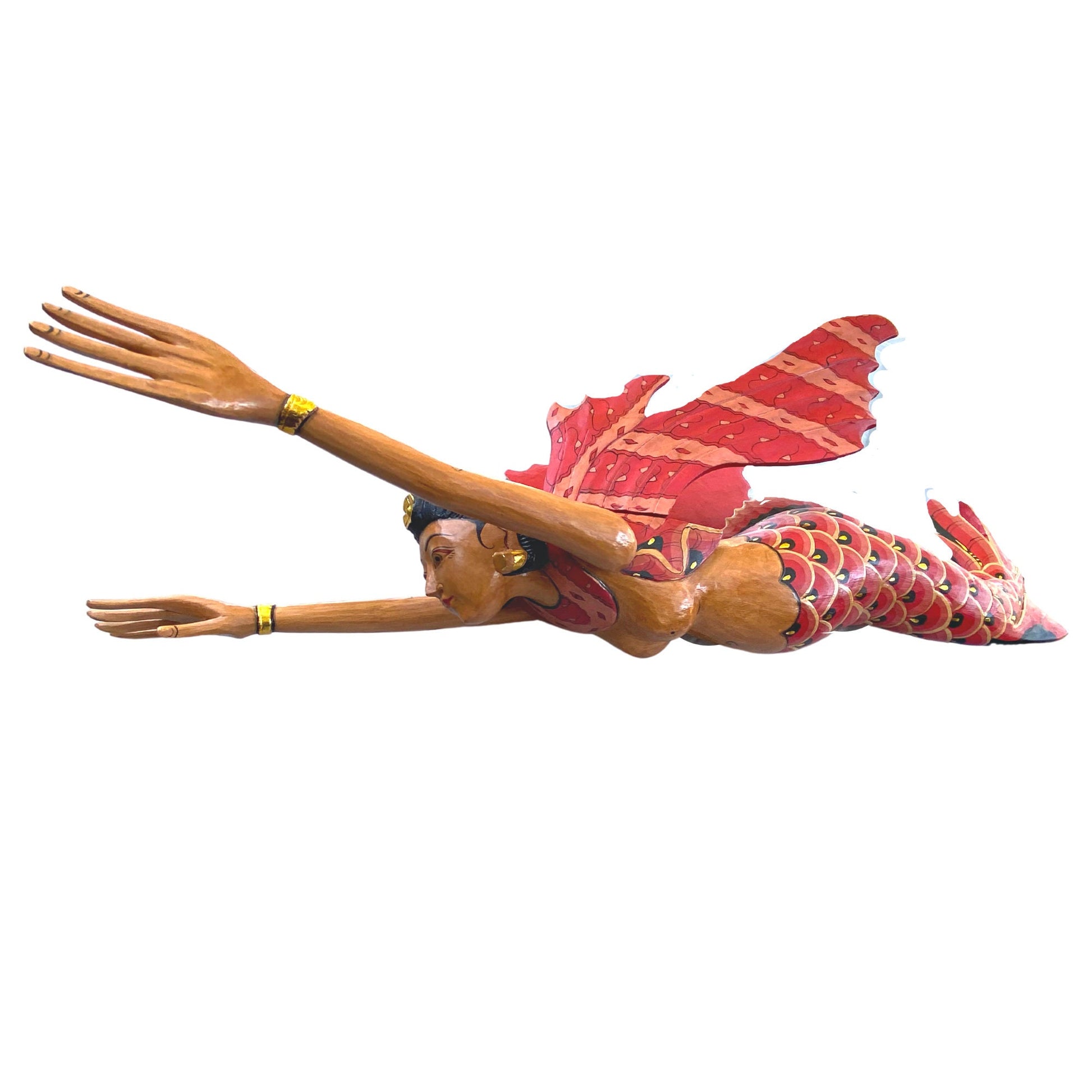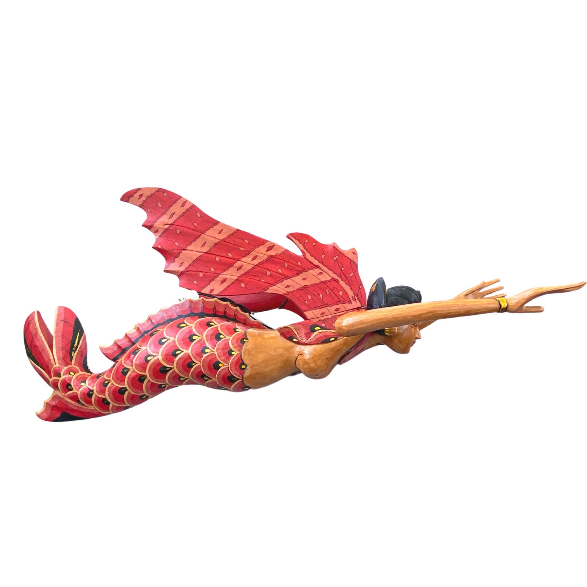 Bali Winged Flying Mermaid Mobile Spiritchaser cradle guardian Carved wood Balinese wood carving art Red 37"