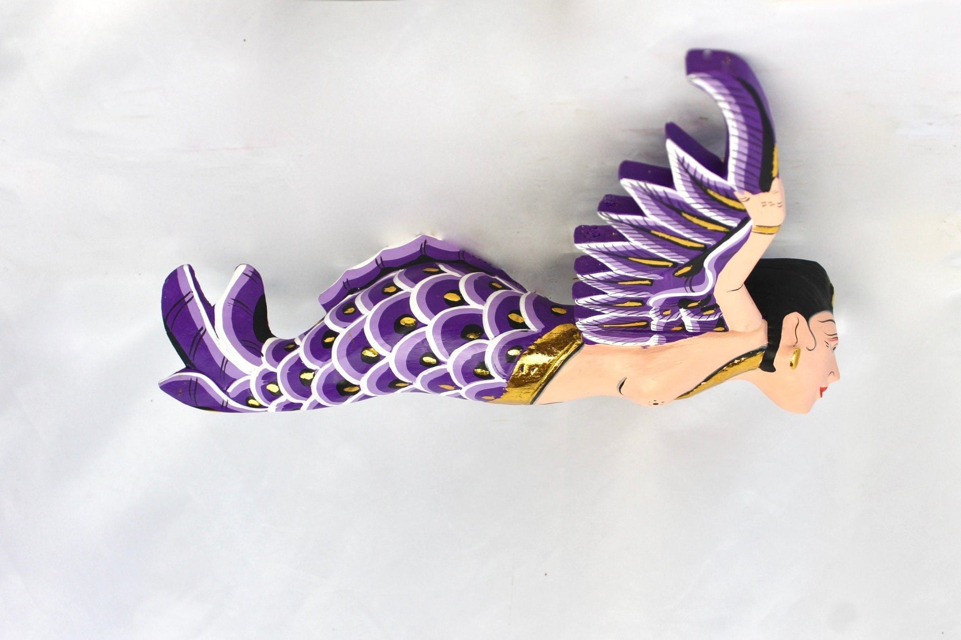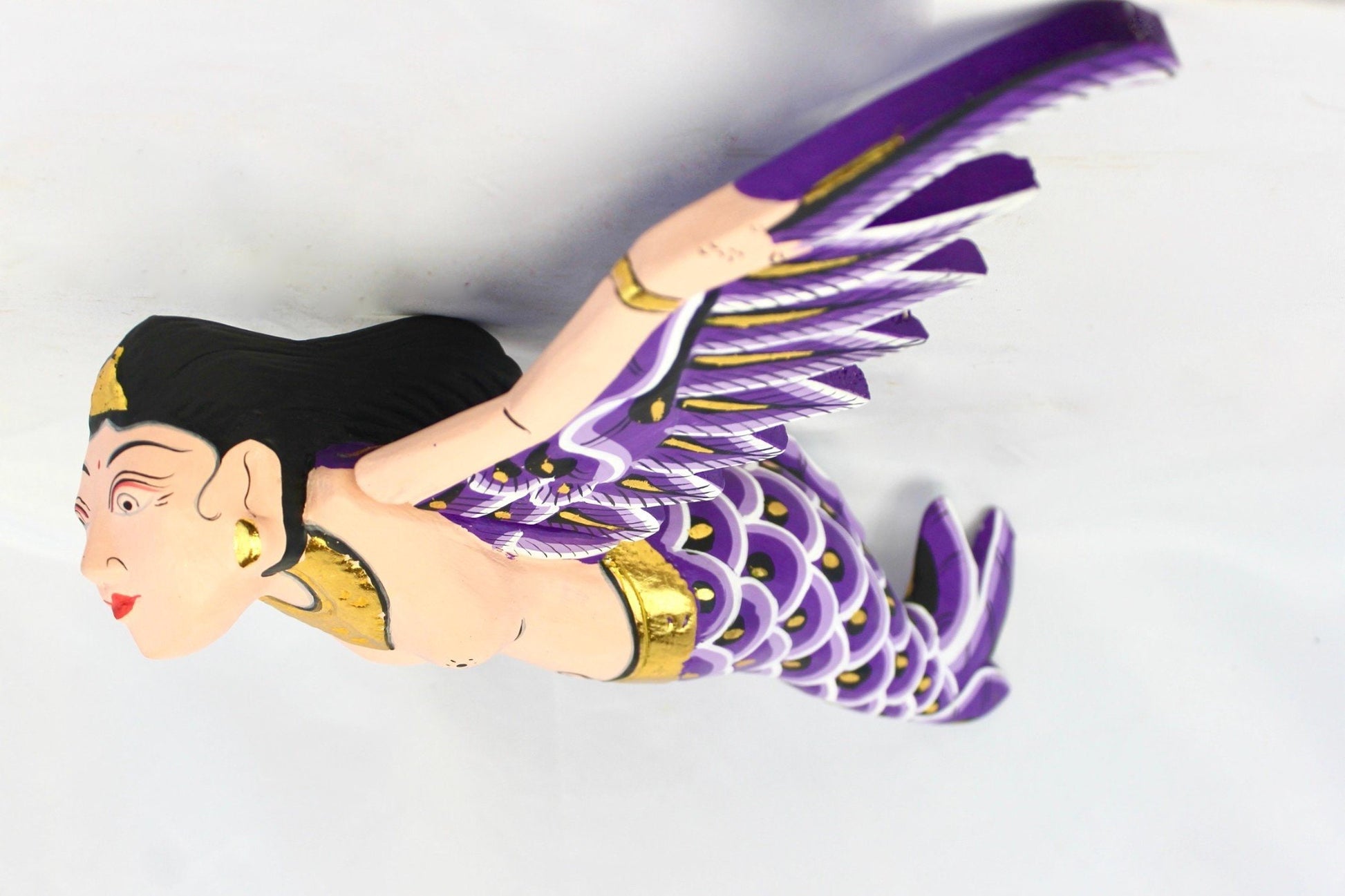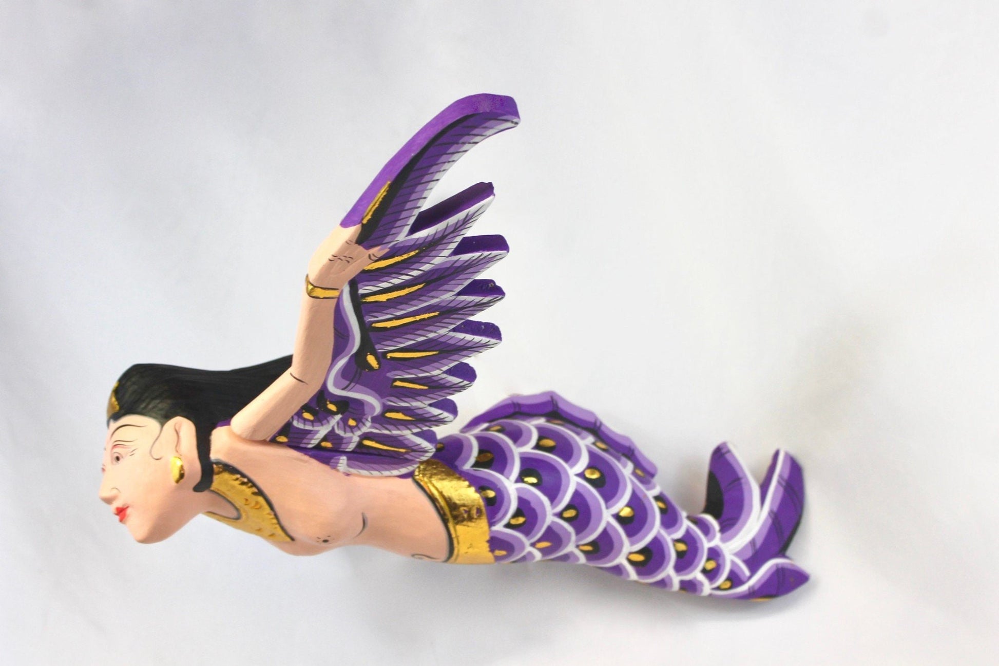 Bali Winged Mermaid Goddess Mobile Spirit Guardian Carved wood Balinese art