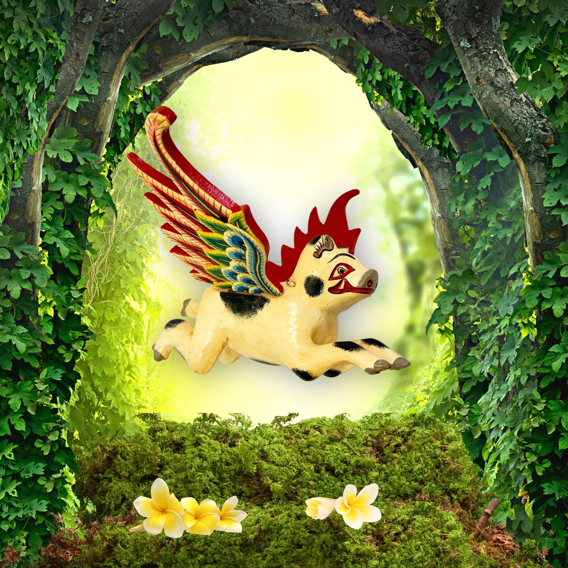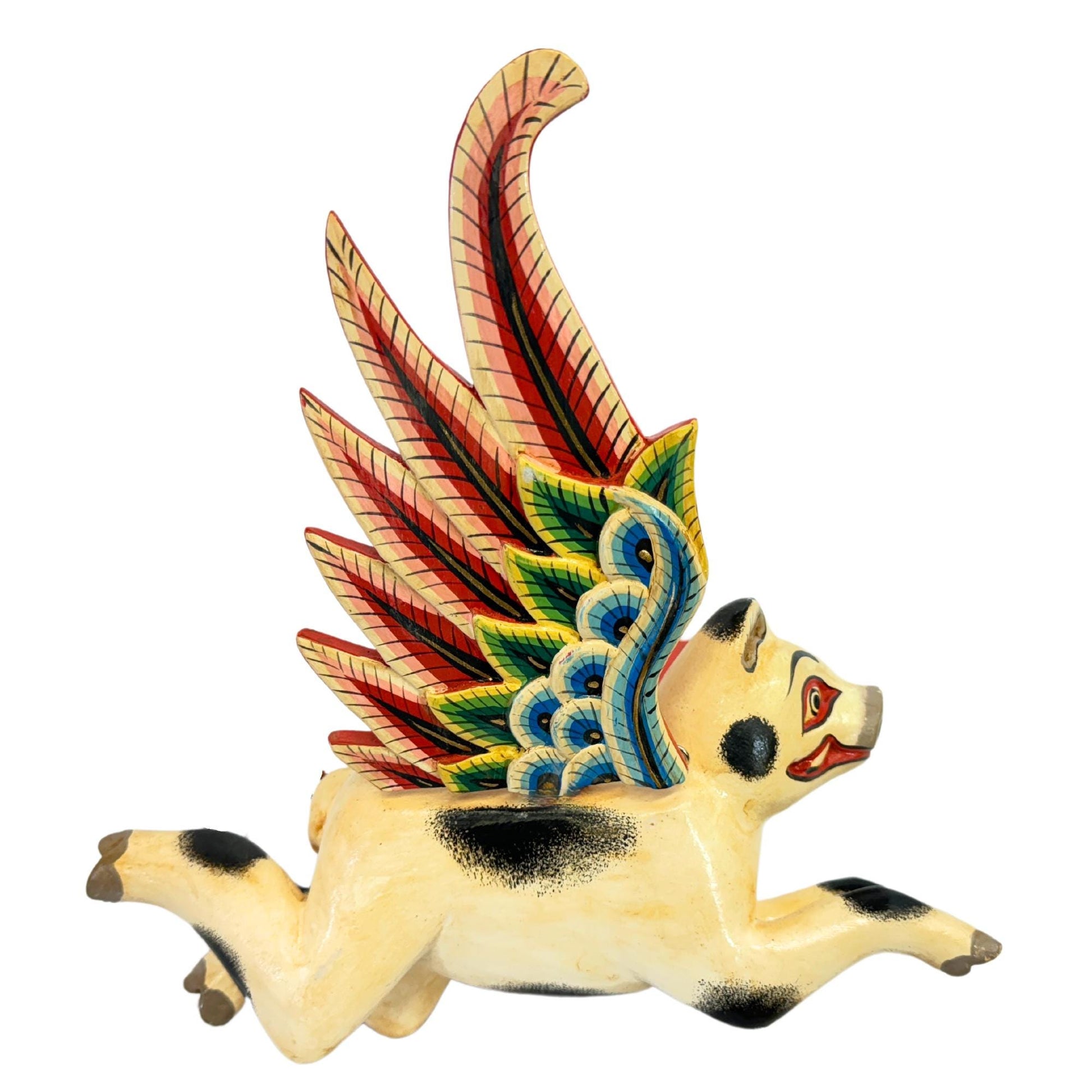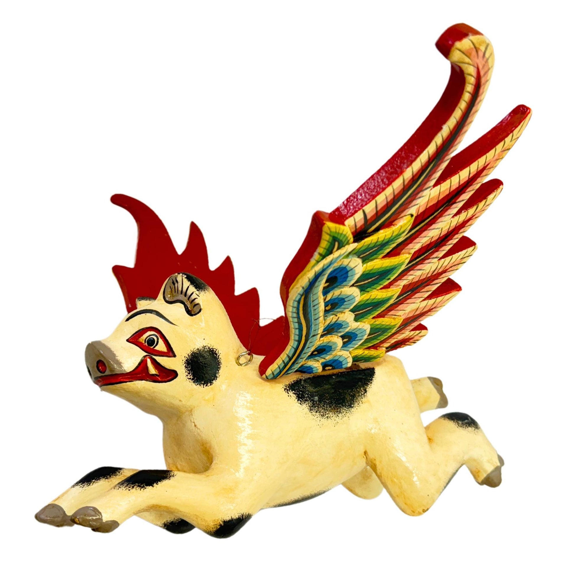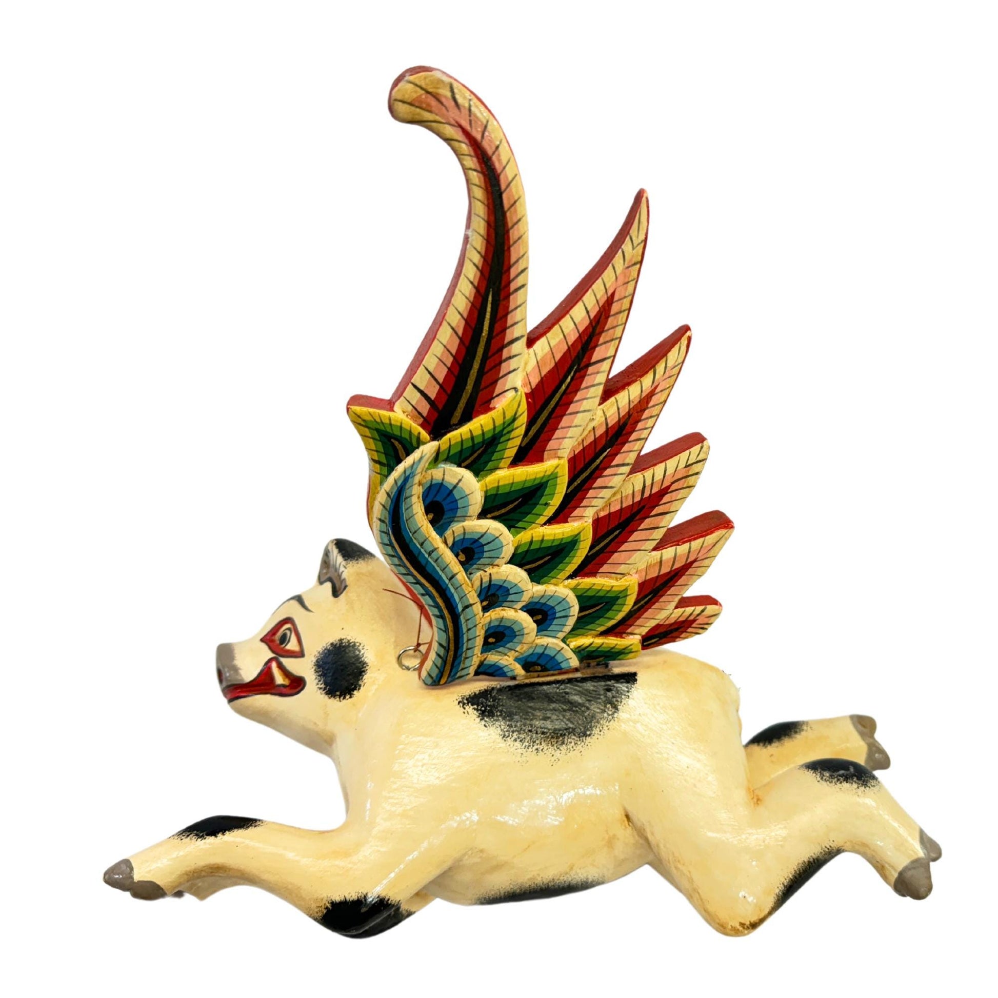 Balinese FLYING Pig Mobile Winged Crib Guardian Spirit chaser Hand Carved Wood Carving Bali Art