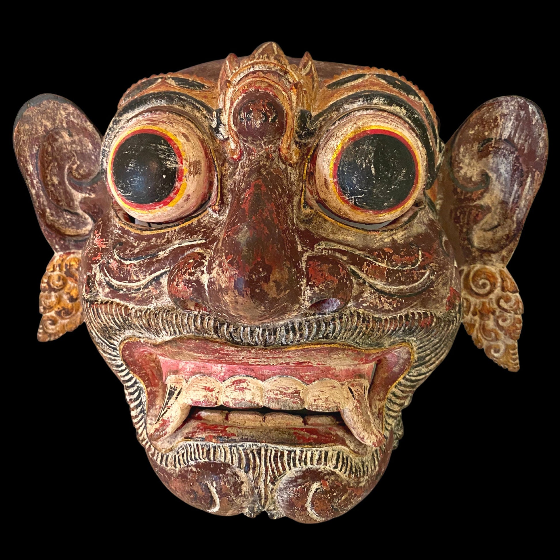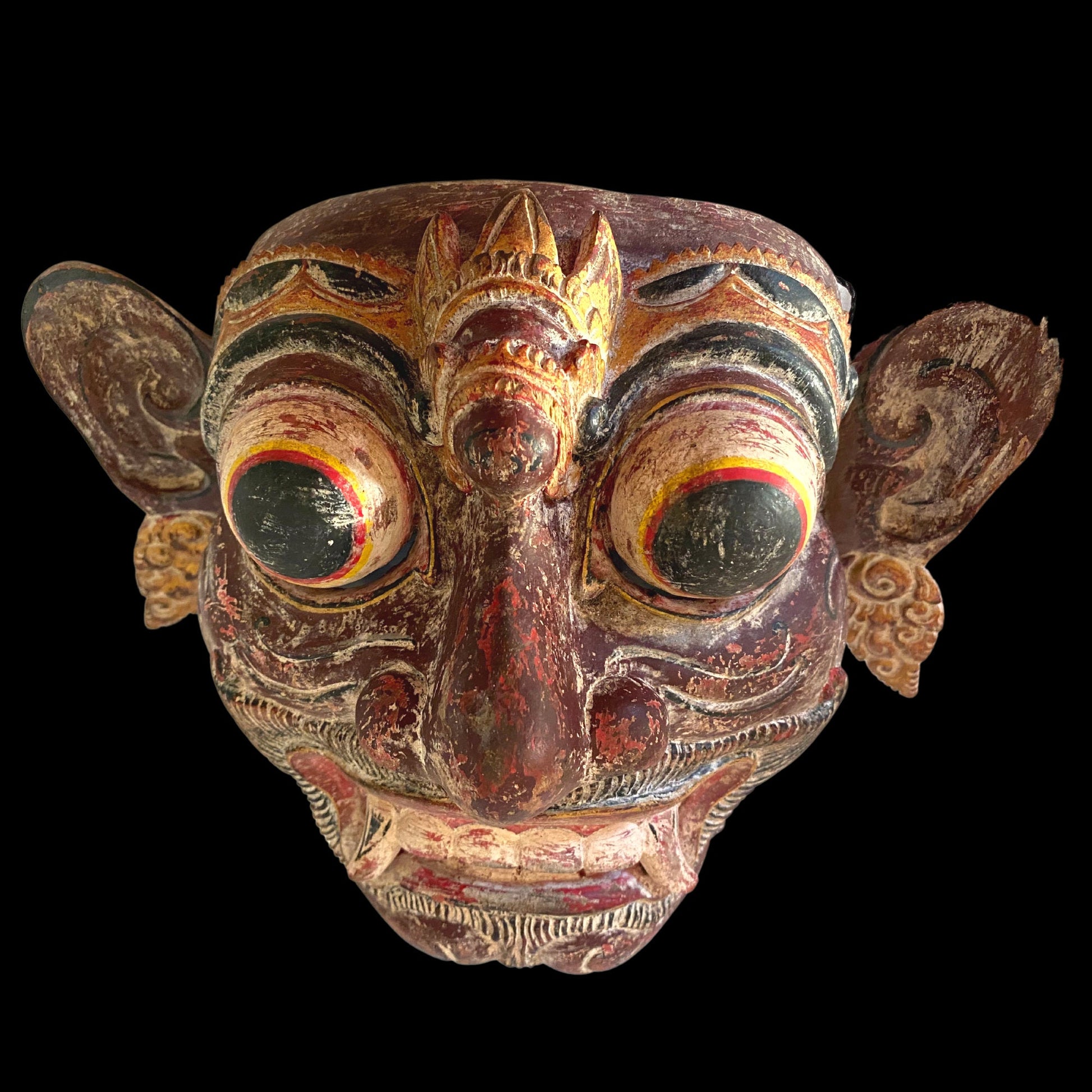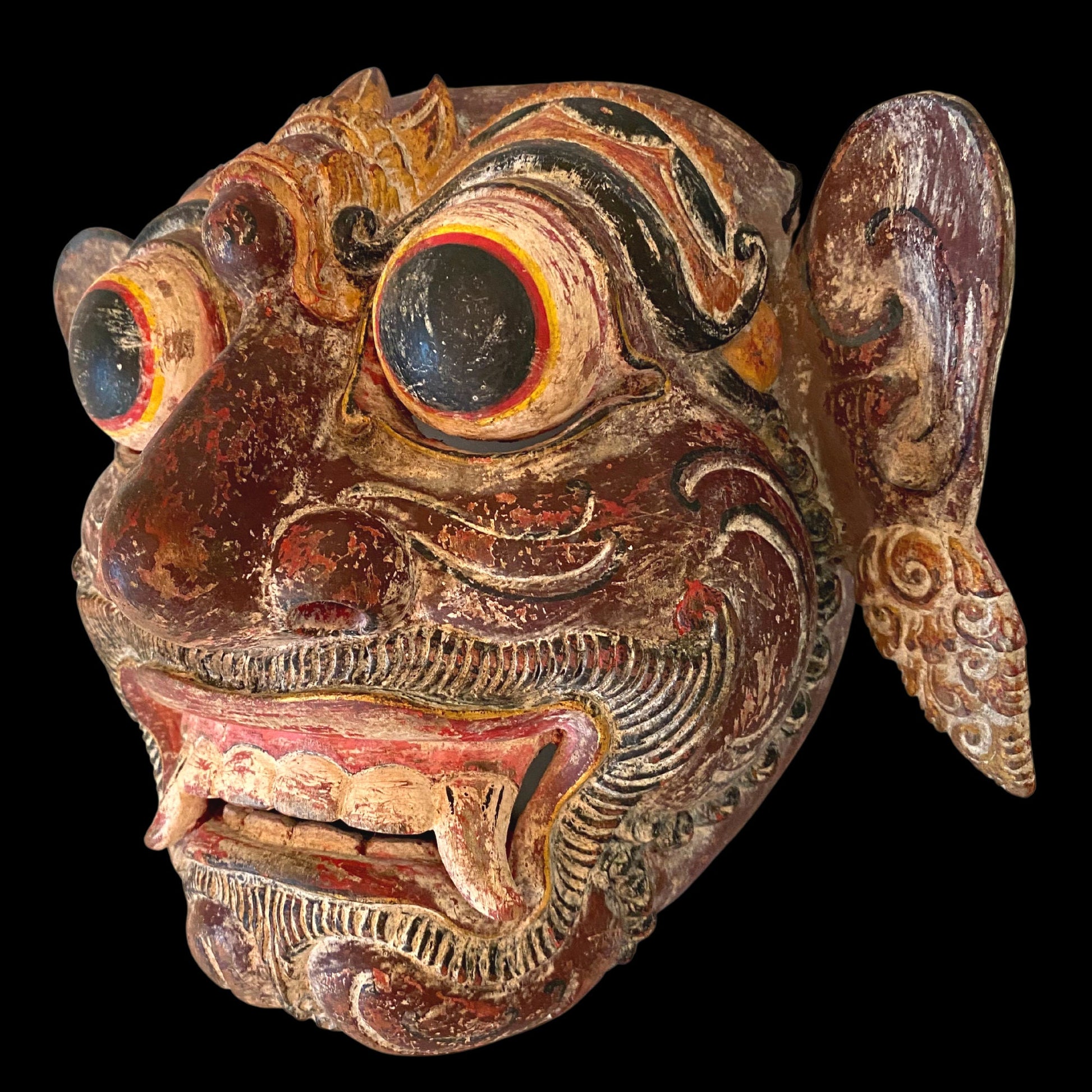 Balinese Mask Rakshasa Demon Hindu Bali Indonesian Folk Art Hand Painted Carved Wood Carving Eclectic Wall Decor