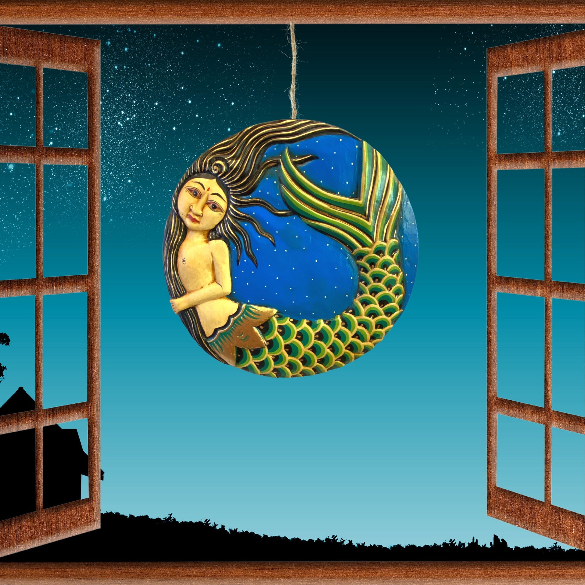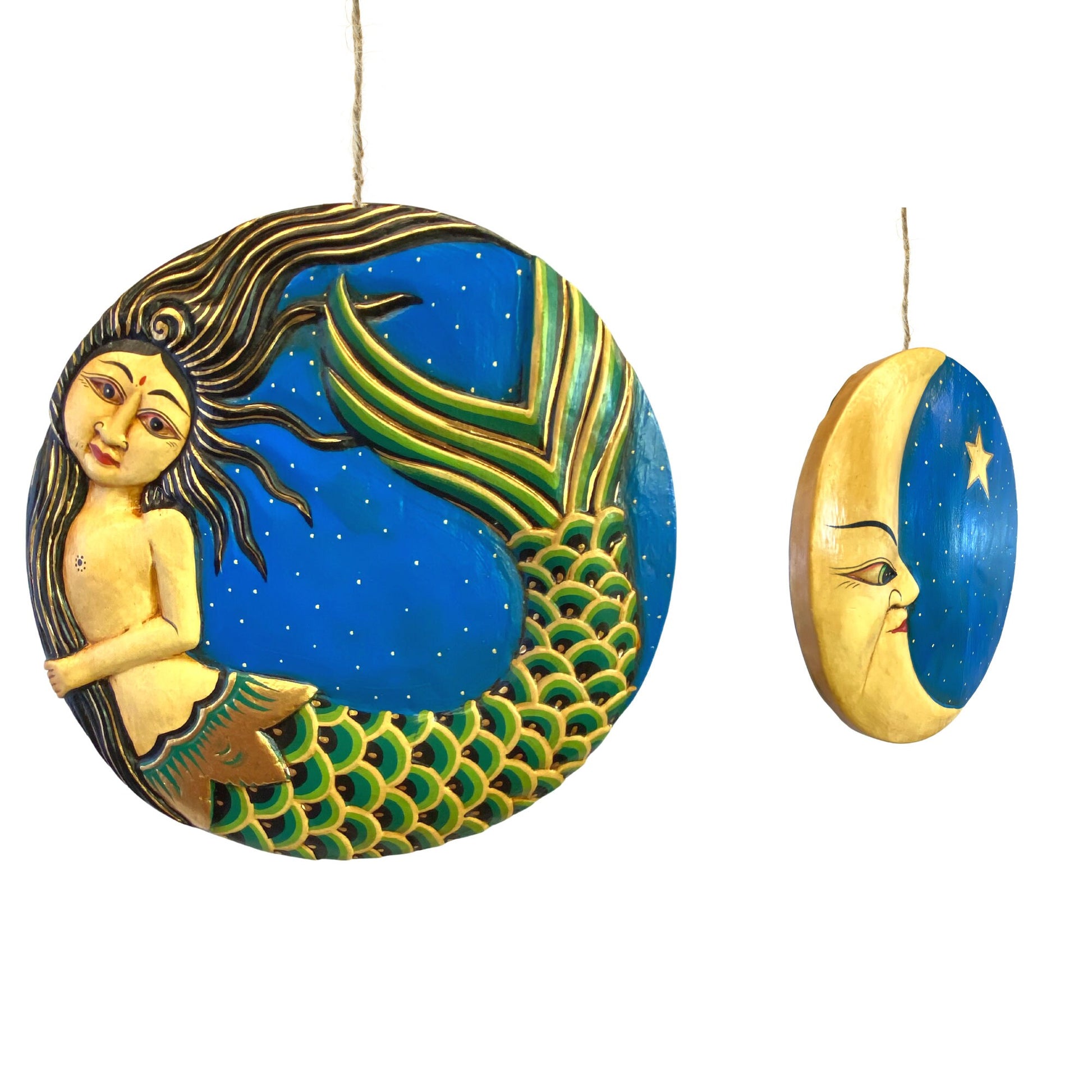 Mermaid Moon Goddess Balinese Folk Art Mobile, handcrafted in Bali by a talented family of artisans.