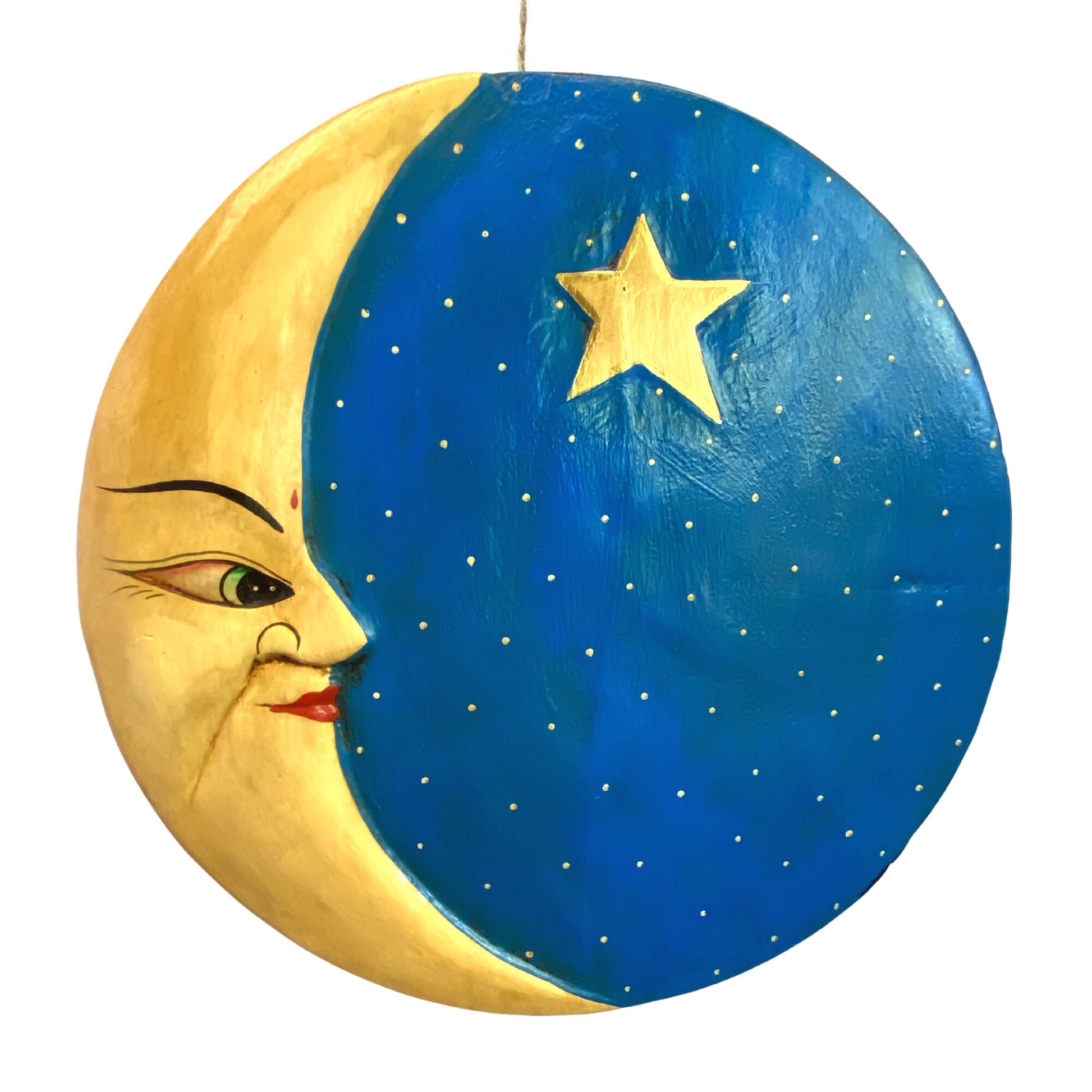 Balinese Mermaid Hanging Mobile Moon Goddess Hanging Mobile Hand Carved & Painted Wood Carving Celestial Moon Stars Bali Folk Art
