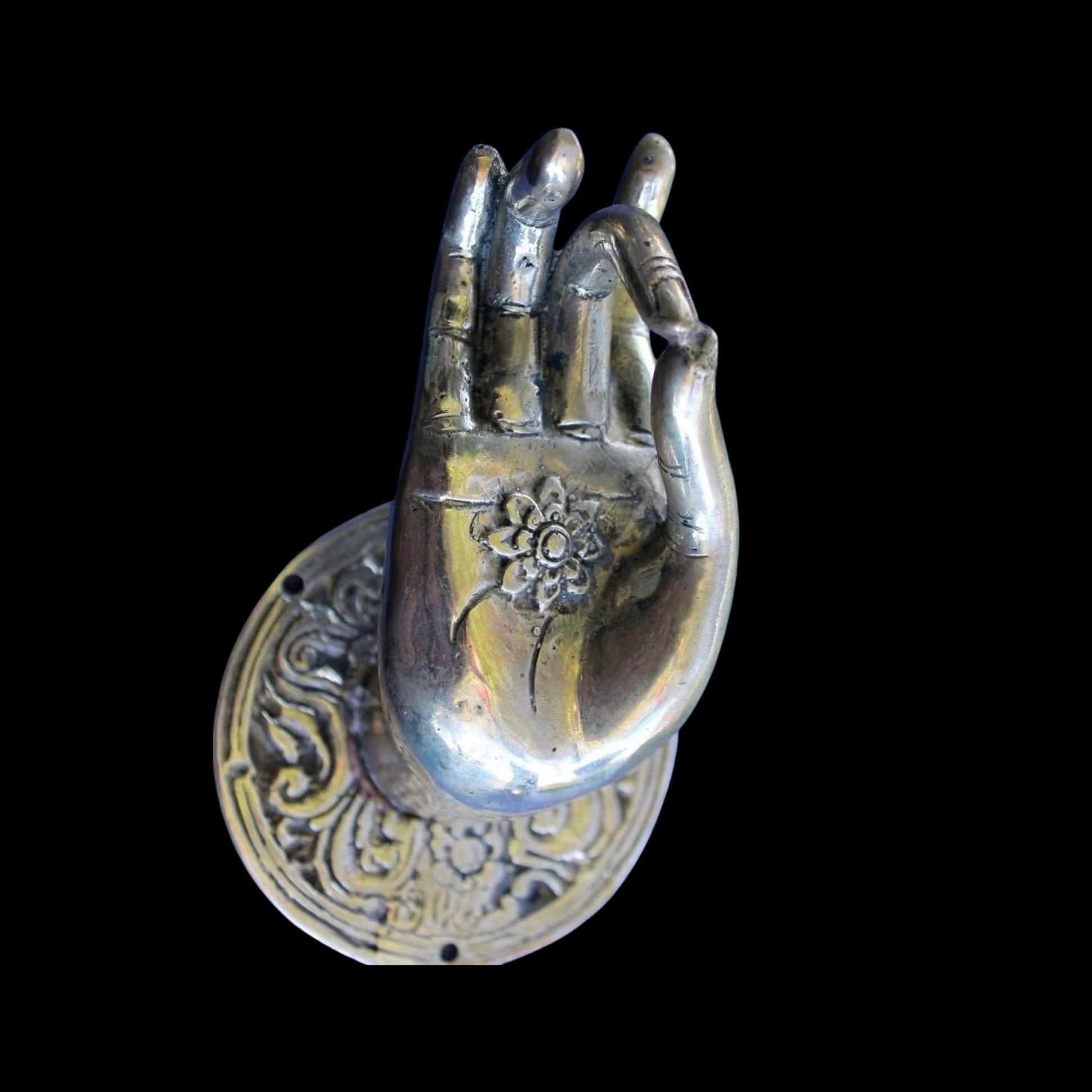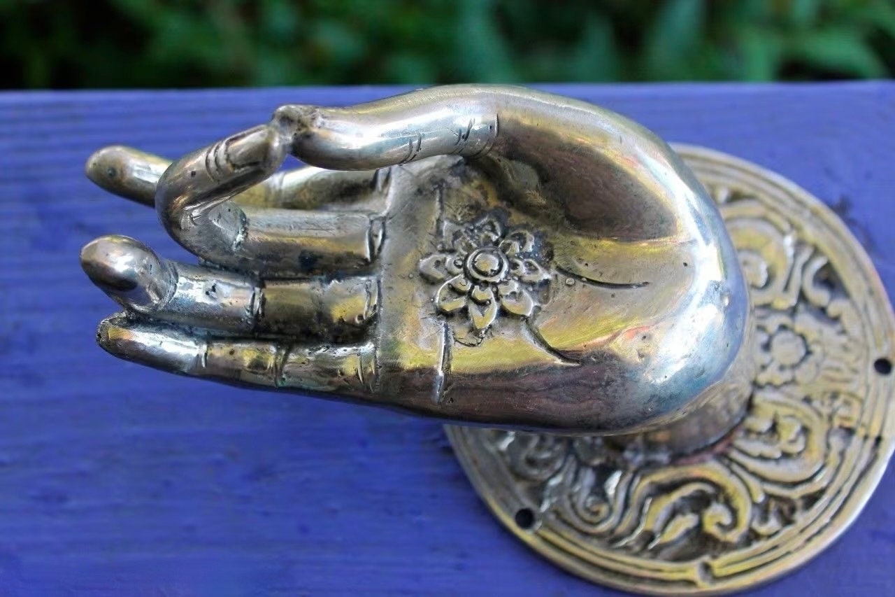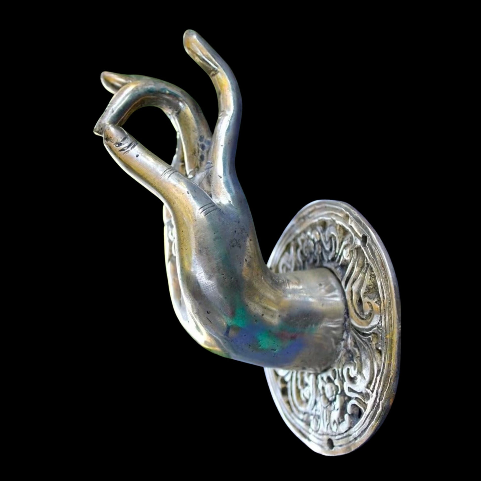Bronze Buddha Hand Mudra Door Pull Bronze Door Handle Knob Wall Hook Cast Silver Balinese Art