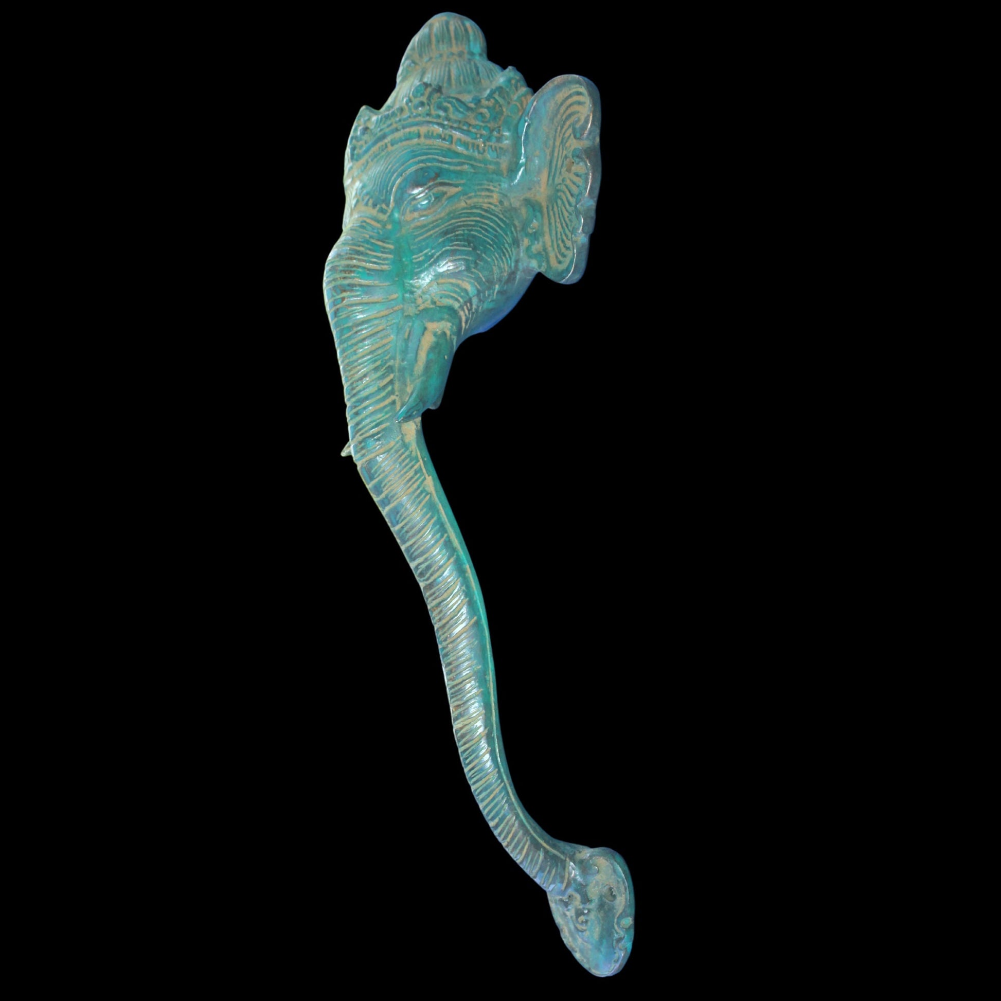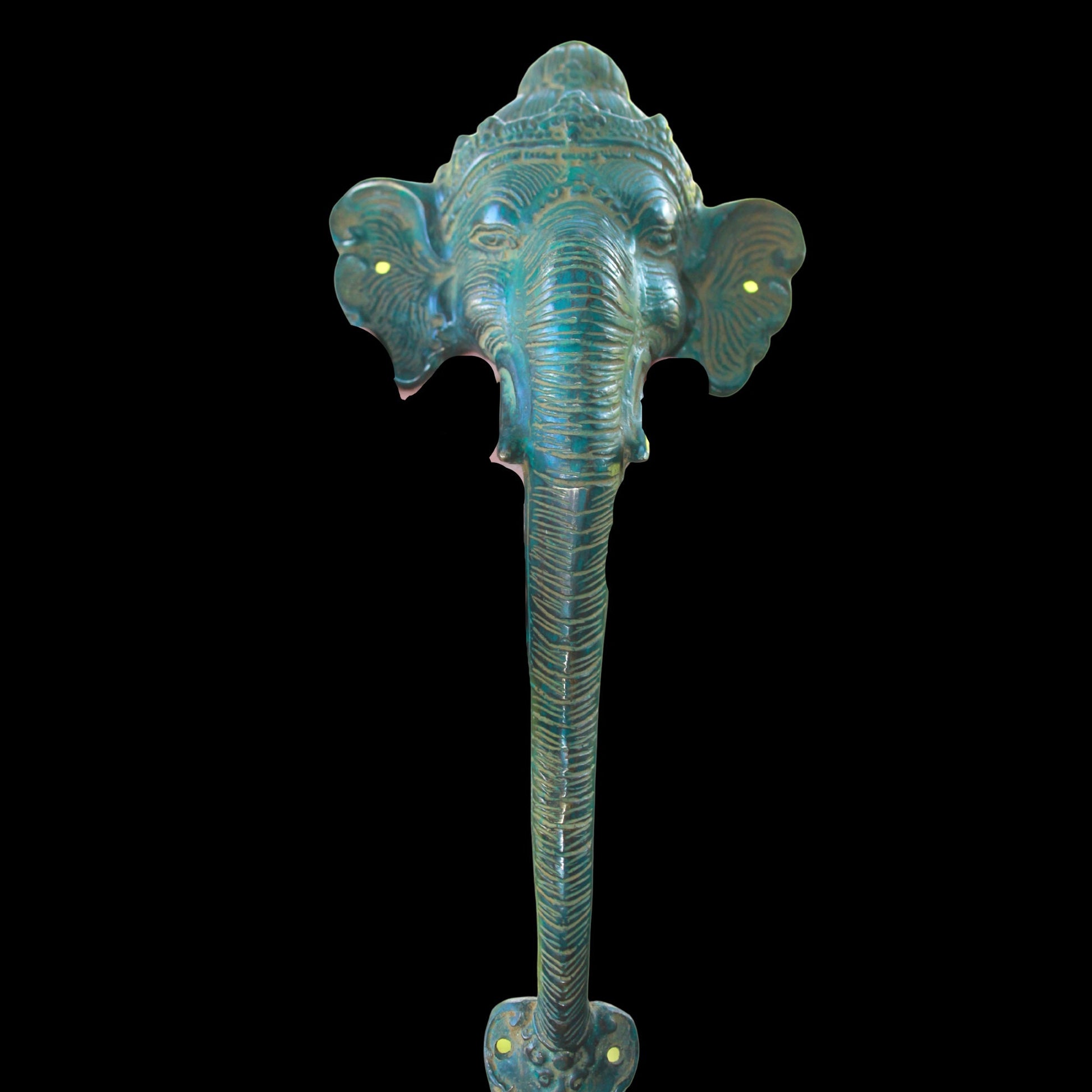Bronze Ganesha Elephant Door Handle Pull Knob Verdigris Handmade Bali Art
