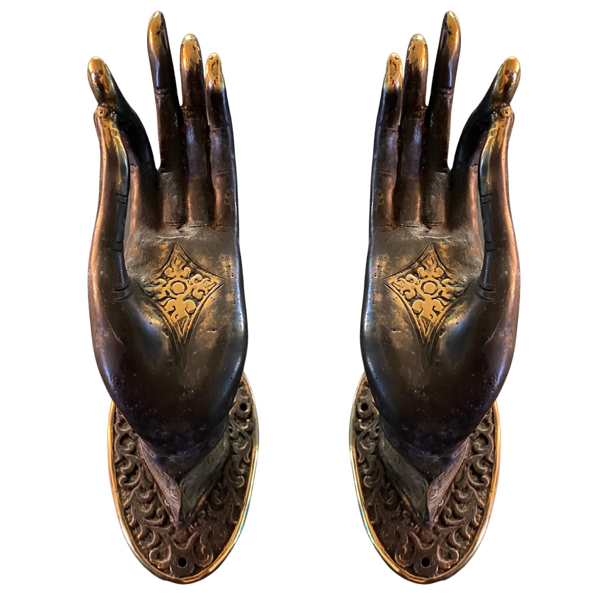Buddha Mudra Hands Door Pulls hand cast from bronze in Bali by talented master craftsmen.