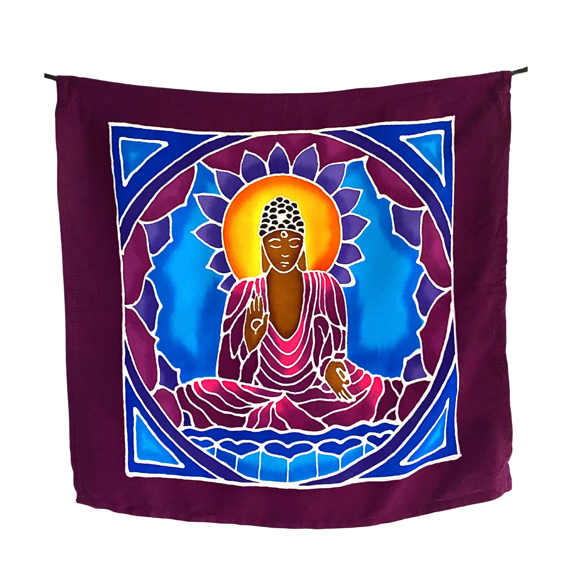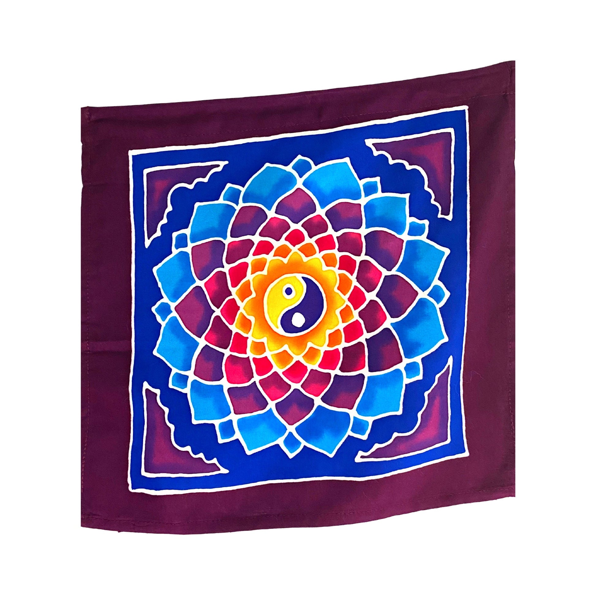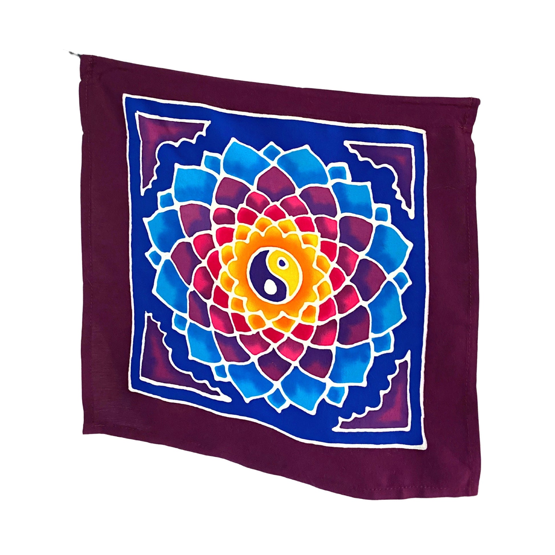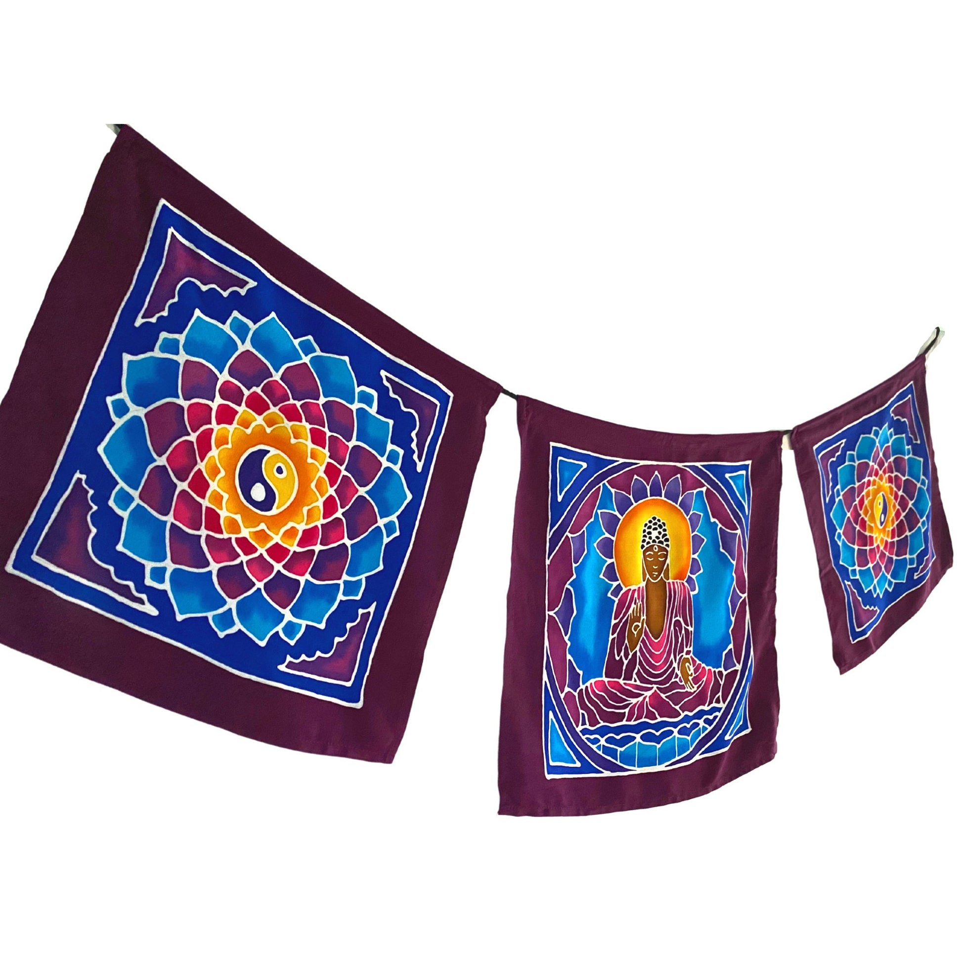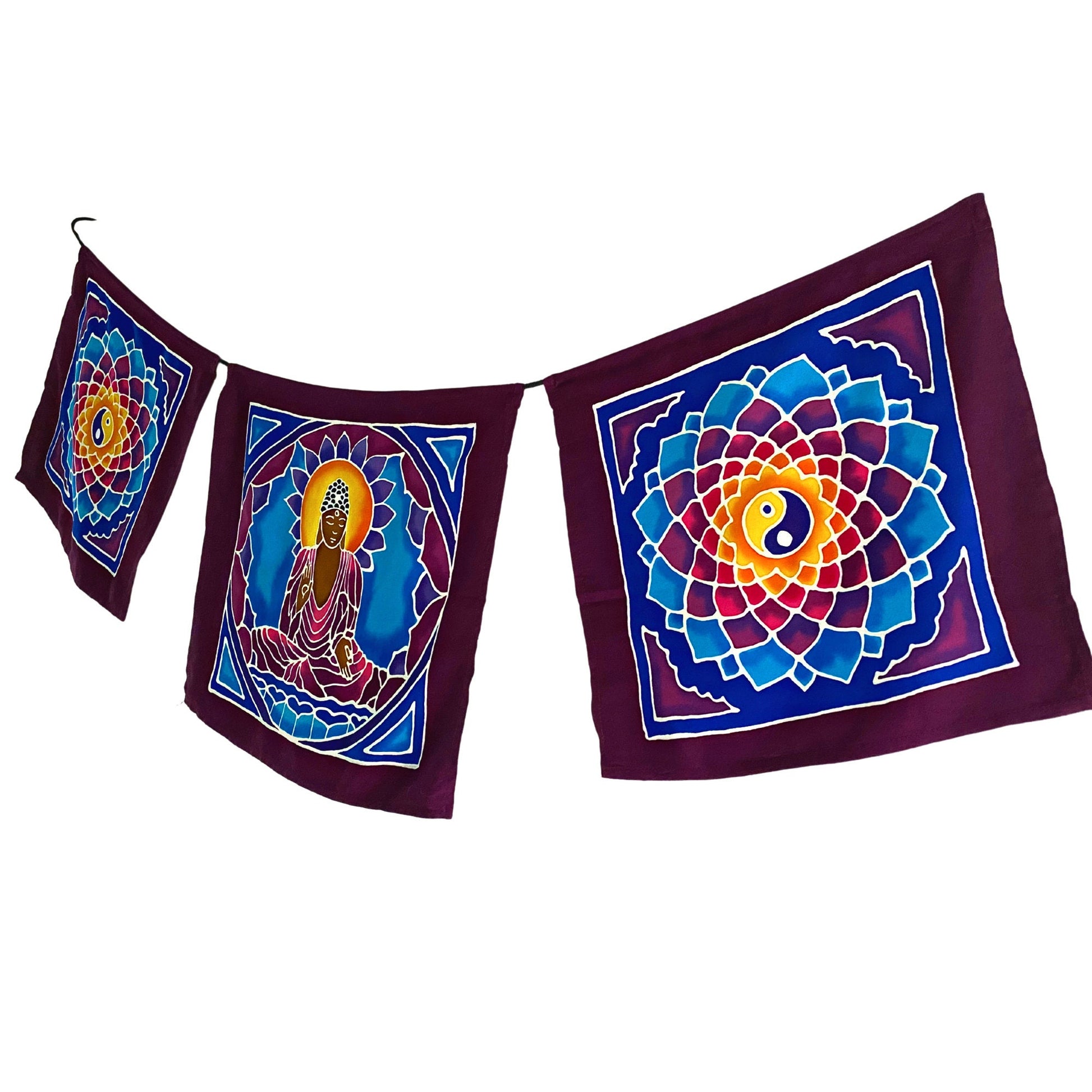 Buddha Yin Yang Mandala Prayer Flag Wall hanging Banner Handmade Bali Batik Art