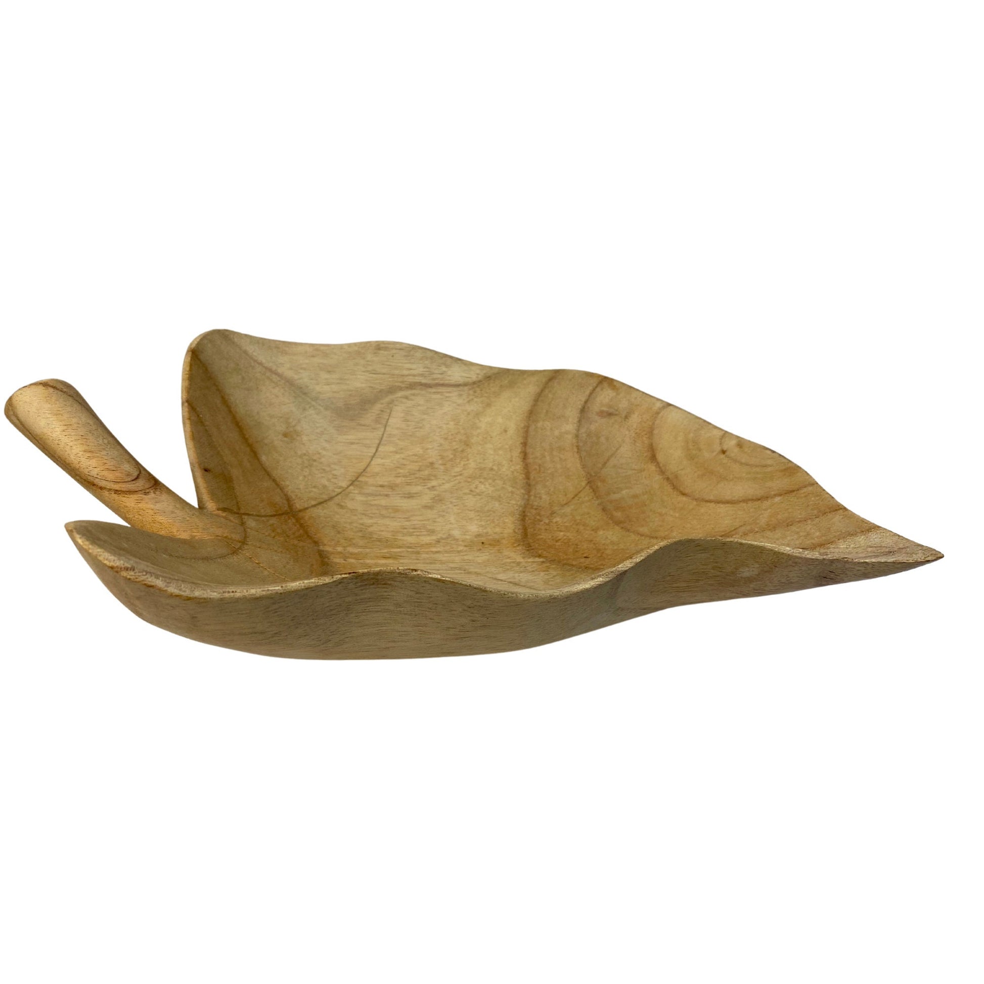 Elephant Ear Leaf Fruit Bowl Hand Carved Wood Tropical Decor Taro leaves Wooden Carving Boho Decor Centerpiece