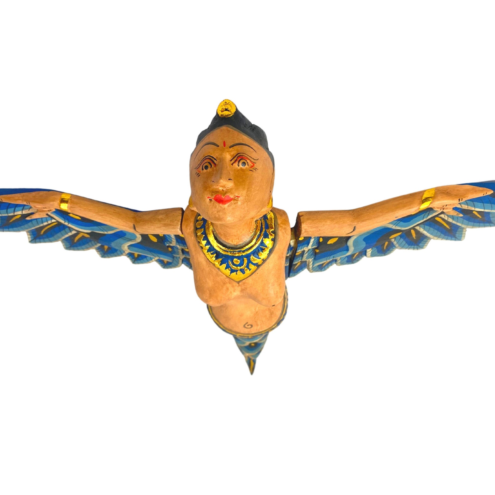 These Guardian figures are still produced by Balinese artisans today for they have deep cultural & spiritual significance. Typically these carvings have been used in temples or homes since ancient times to ward off evil spirits. They are always hung in a high spot, or if a statue placed on a beam or shelf looking down towards a door or window. Many types may be found from flying angels (known as "Dewi" which means "Goddess" in Balinese), animals or strange hybrids, such as head of a horse head & tail of a fish, or "Gajamina" head of an elephant & tail of a fish. It is believed that a Flying Guardian placed in ones home or sacred space will drive away evil spirits and protect the premises from harm.
