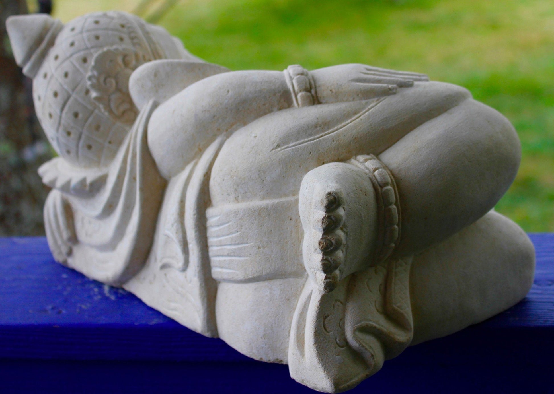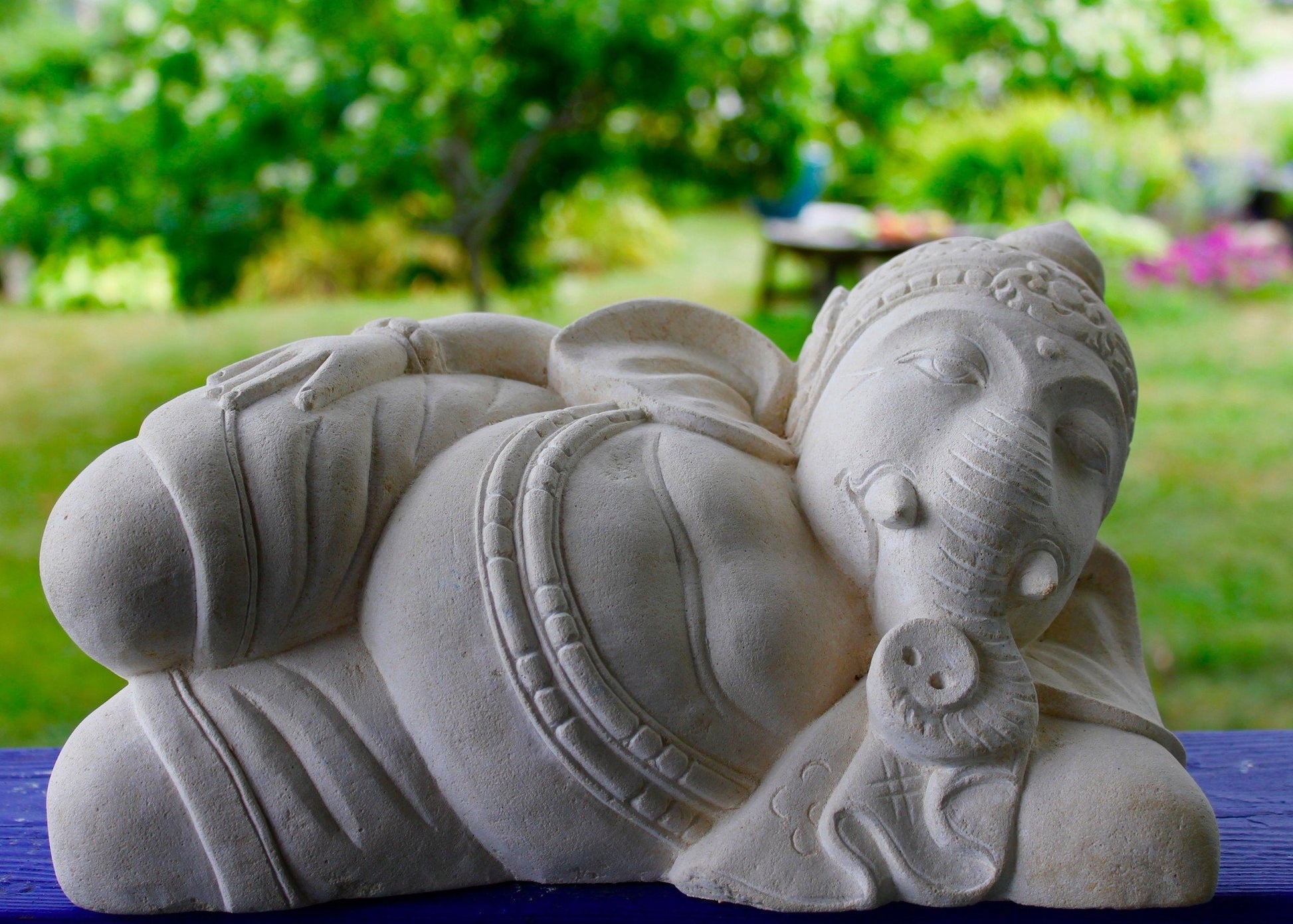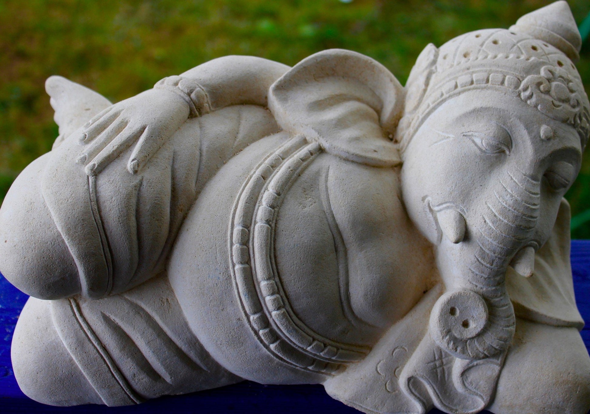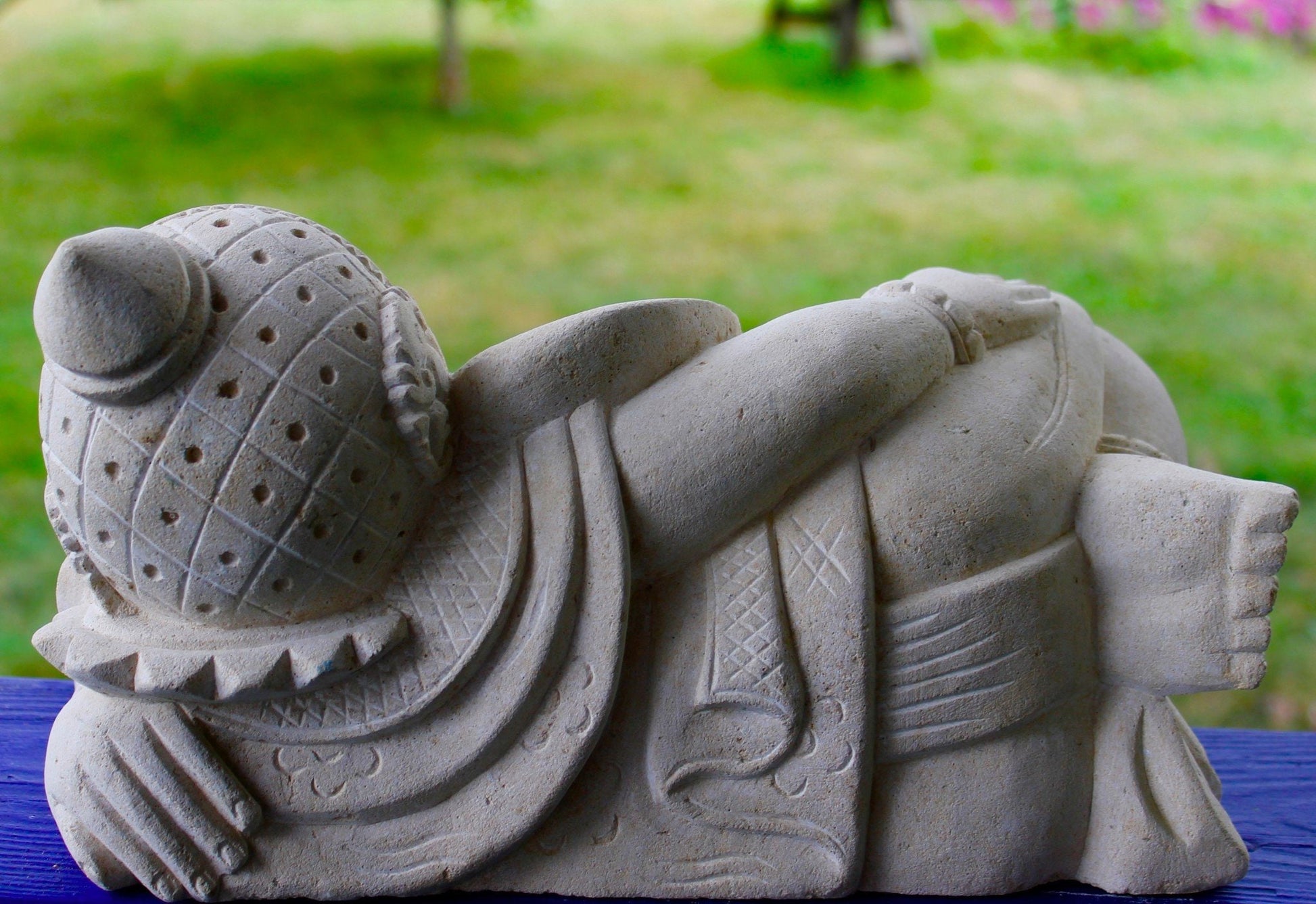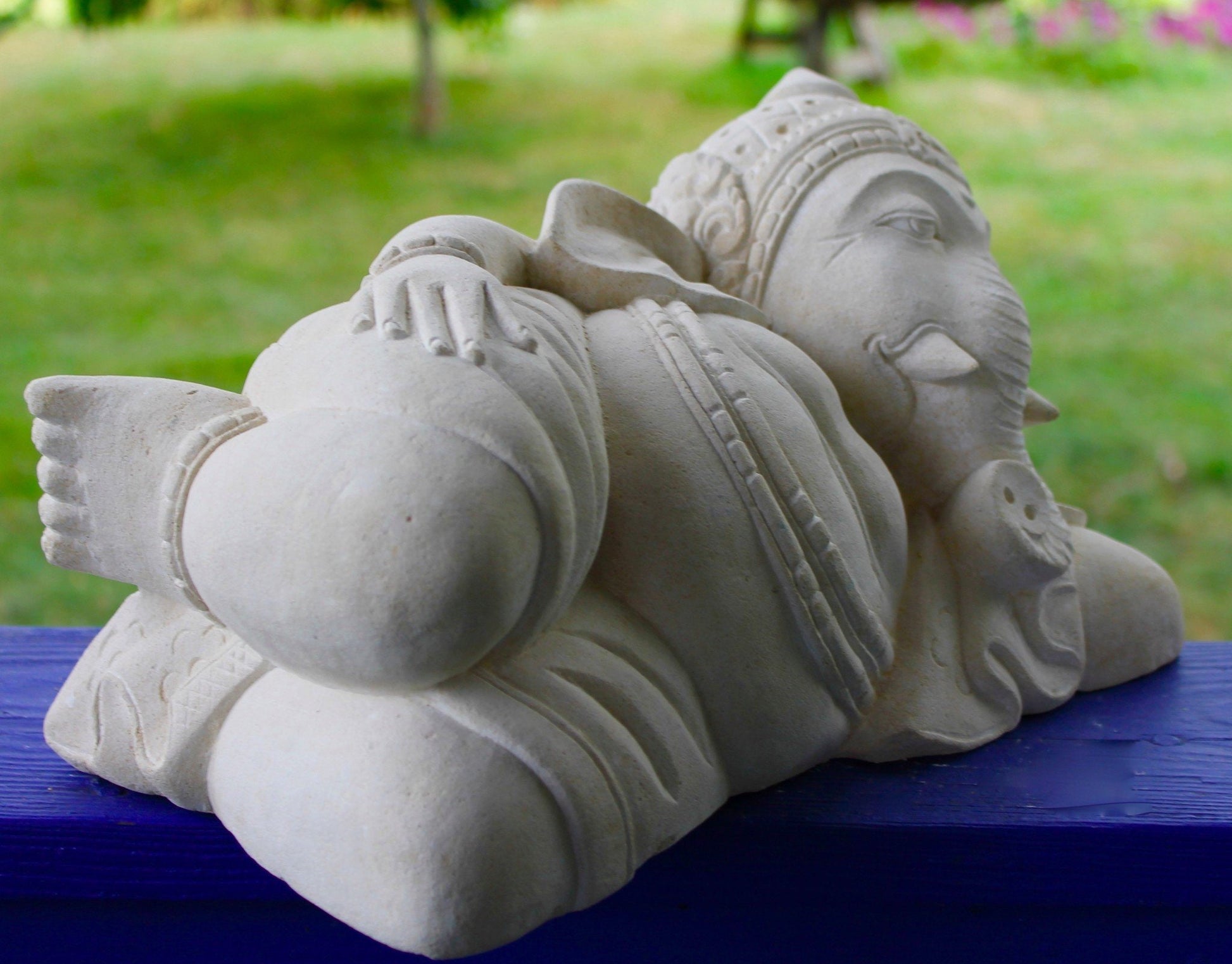 Ganesha son of Shiva is a favorite in Bali. This kind, happy Ganesha is reclining with his big pot belly. Please see more photos above. This is a really great sculpture and will be gorgeous inside your home or in your garden. This is one solid chunk of Bali Limestone, prized for the beautiful creamy smooth color.