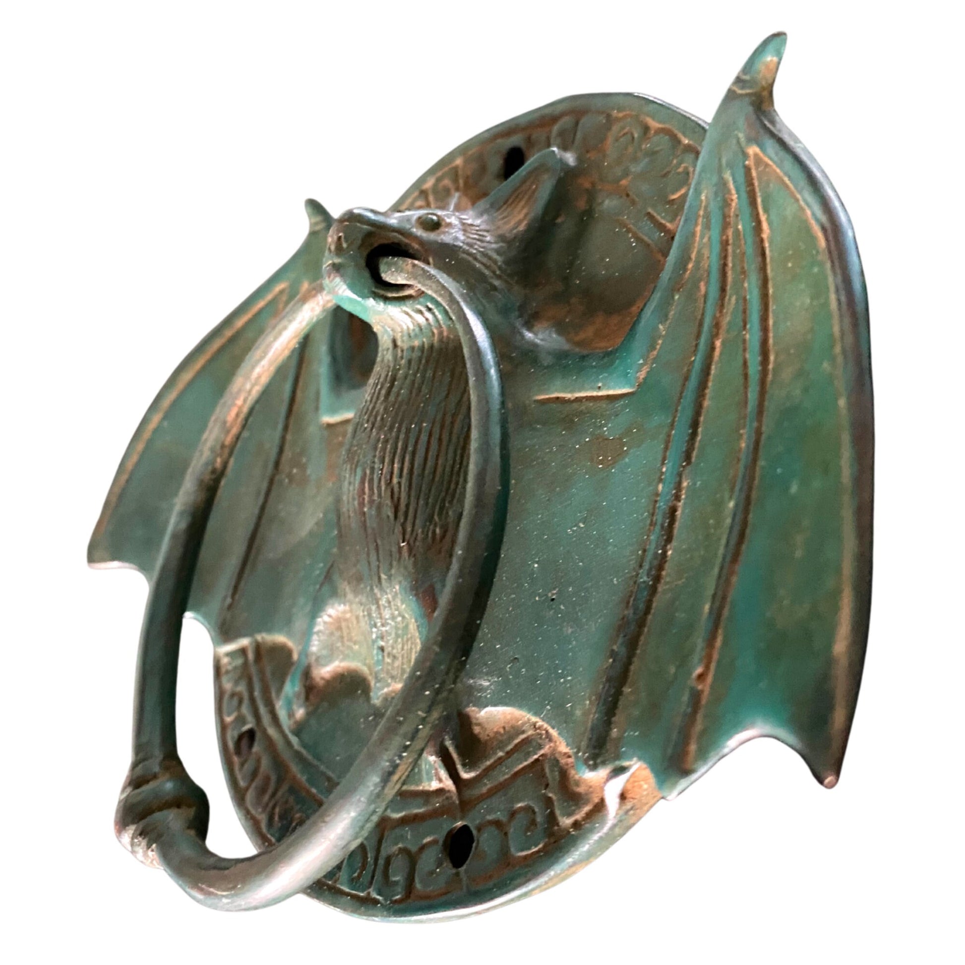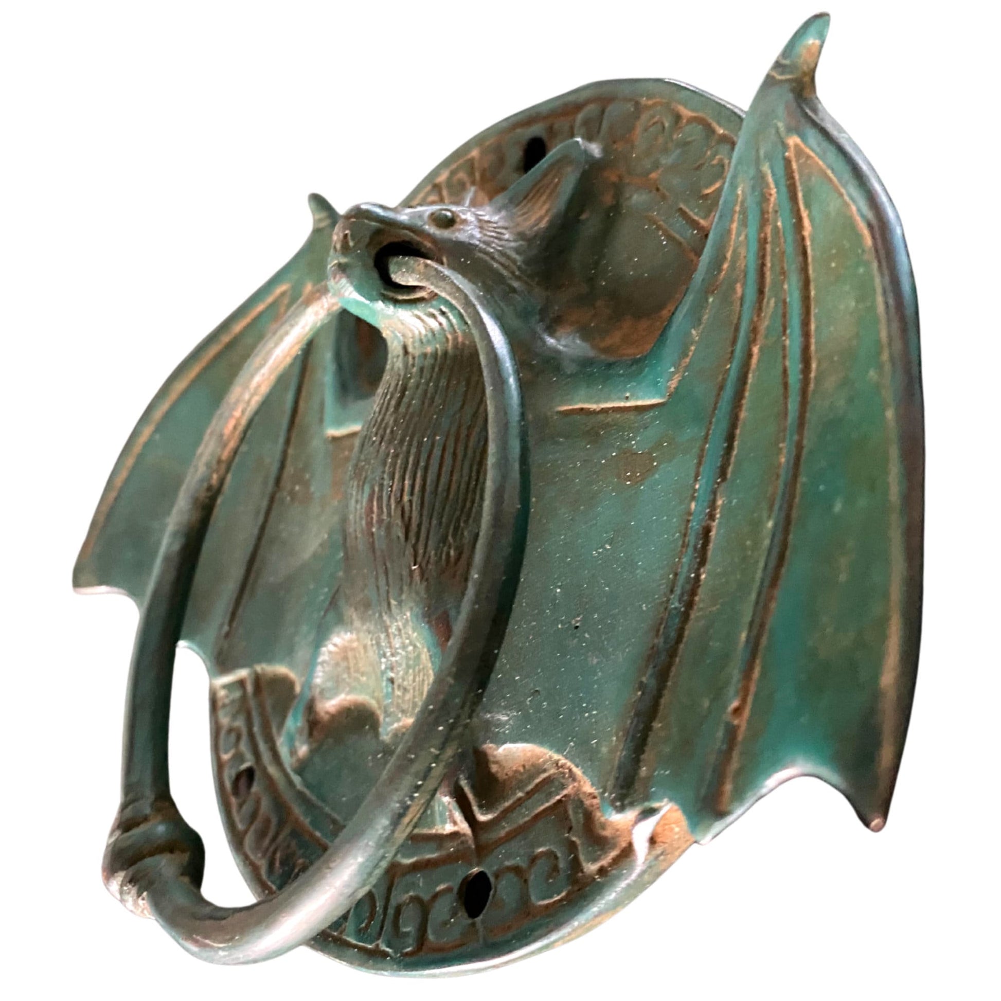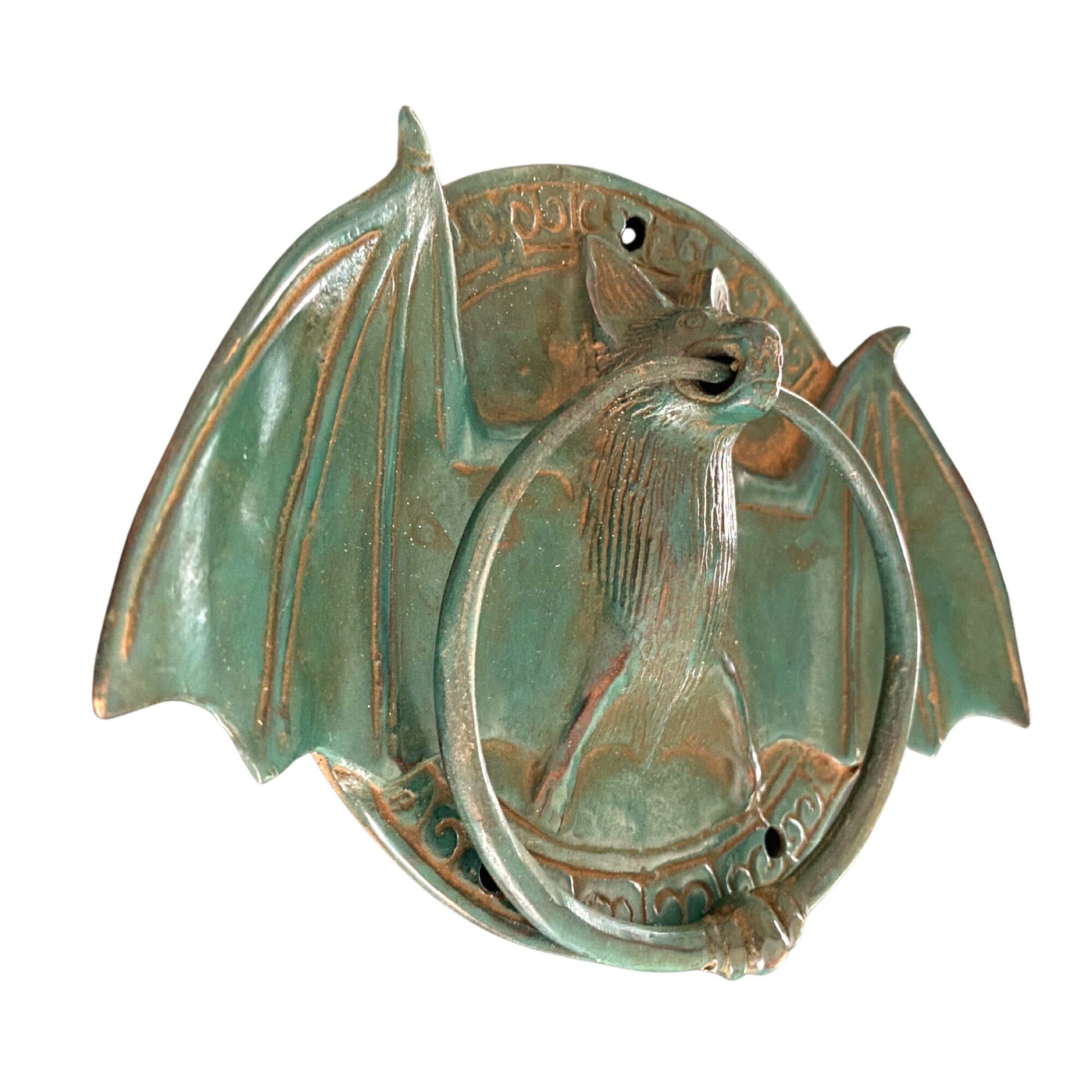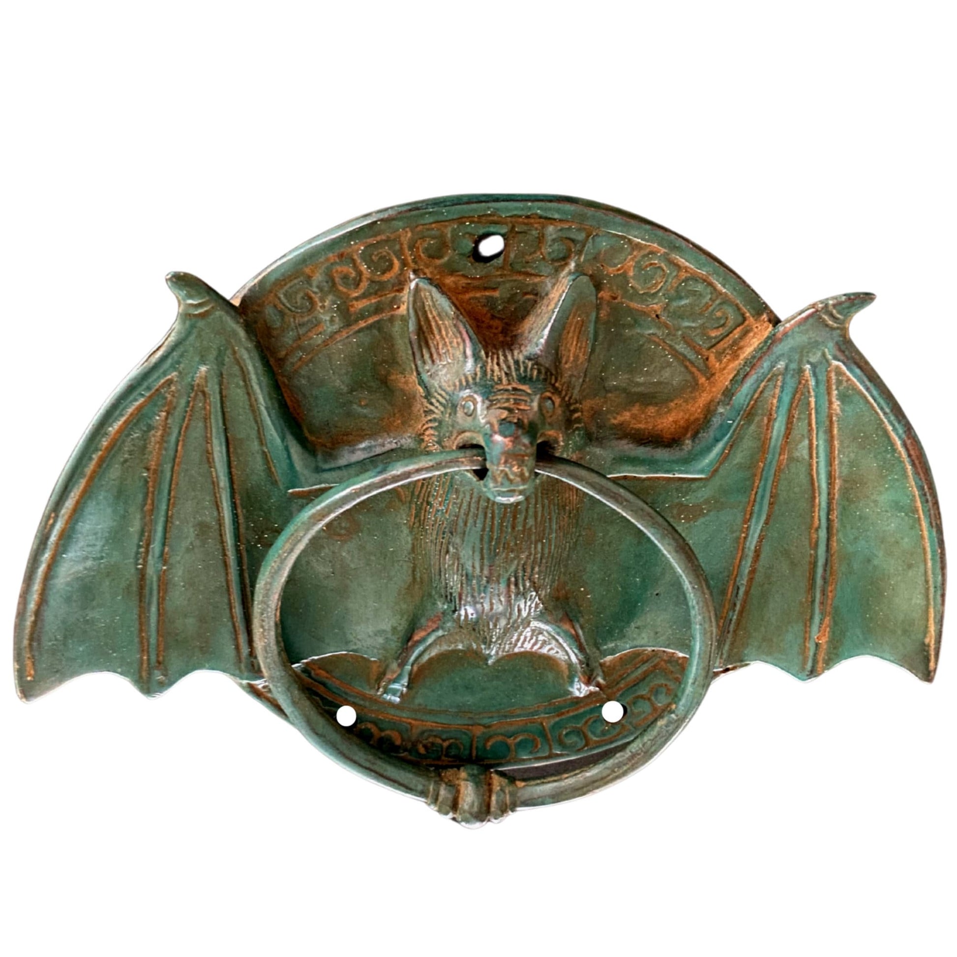 Gothic Bat Door Knocker handle knob Cabinet Pull lost wax Cast Verdigris handmade Bronze Bali Art