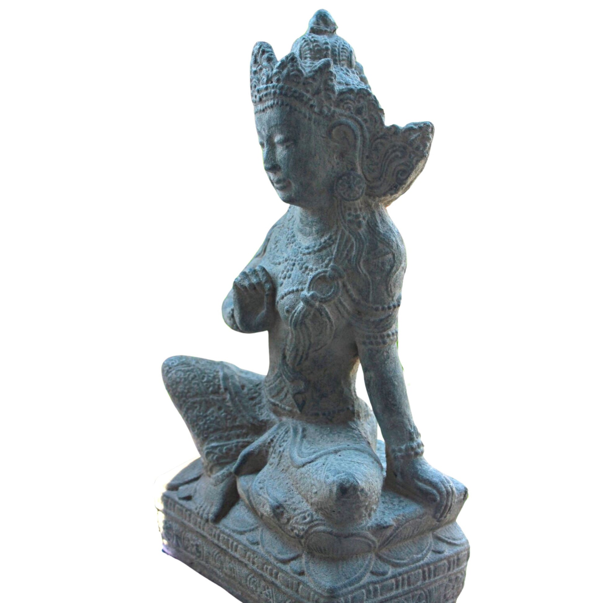 Guanyin Kwan Yin Garden Statue Water Moon Goddess Handmade Cast lava Stone Sculpture Mahayani Buddhism Balinese Art Yard Art