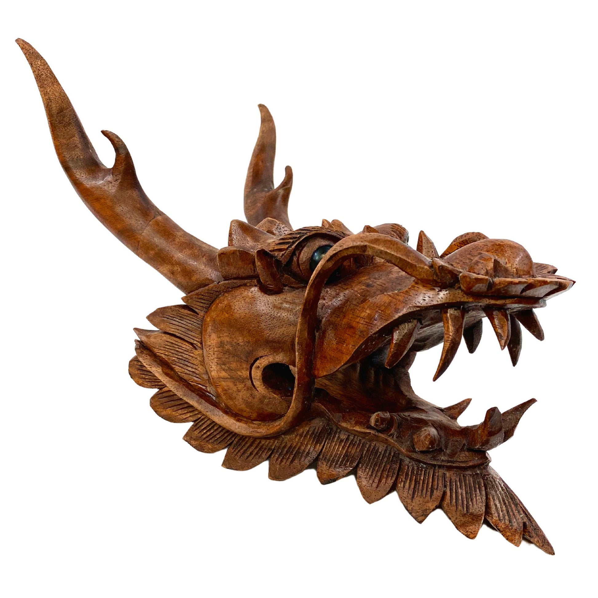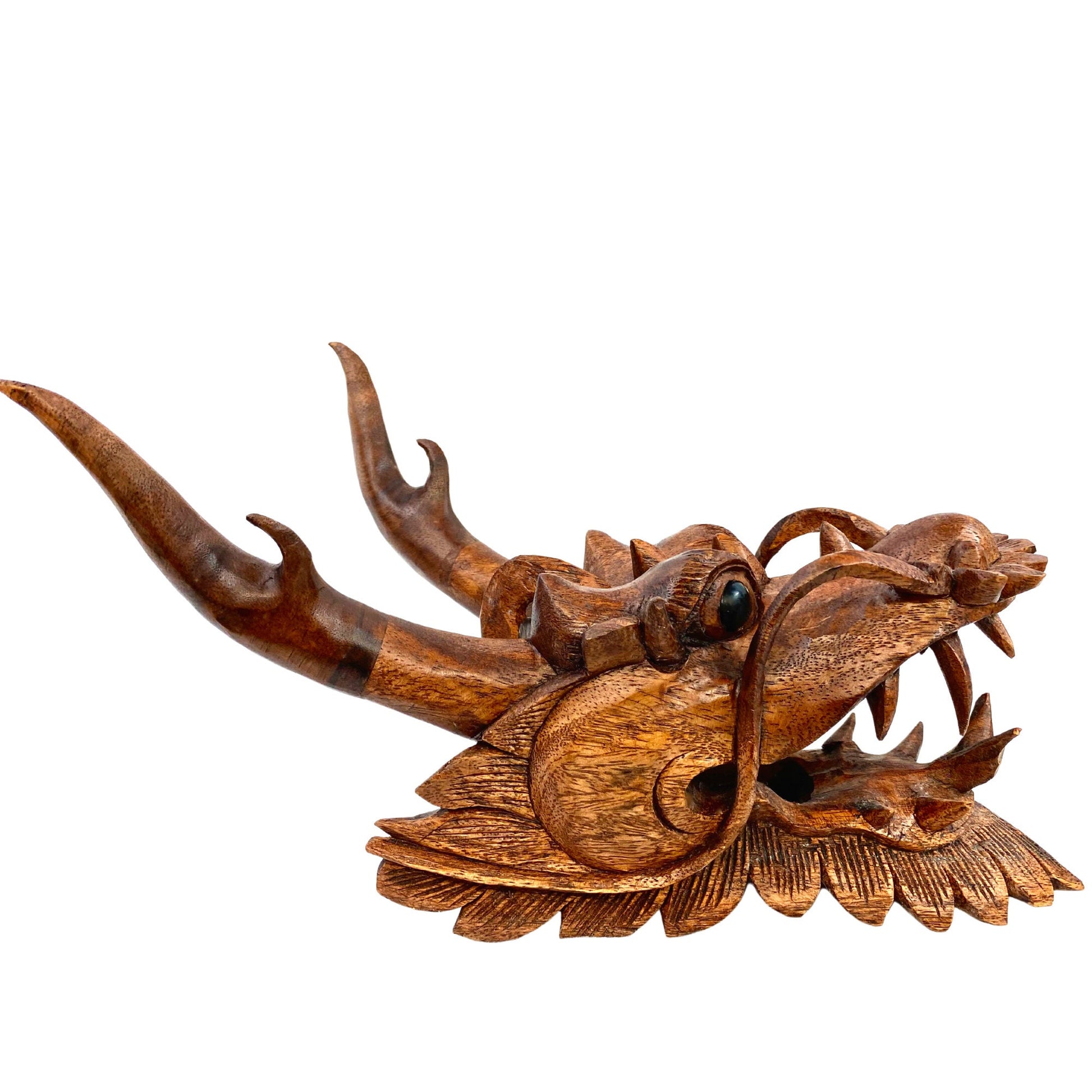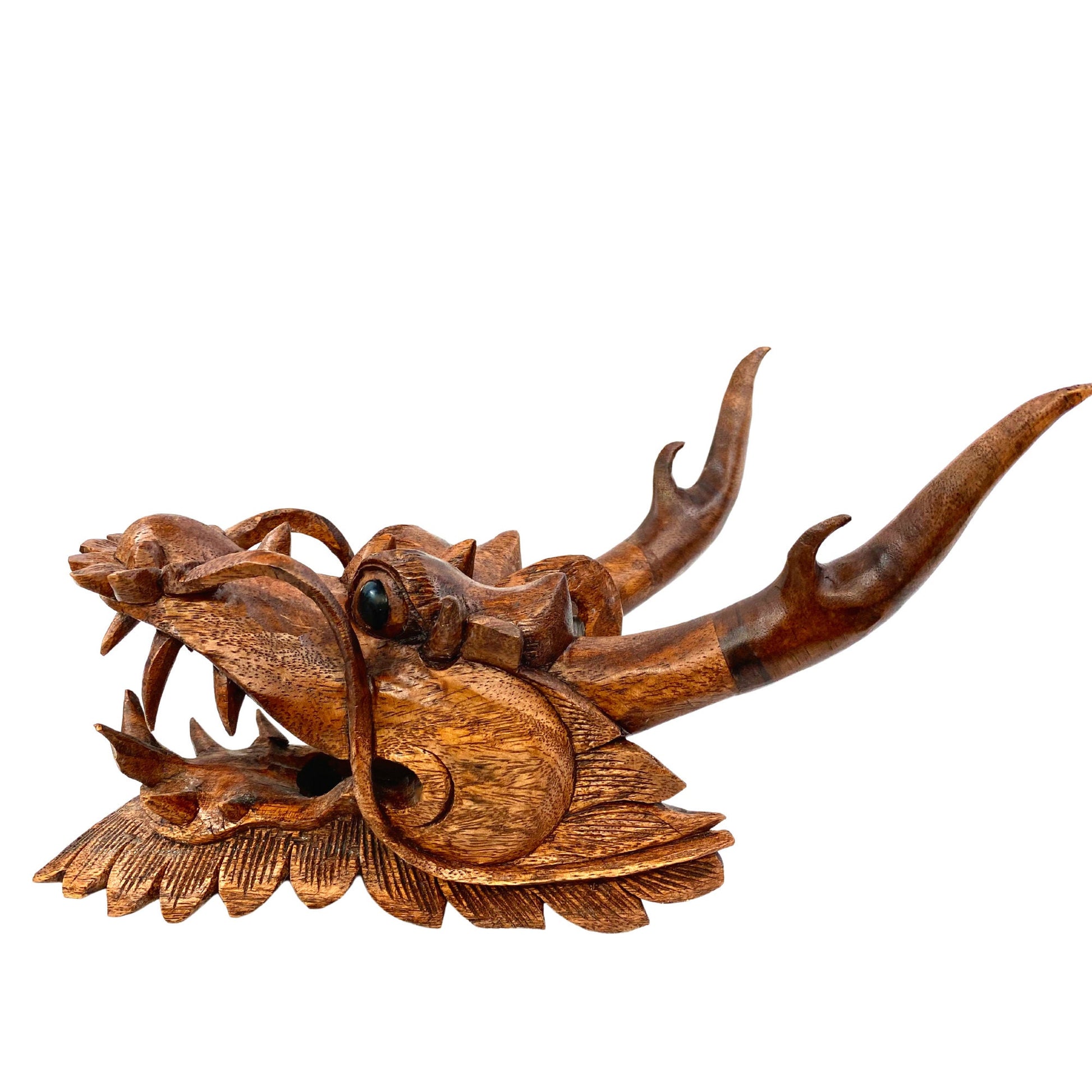 Horned Dragon Cosmic Naga Mask Hand Mask Wall art hand carved Suar wood Bali Art Asian style Decor