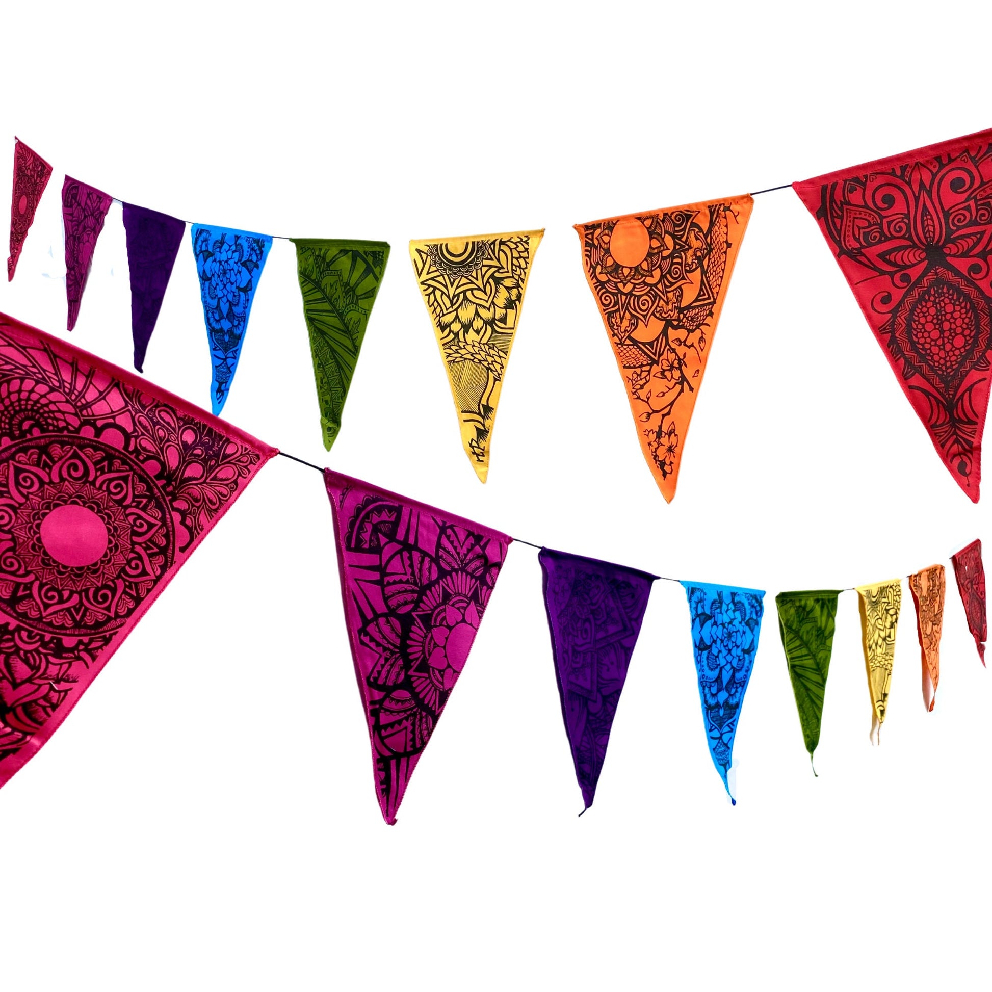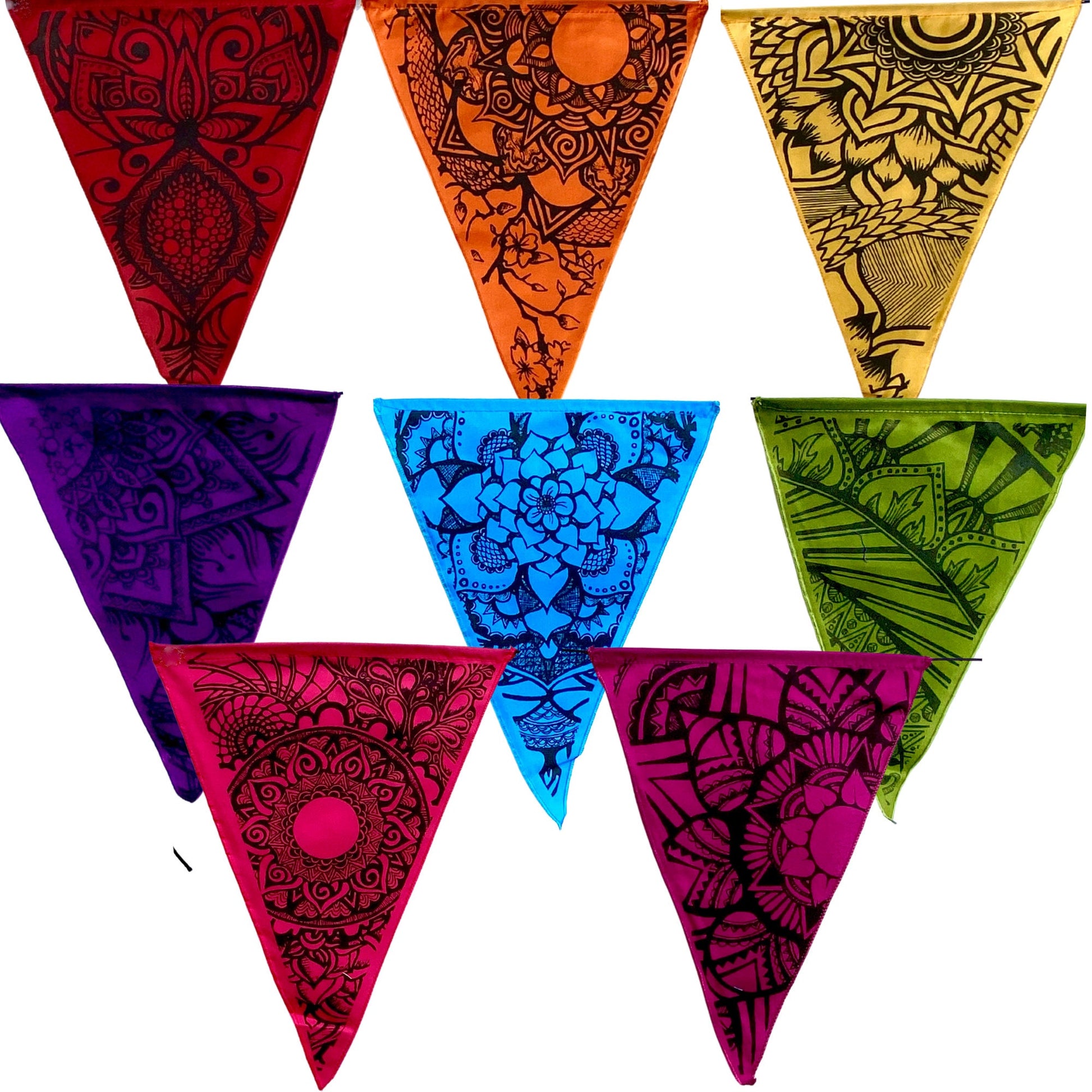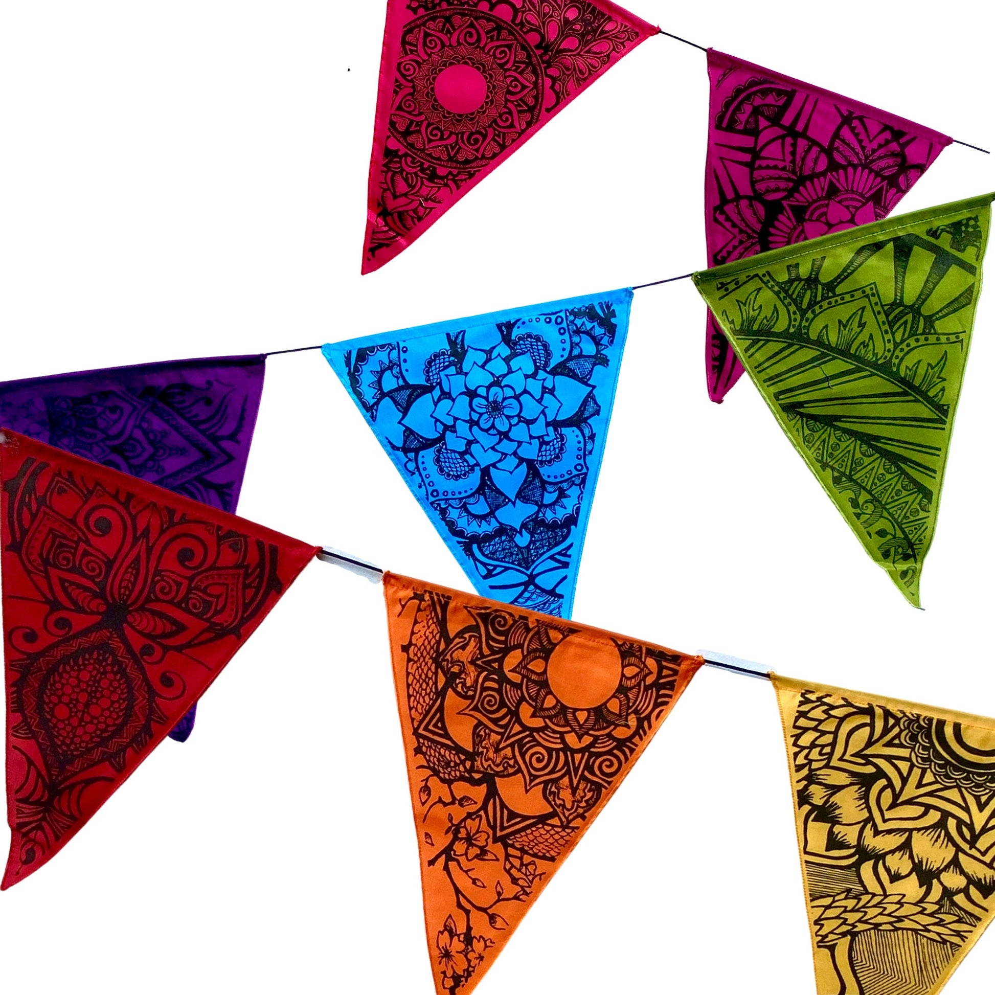 Hand Silk Screened Lotus Mandala Prayer Flags Bunting Positive Energy Boho decor, perfect addition to your home or garden!