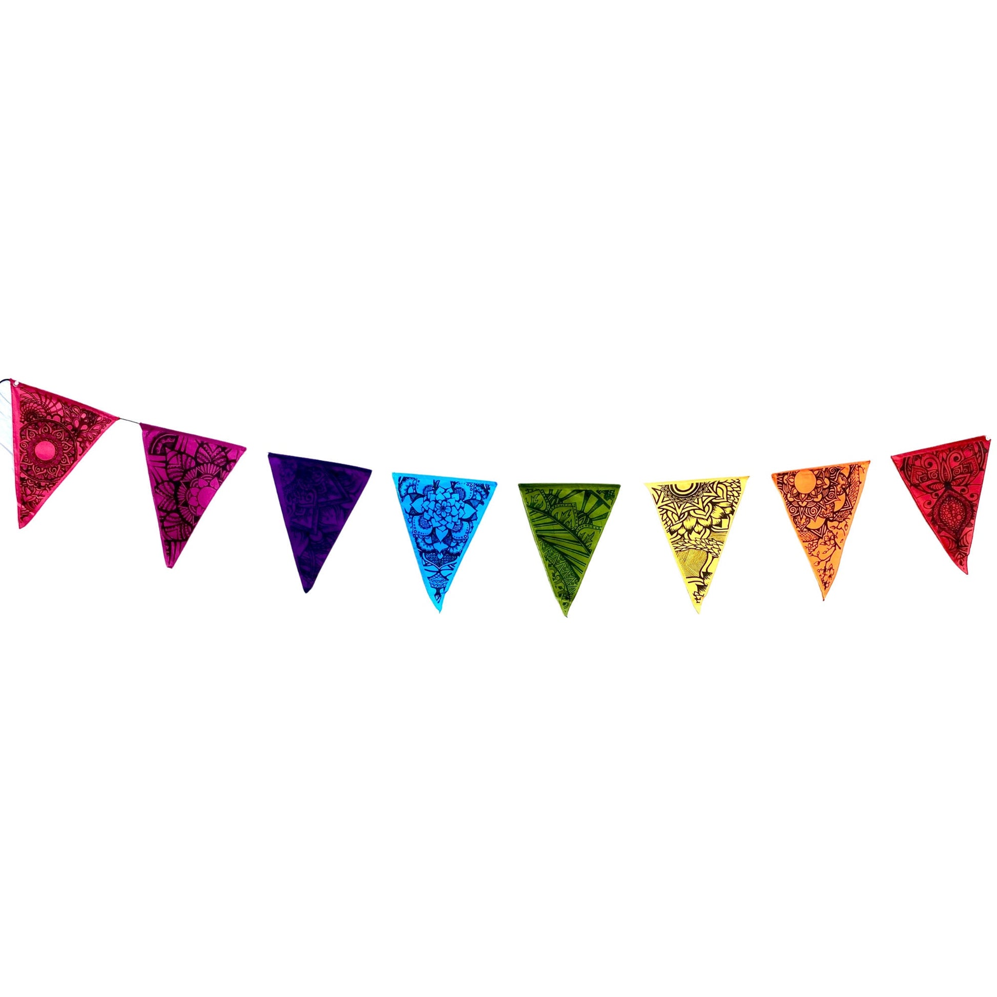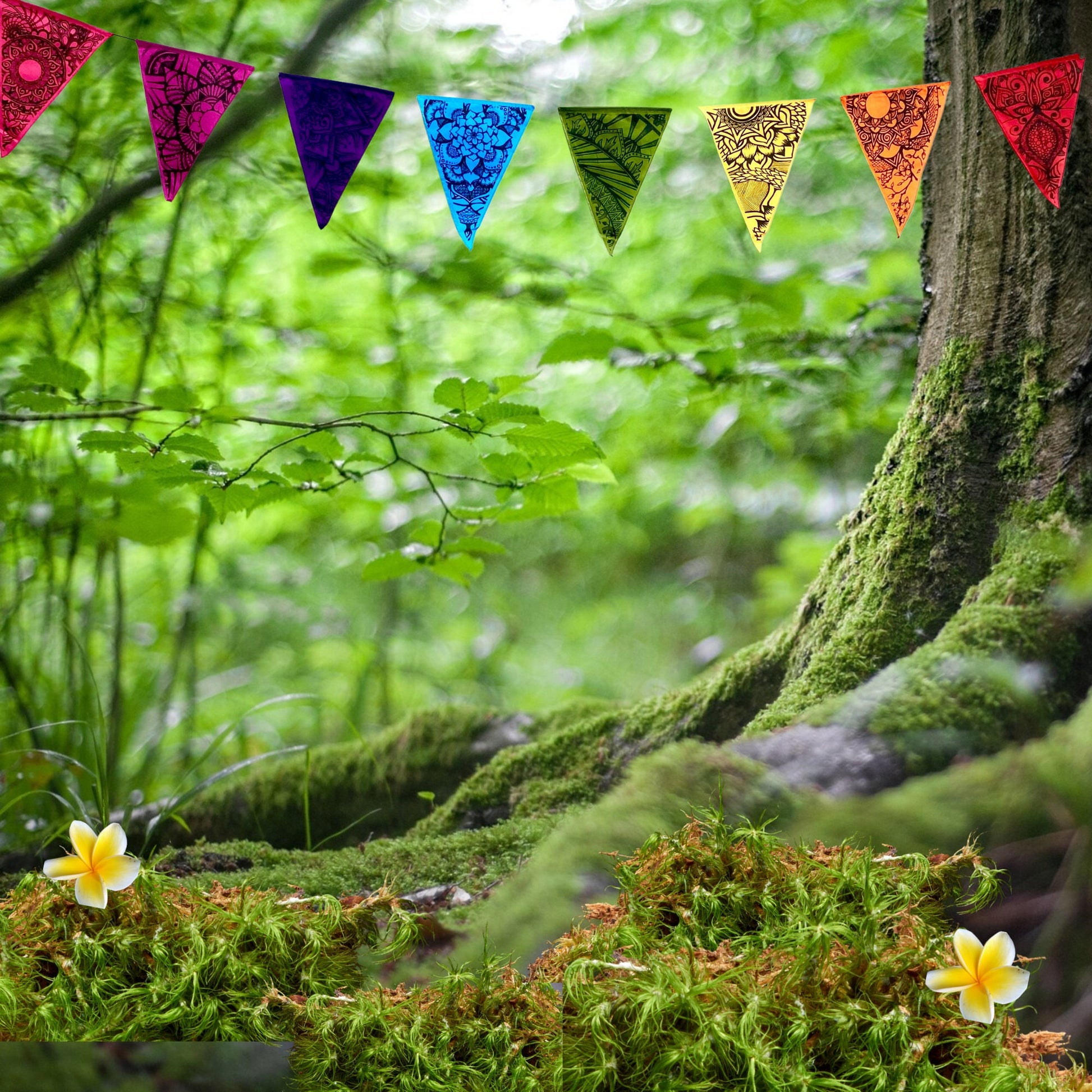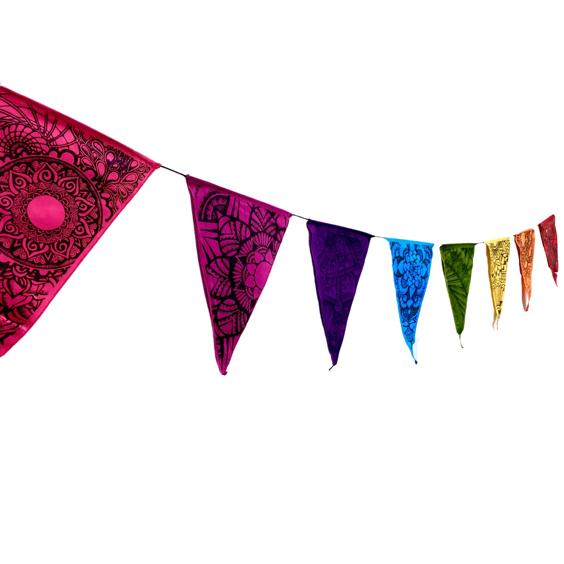 Hand Silk Screened Lotus Mandala Prayer Flags Bunting Positive Energy Boho decor, perfect addition to your home or garden!