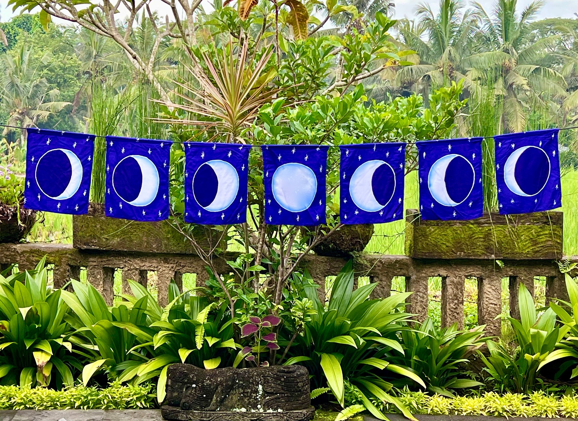 Lunar Moon Phase Handmade Bali Batik Prayer Flag Wall hanging bunting Banner Garden art