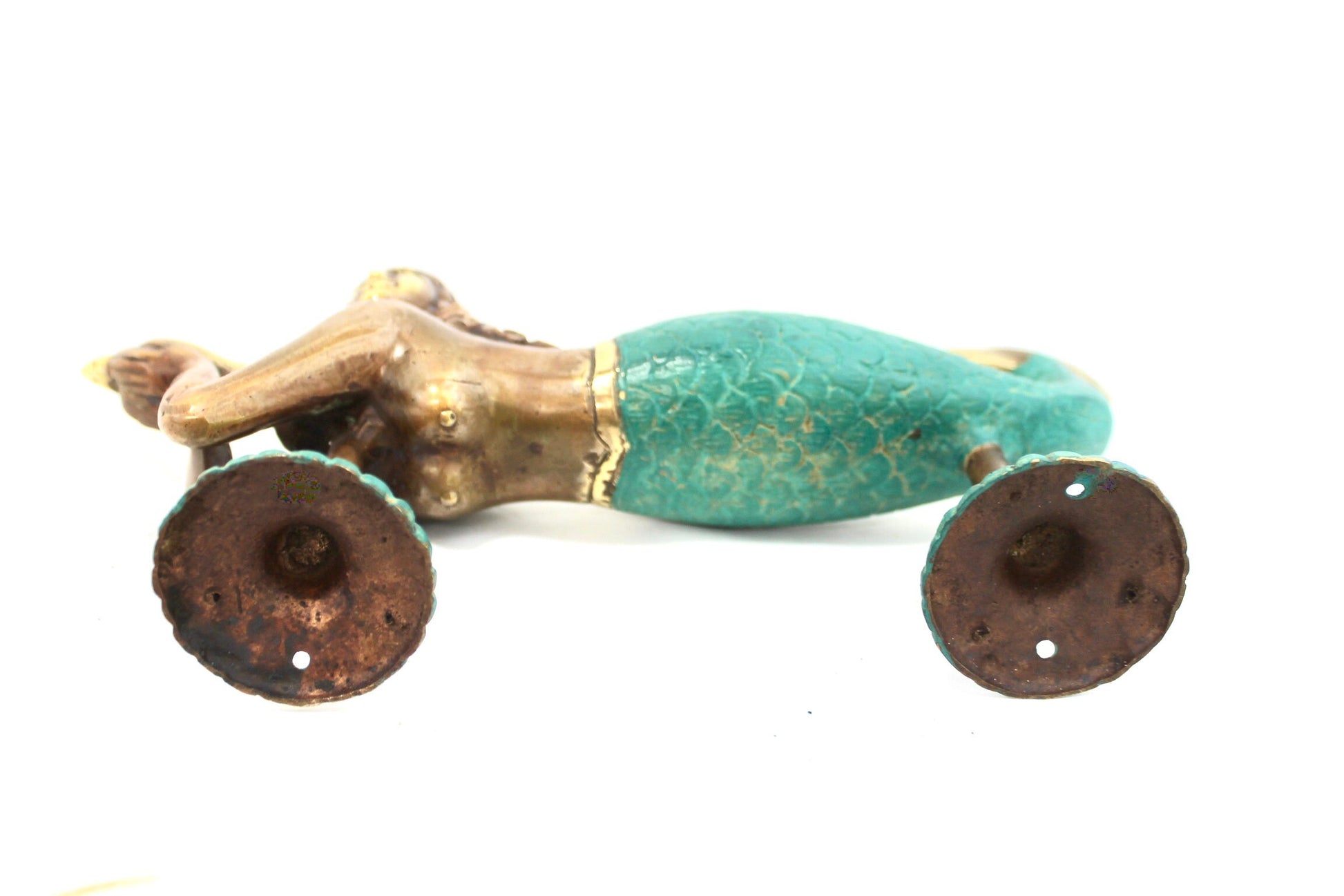 Mermaid Bronze Door Handle Knob lost wax cast Verdigris Green 10.5"