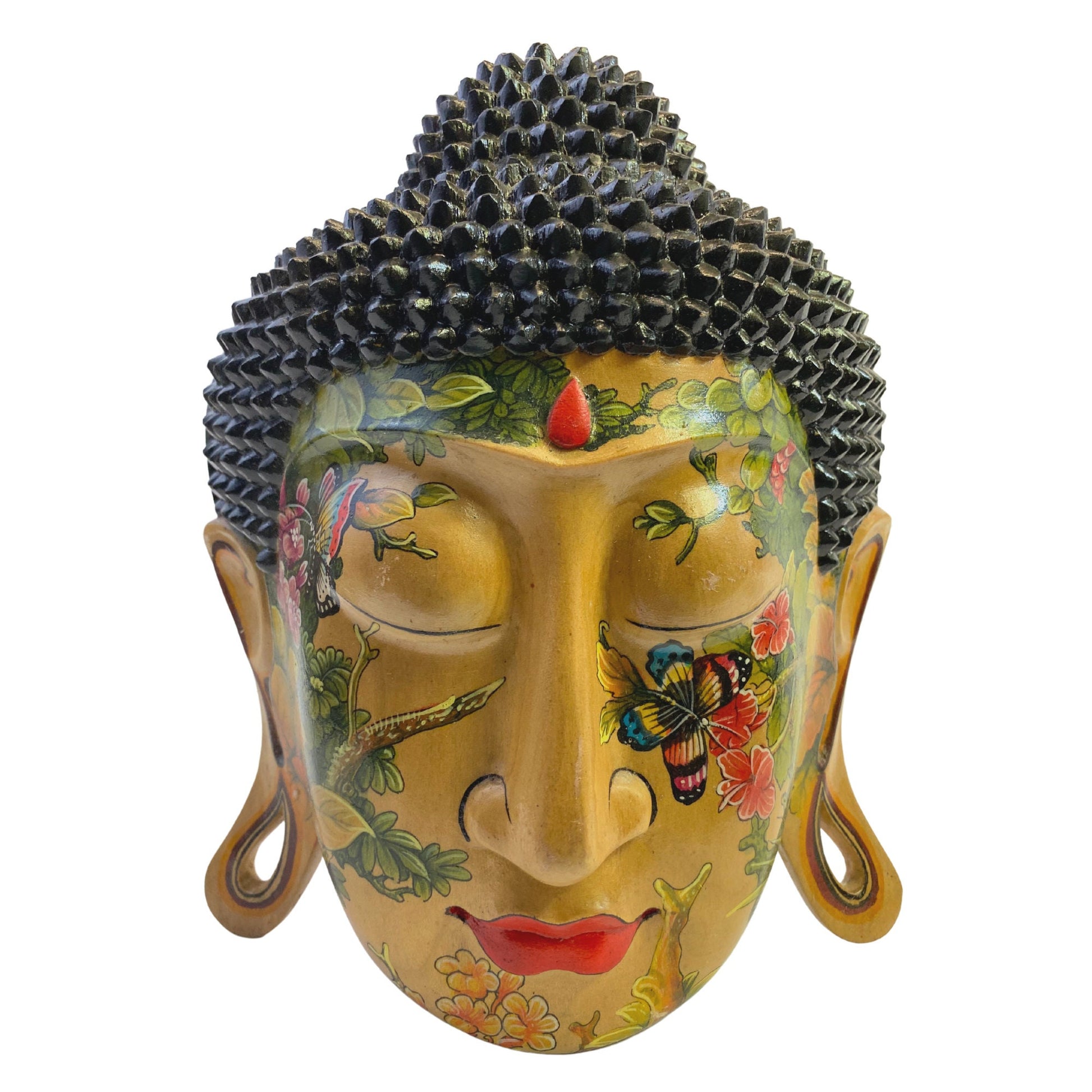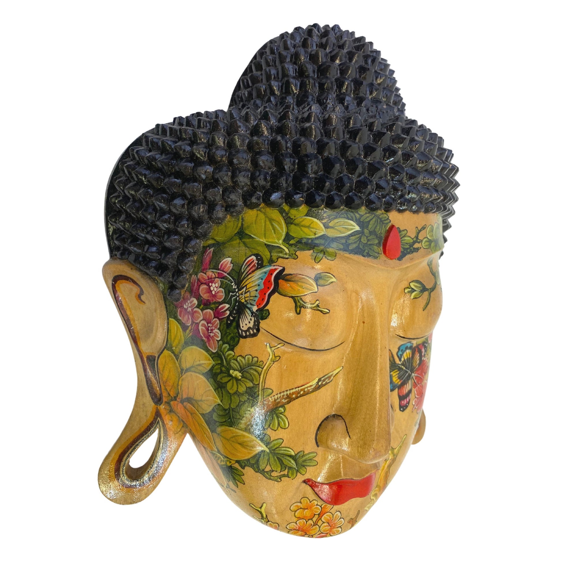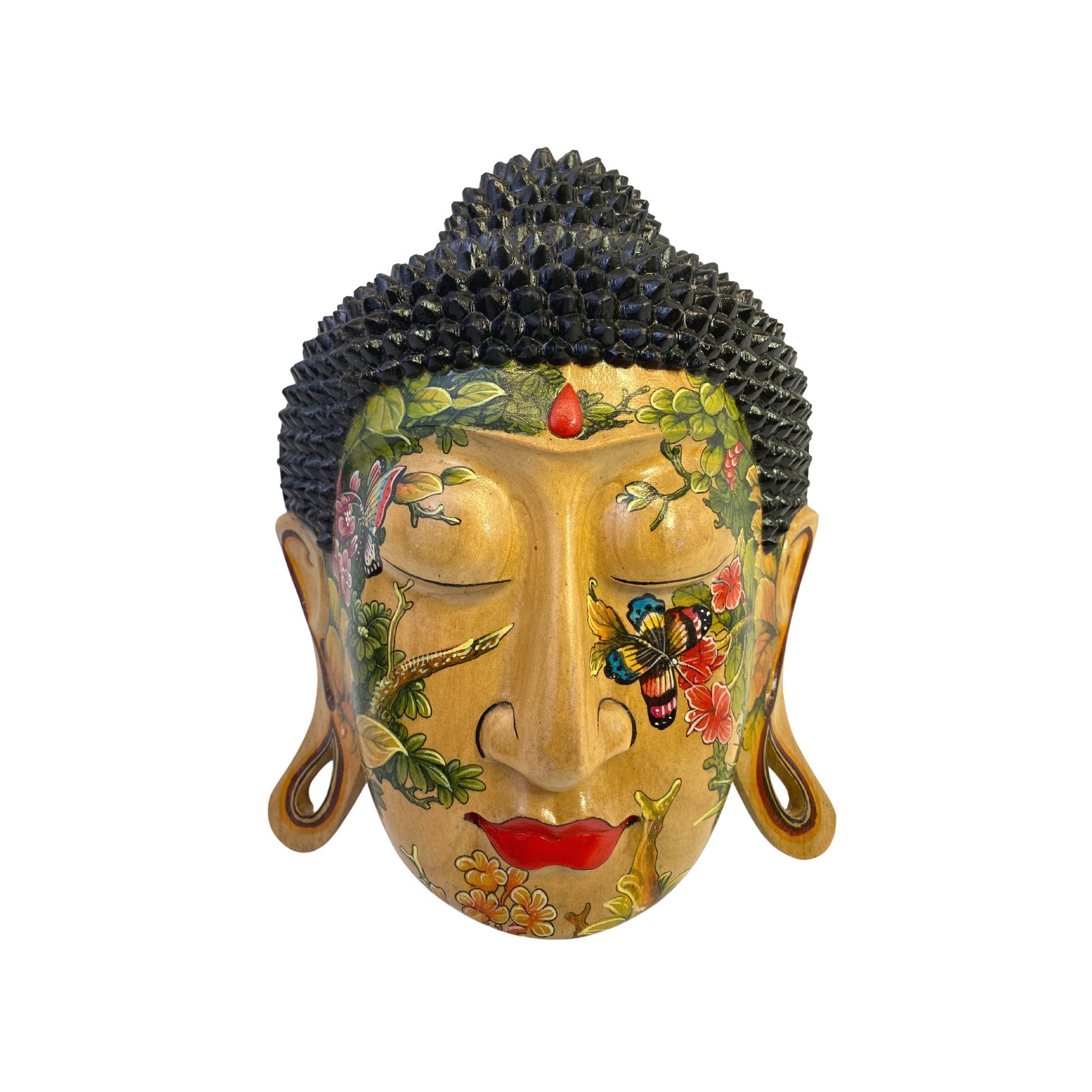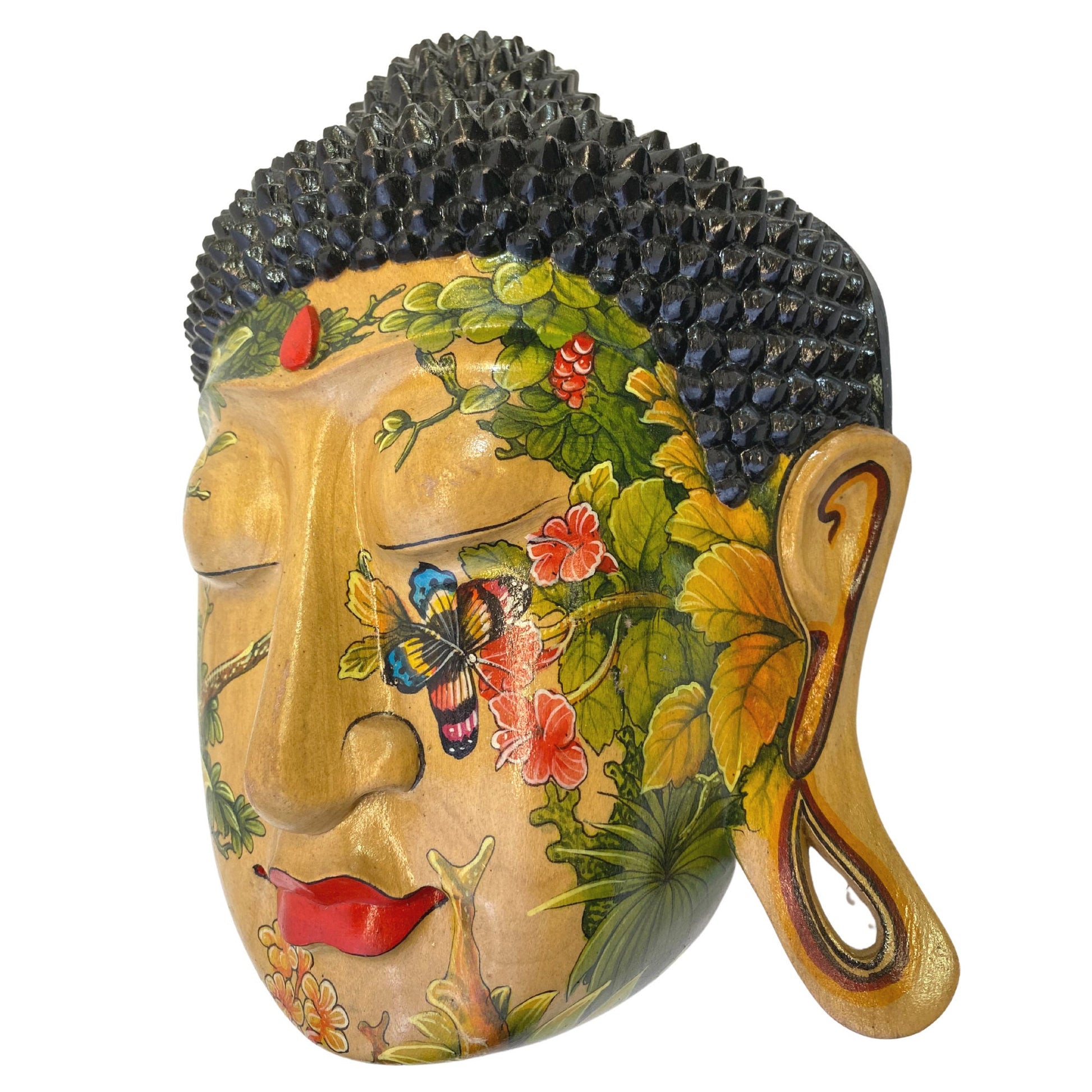 Mystic Buddha Mask Butterfly Garden Tattoo Wall art Sculpture Balinese miniature style painting Ubud village art hand painted wood carving