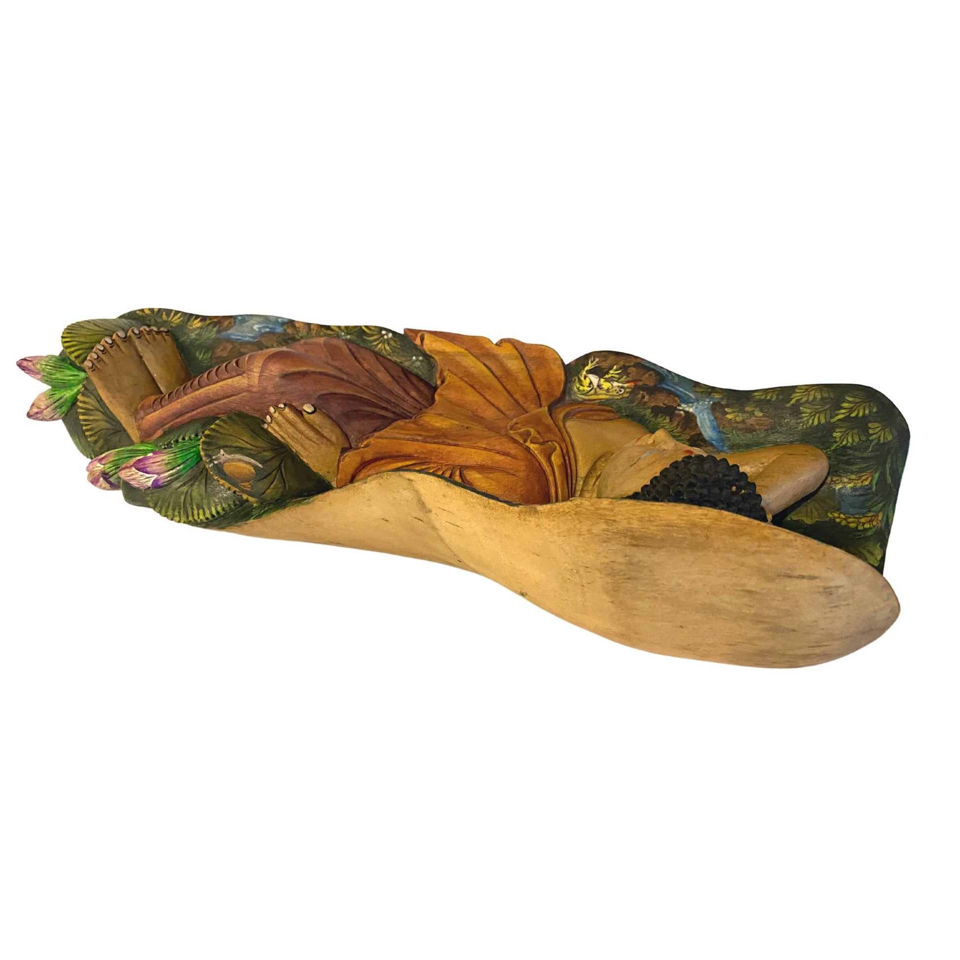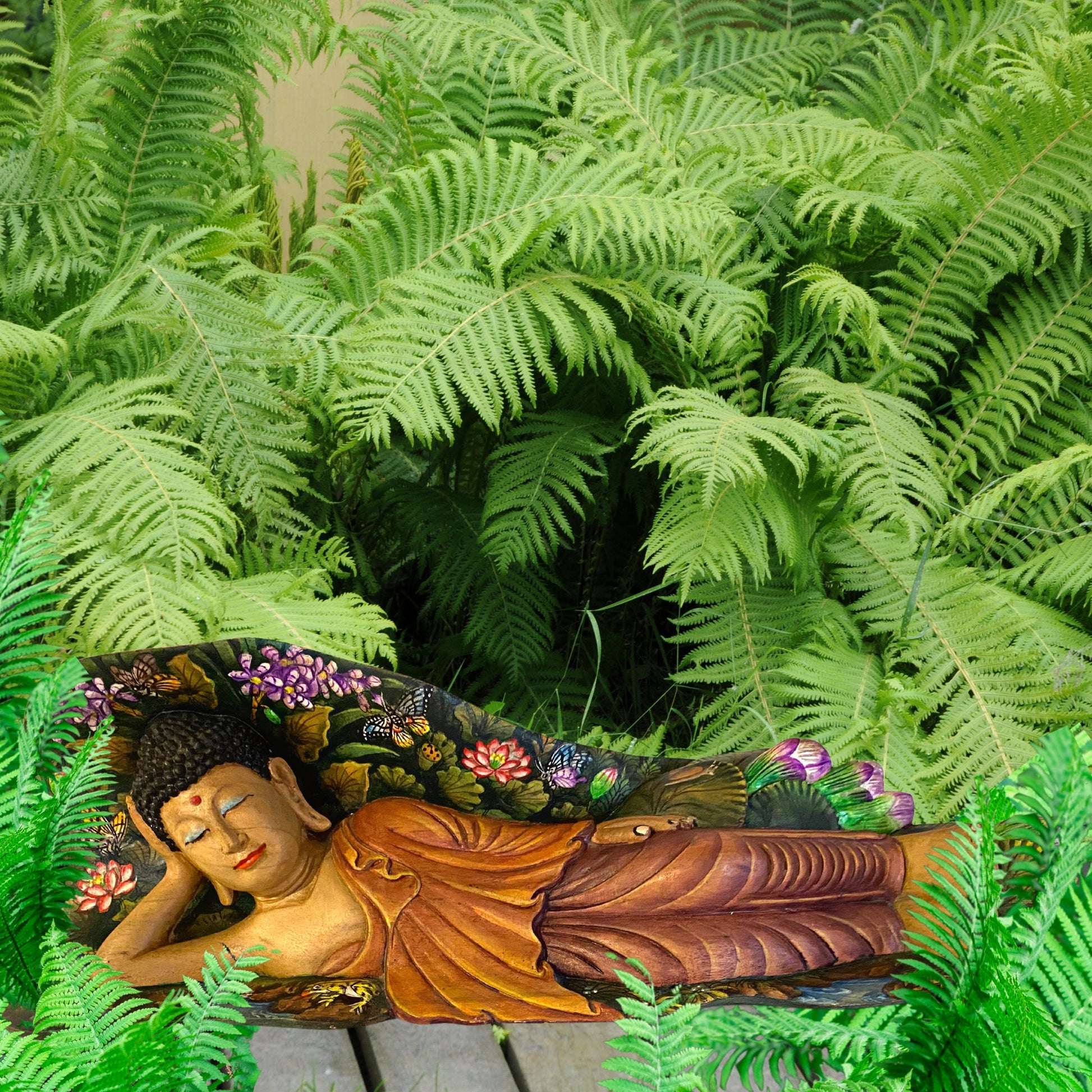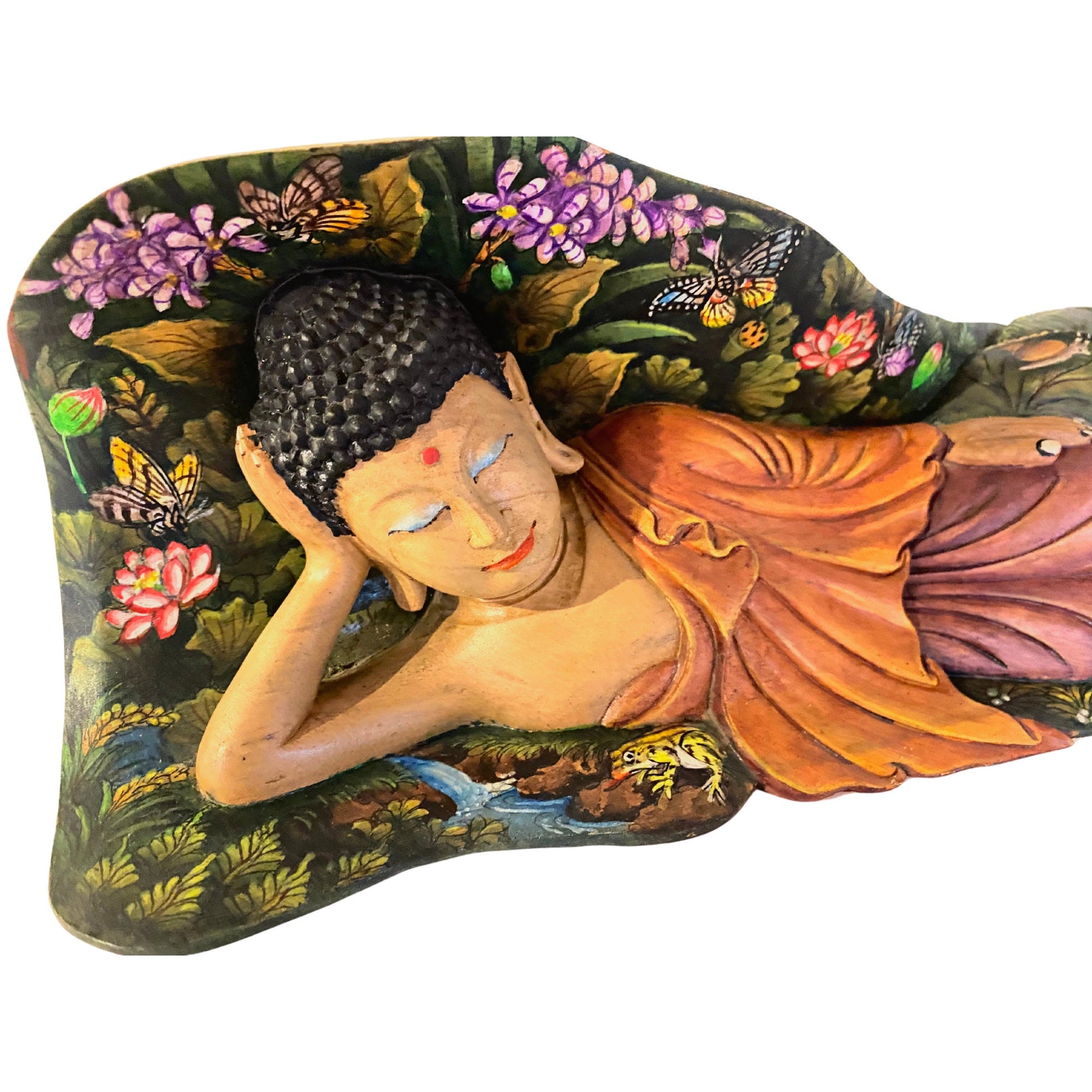 Nirvana Buddha Statue Resting In Repose Hand Painted & Carved Wood Sculpture Balinese Bali Buddhist Art wood carving