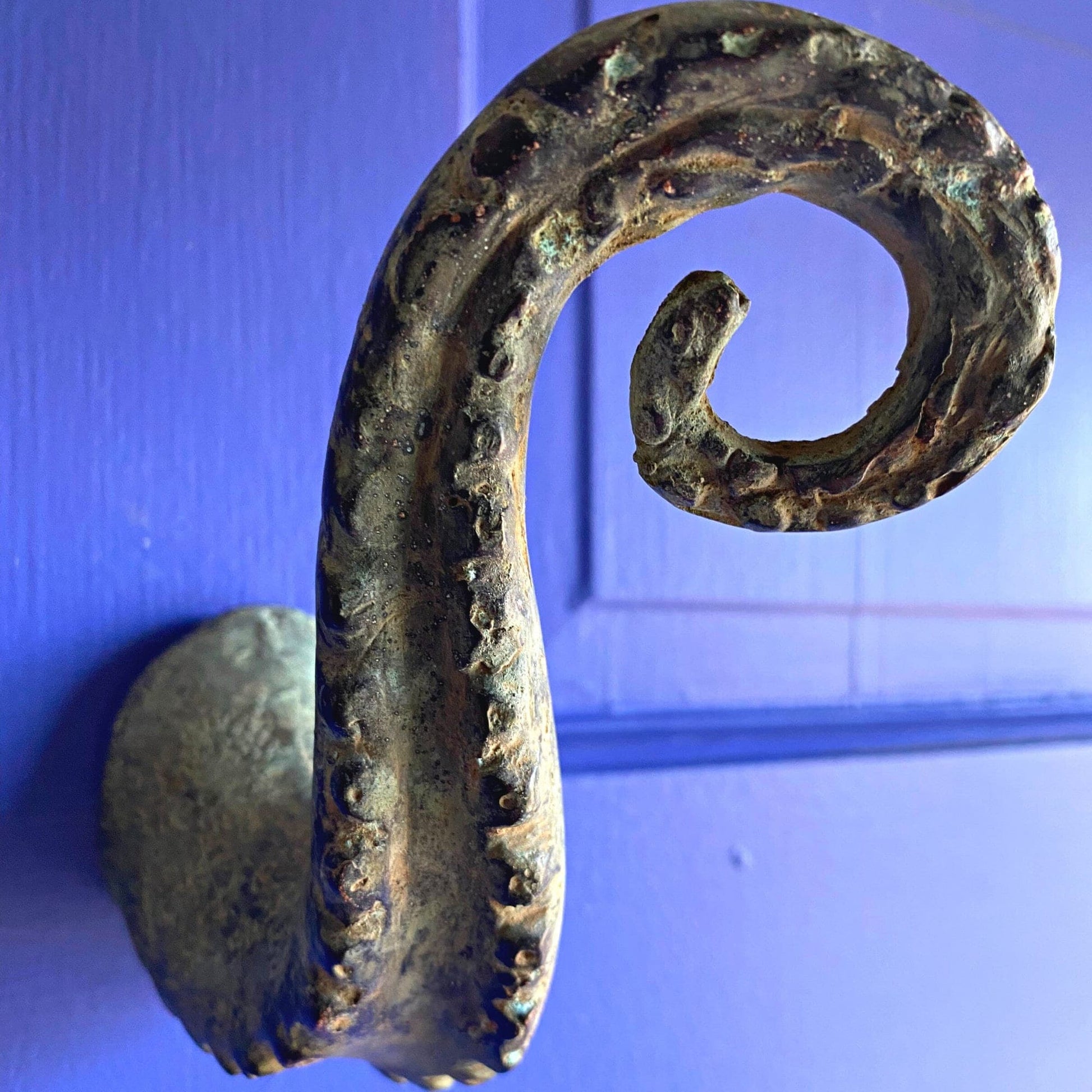 Octopus Tentacle Wall Hook handmade coat hook Bronze Green Verdigris Patina metal Nautical Home decor