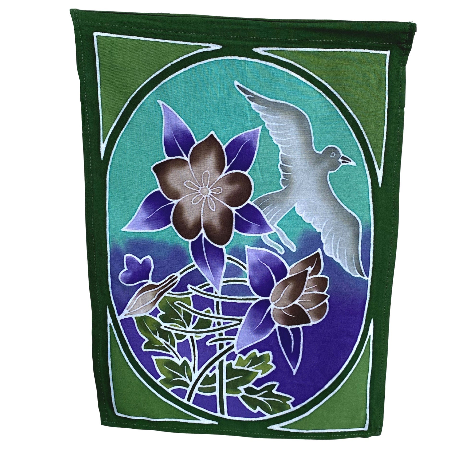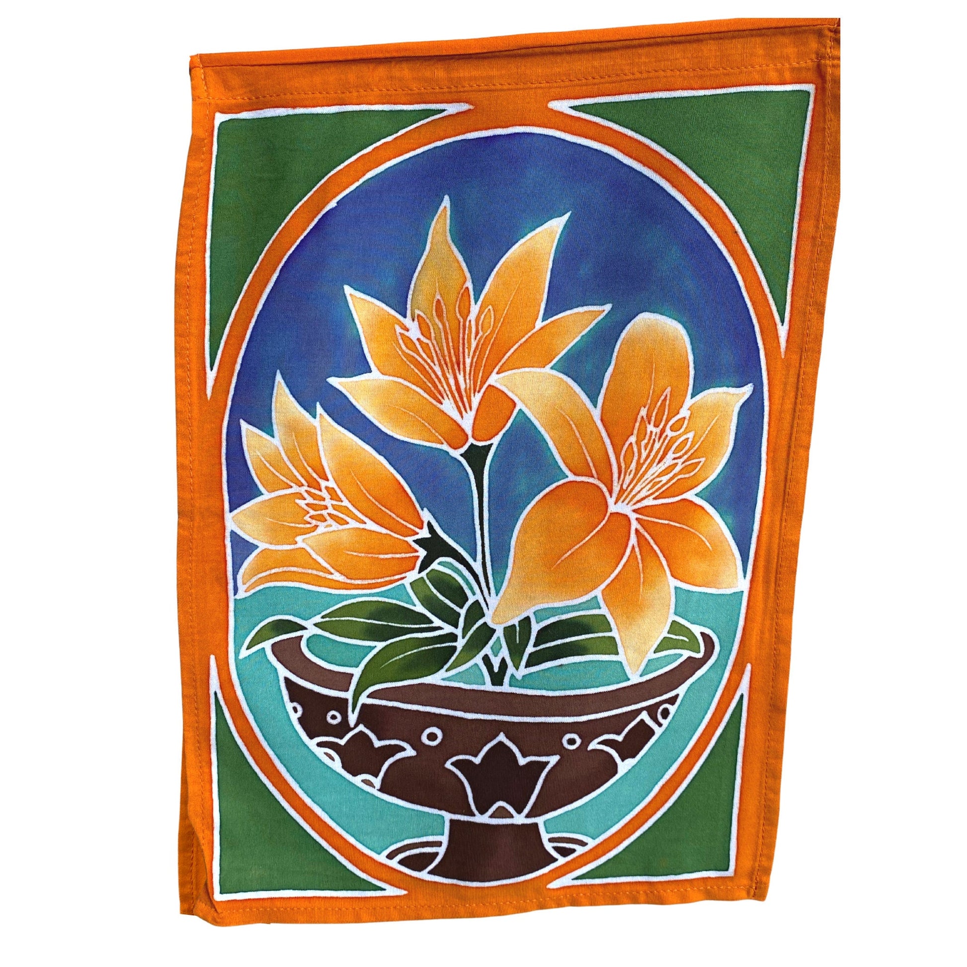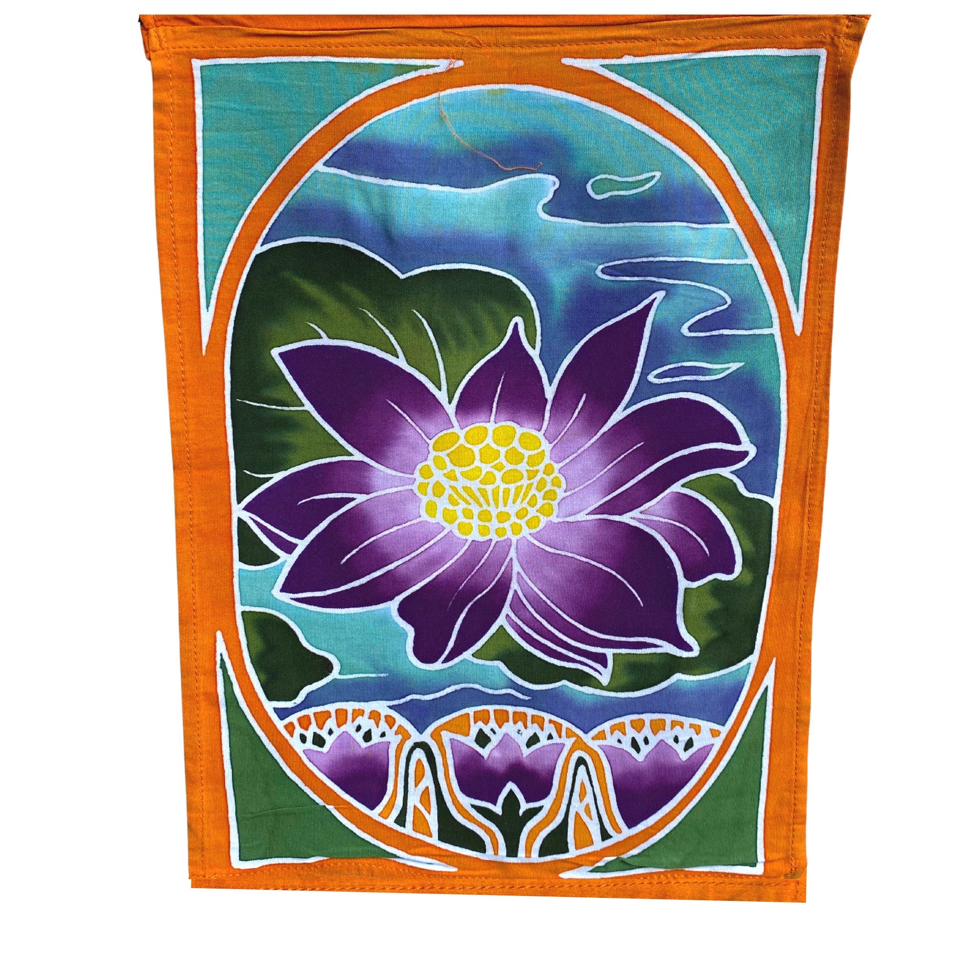 Prayer Flag Sacred Lotus Wall Hanging Banner Balinese Handmade Batik Boho Garden Art & Home Decor