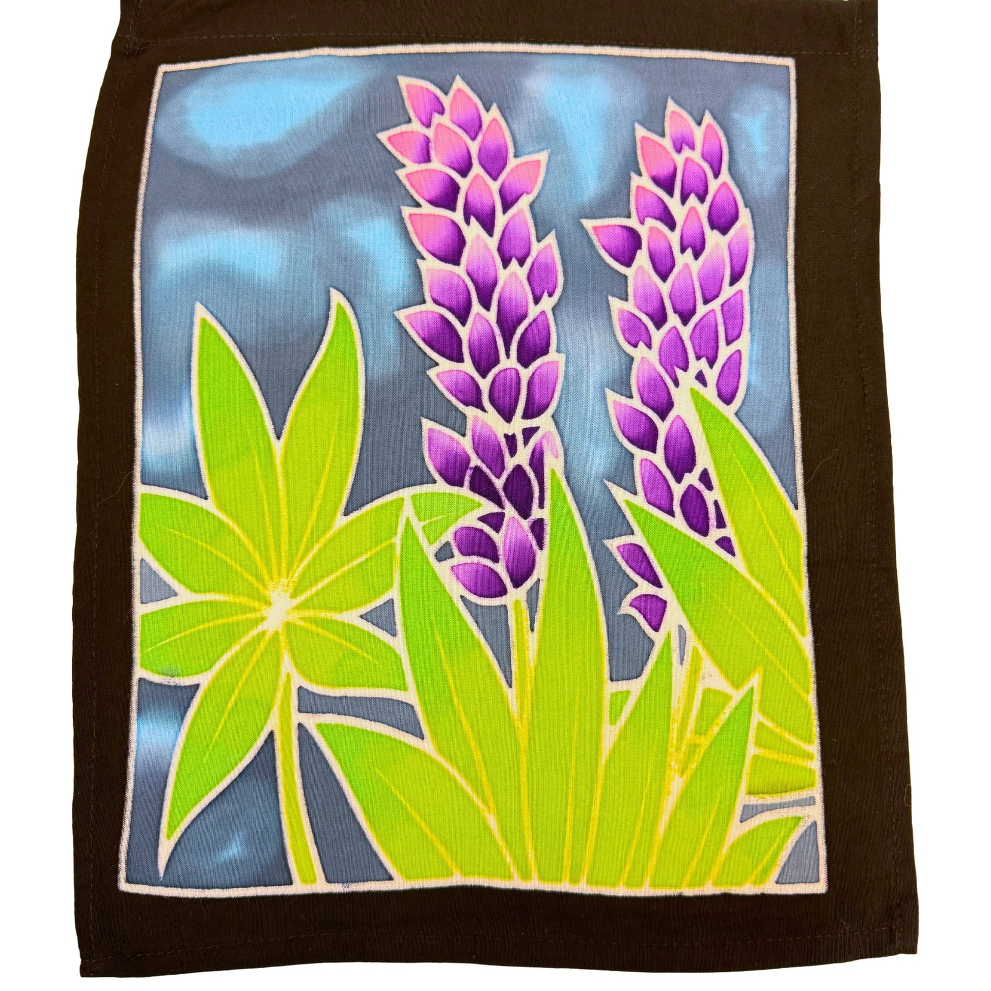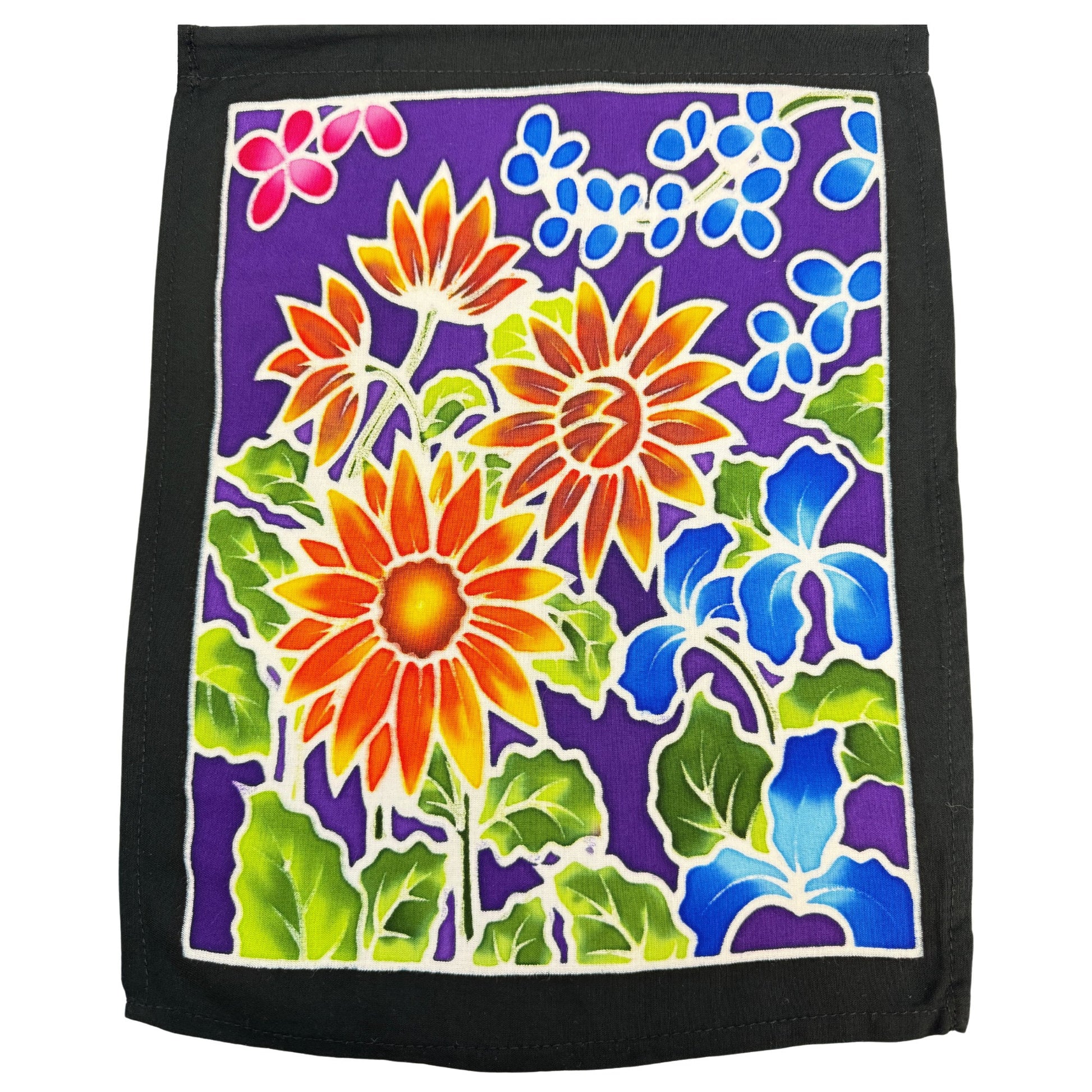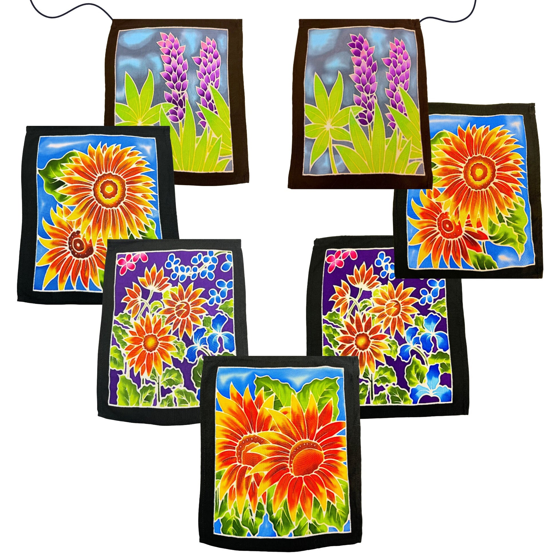 Prayer Flag Summer Sun Flowers and Lupine Wild Flowers Meadow Wall Hanging Banner Balinese Handmade Batik Boho Garden Art & Home Decor