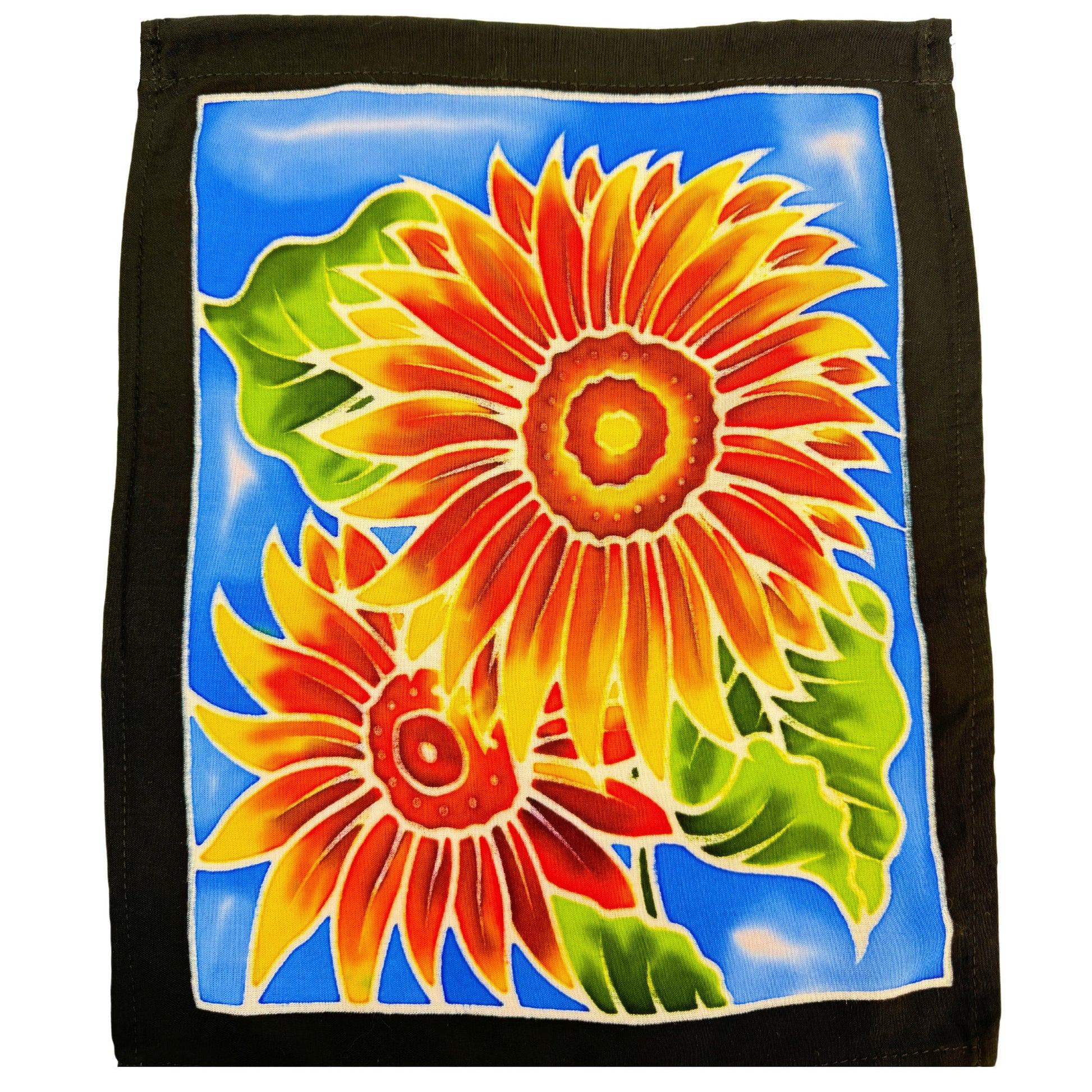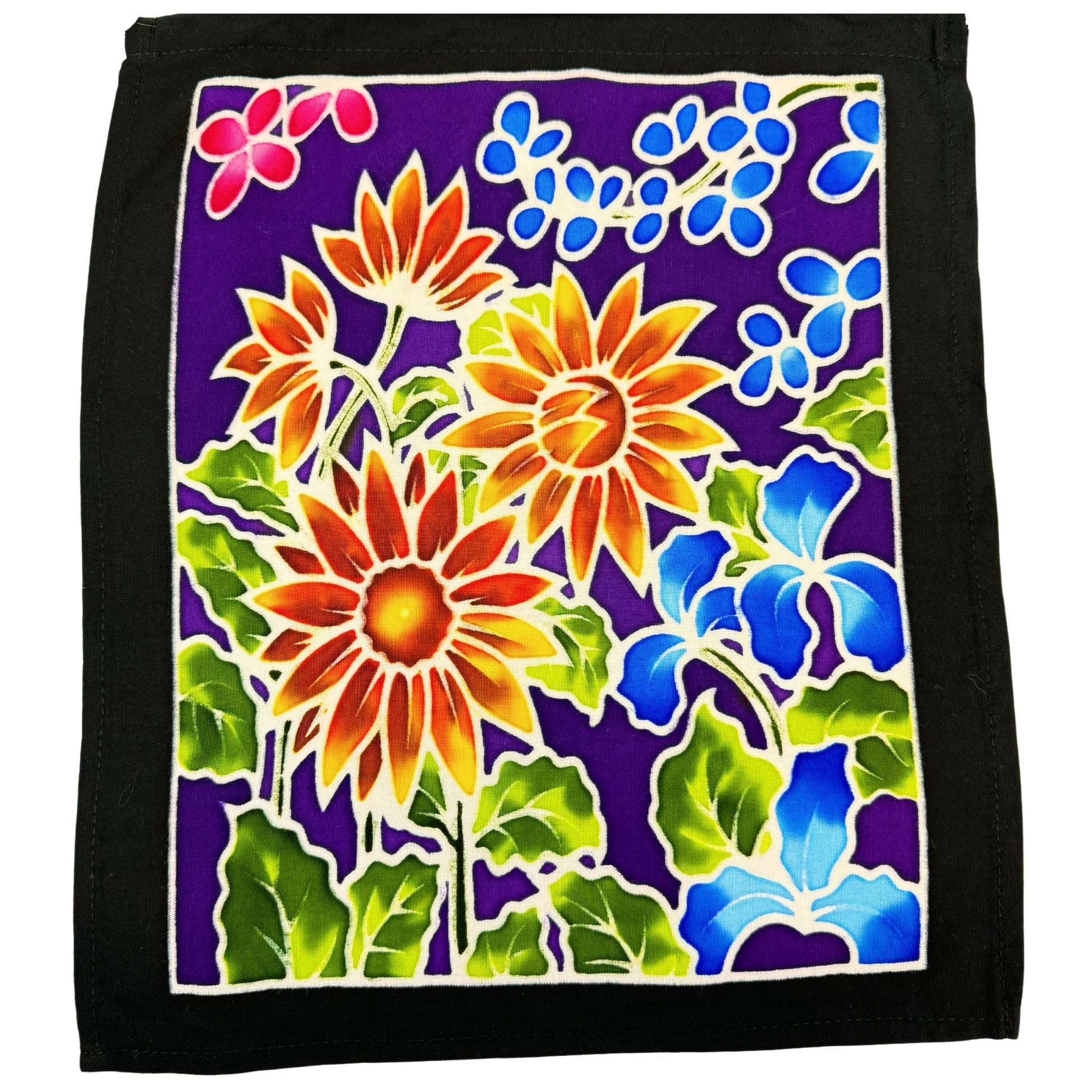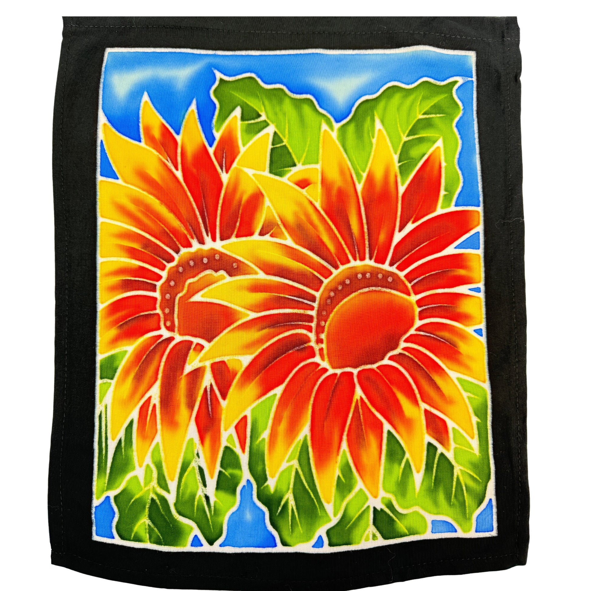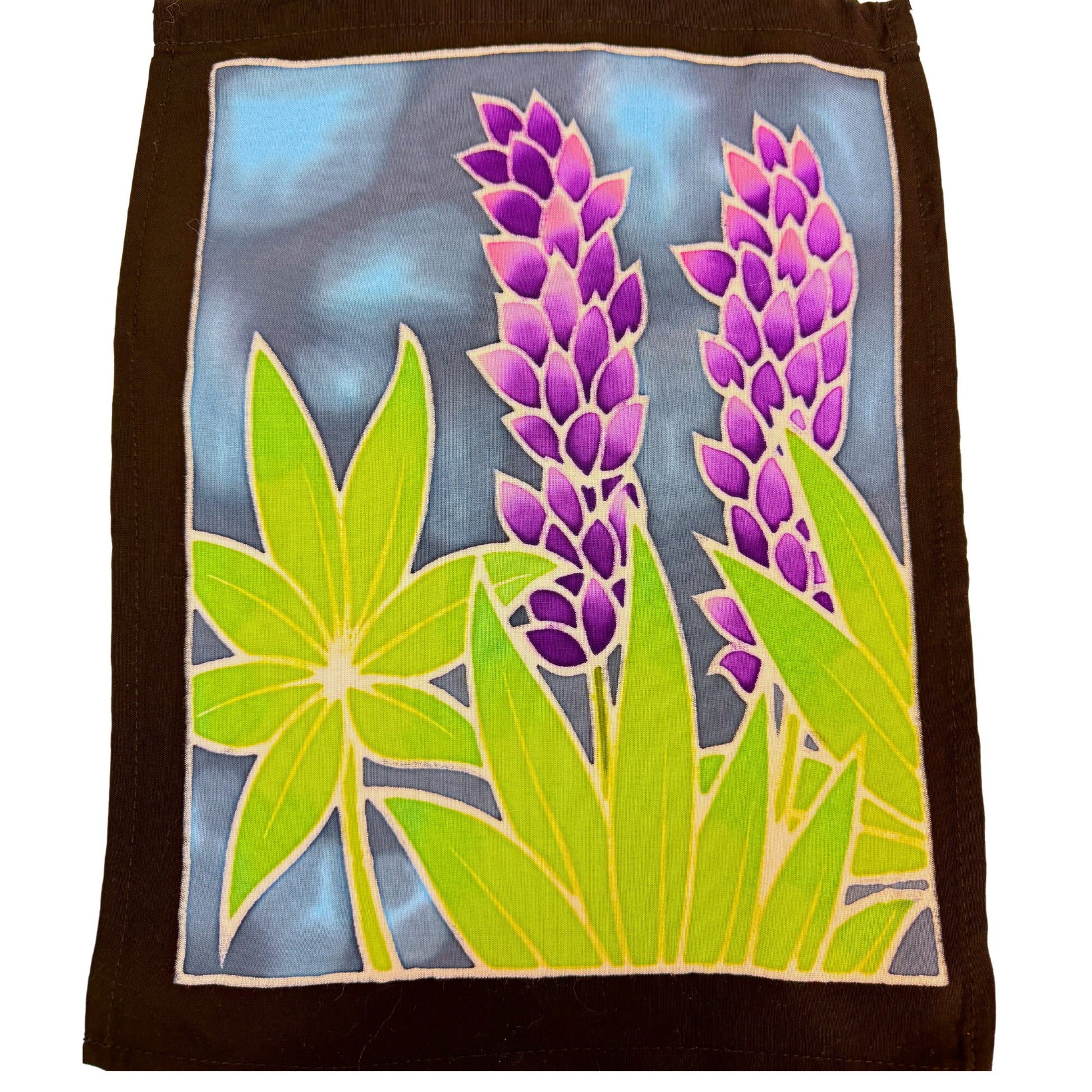 Prayer Flag Summer Sun Flowers and Lupine Wild Flowers Meadow Wall Hanging Banner Balinese Handmade Batik Boho Garden Art & Home Decor