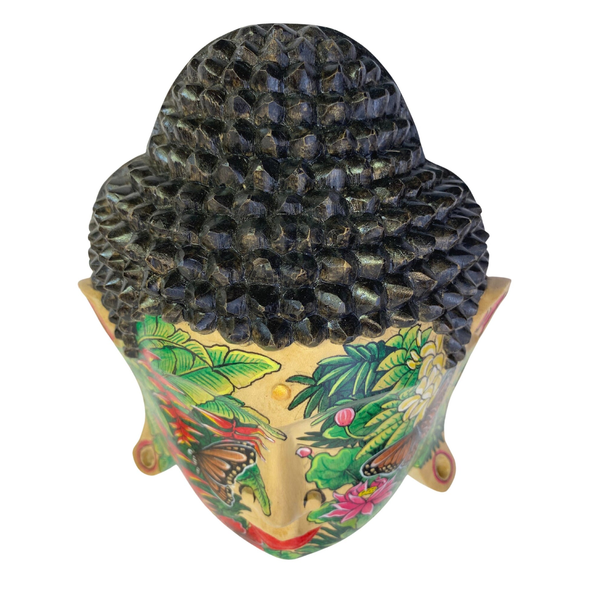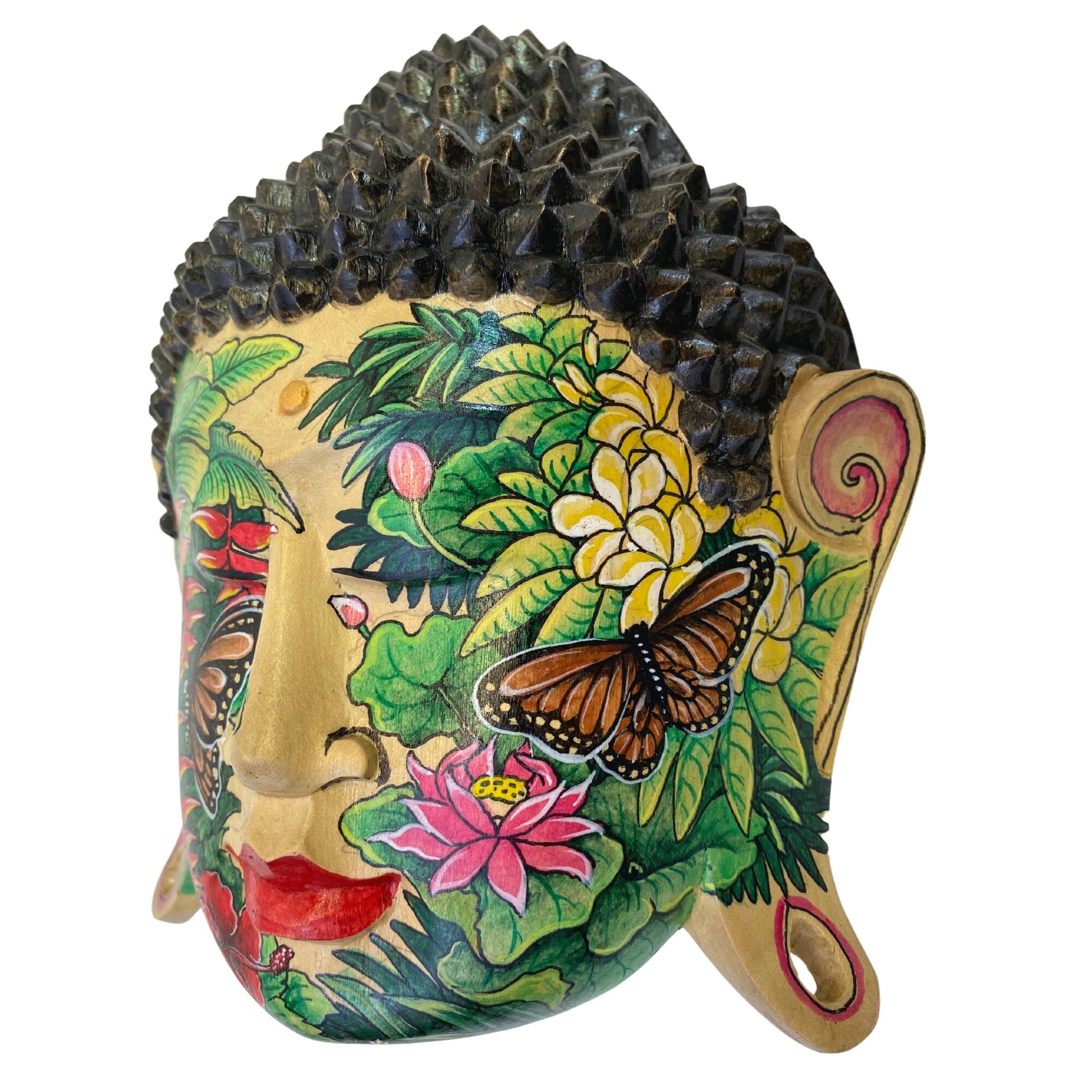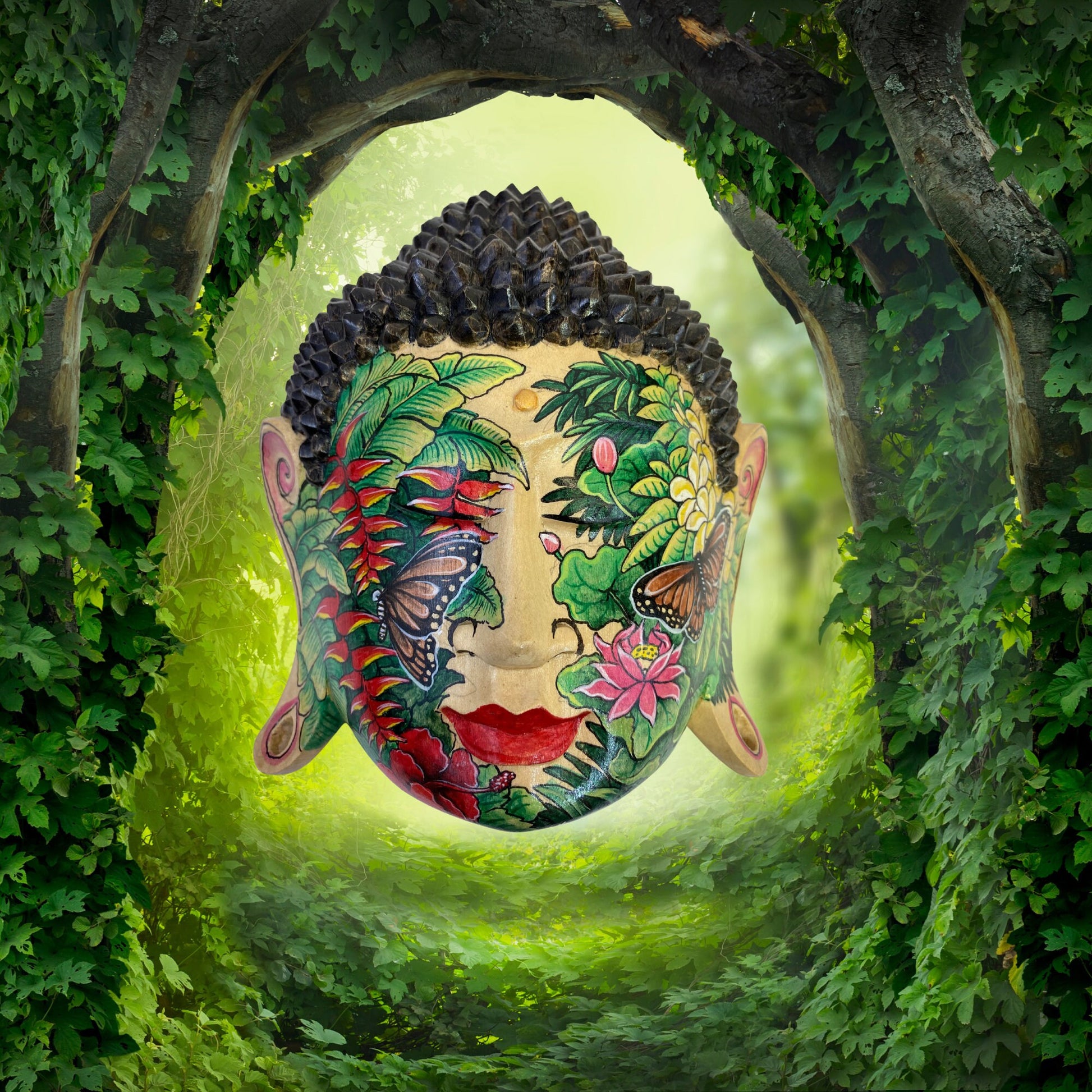 Rainforest Mystic Tattoo Buddha Mask Wall art Sculpture Balinese miniature style painting Ubud village art art hand painted wood carving