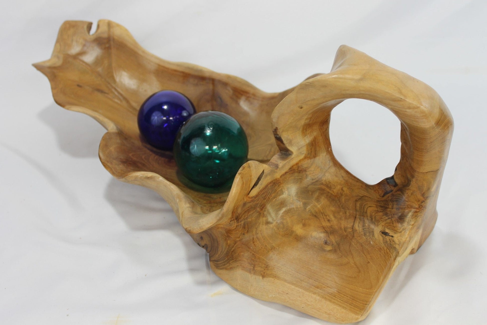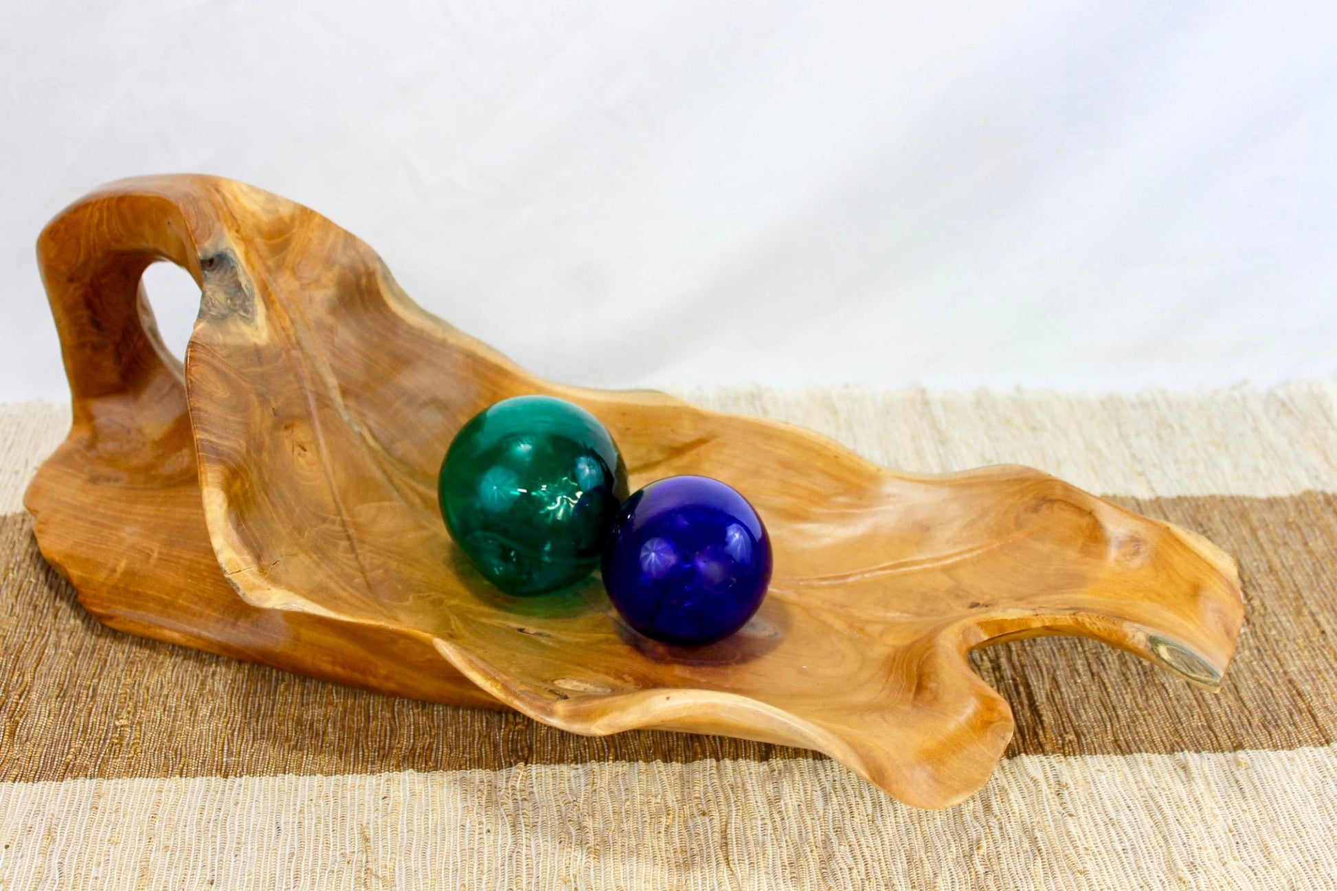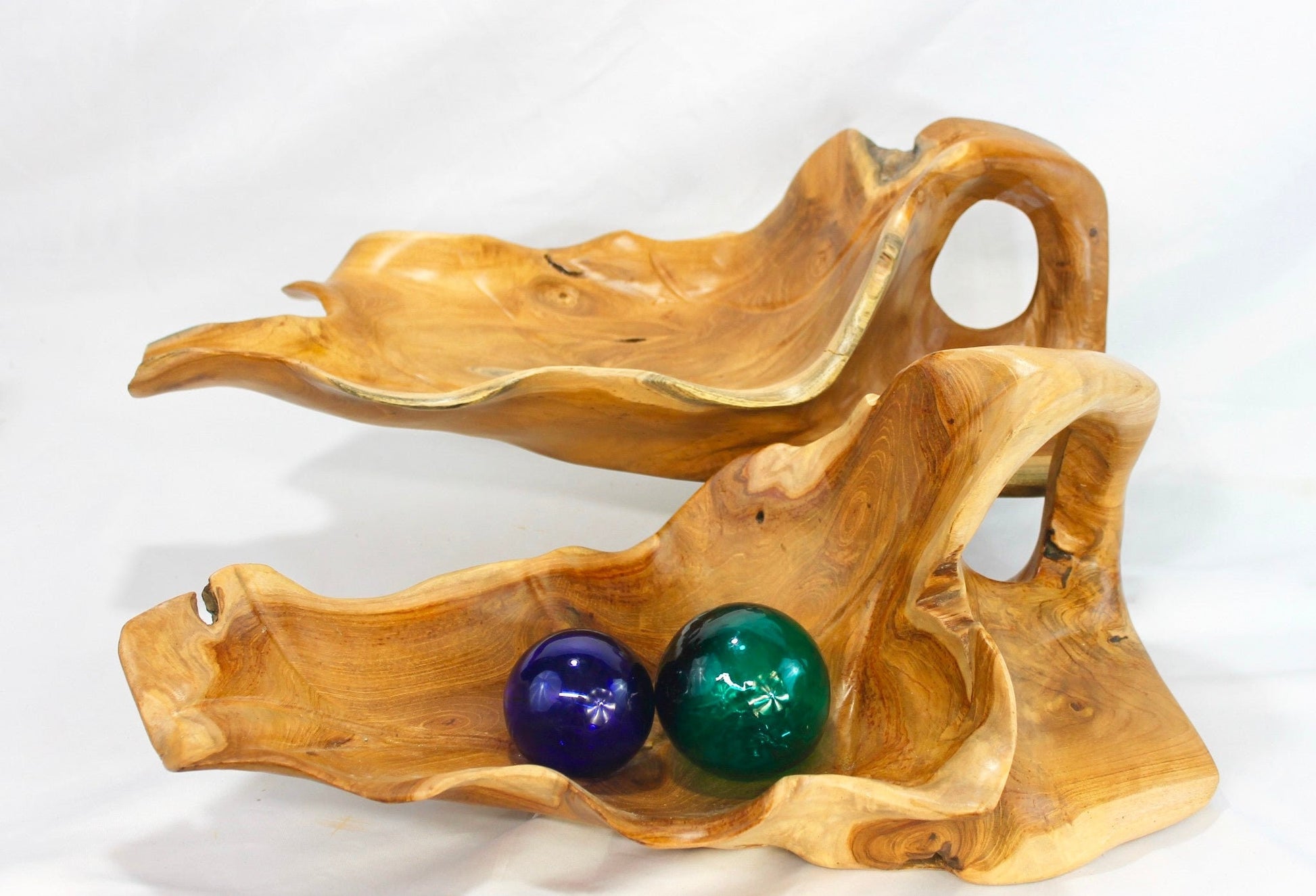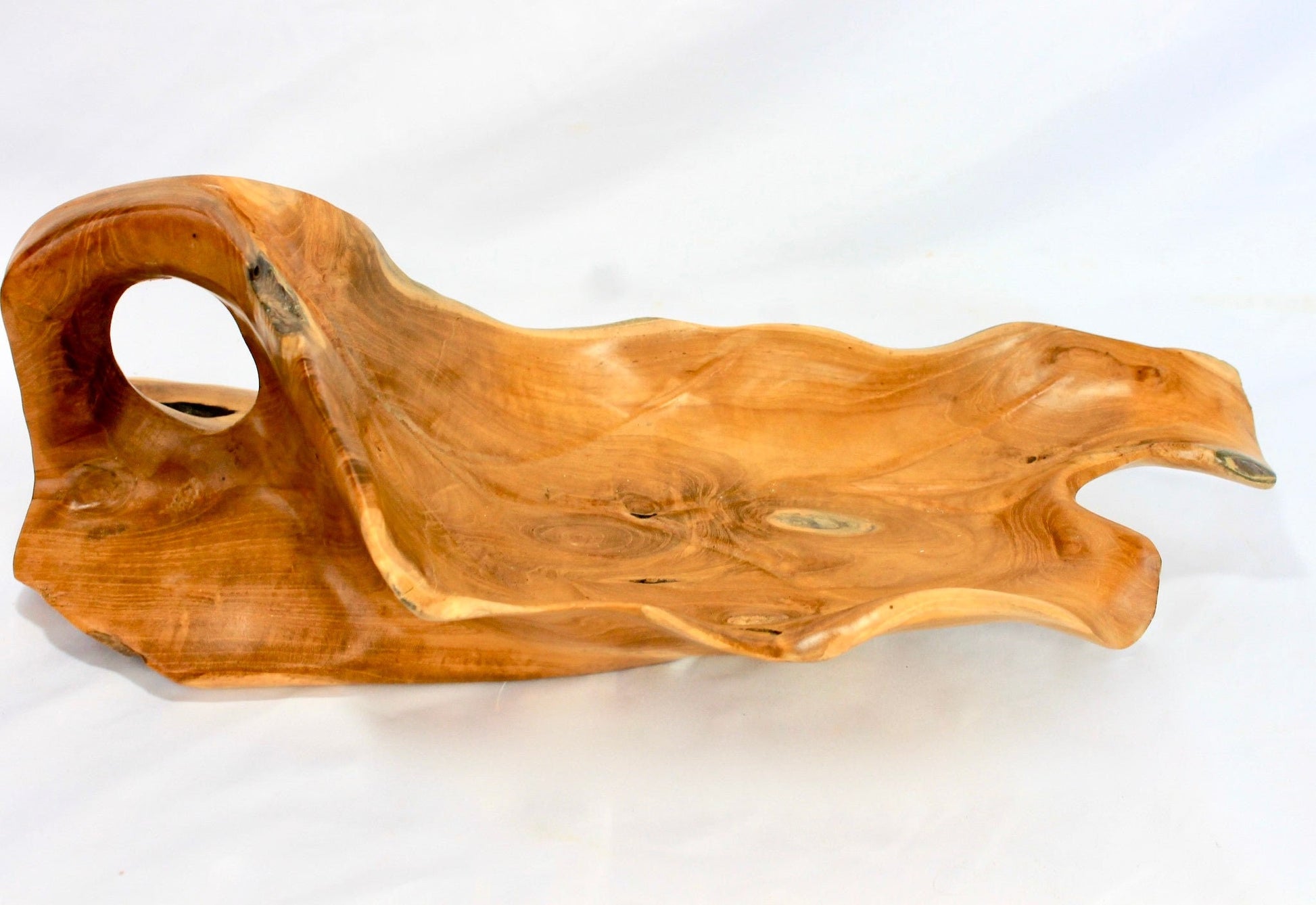 Reclaimed Teak Fruit Bowl Freeform leaf shape hand carved Table top decor repurposed wood