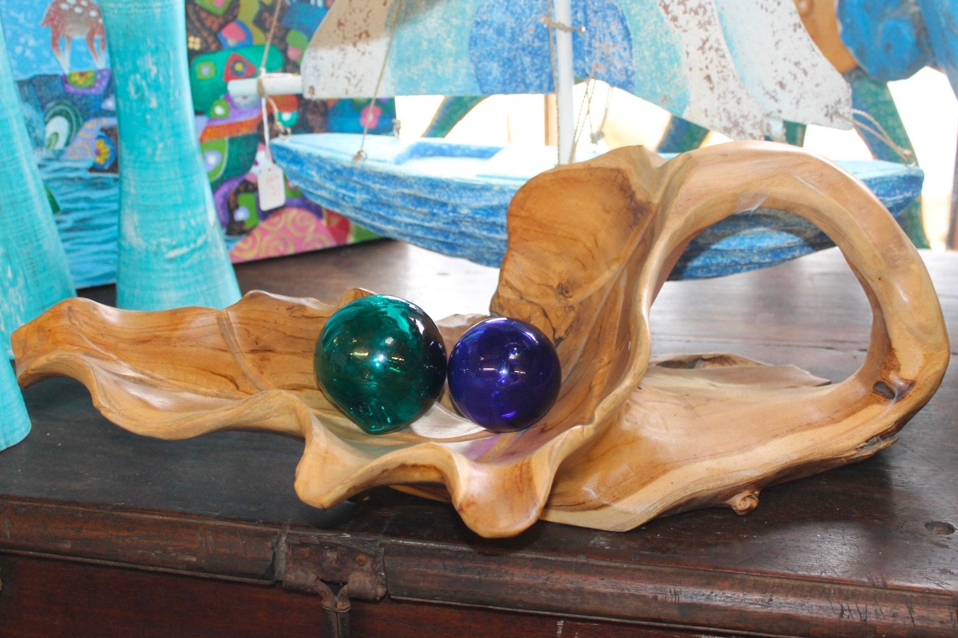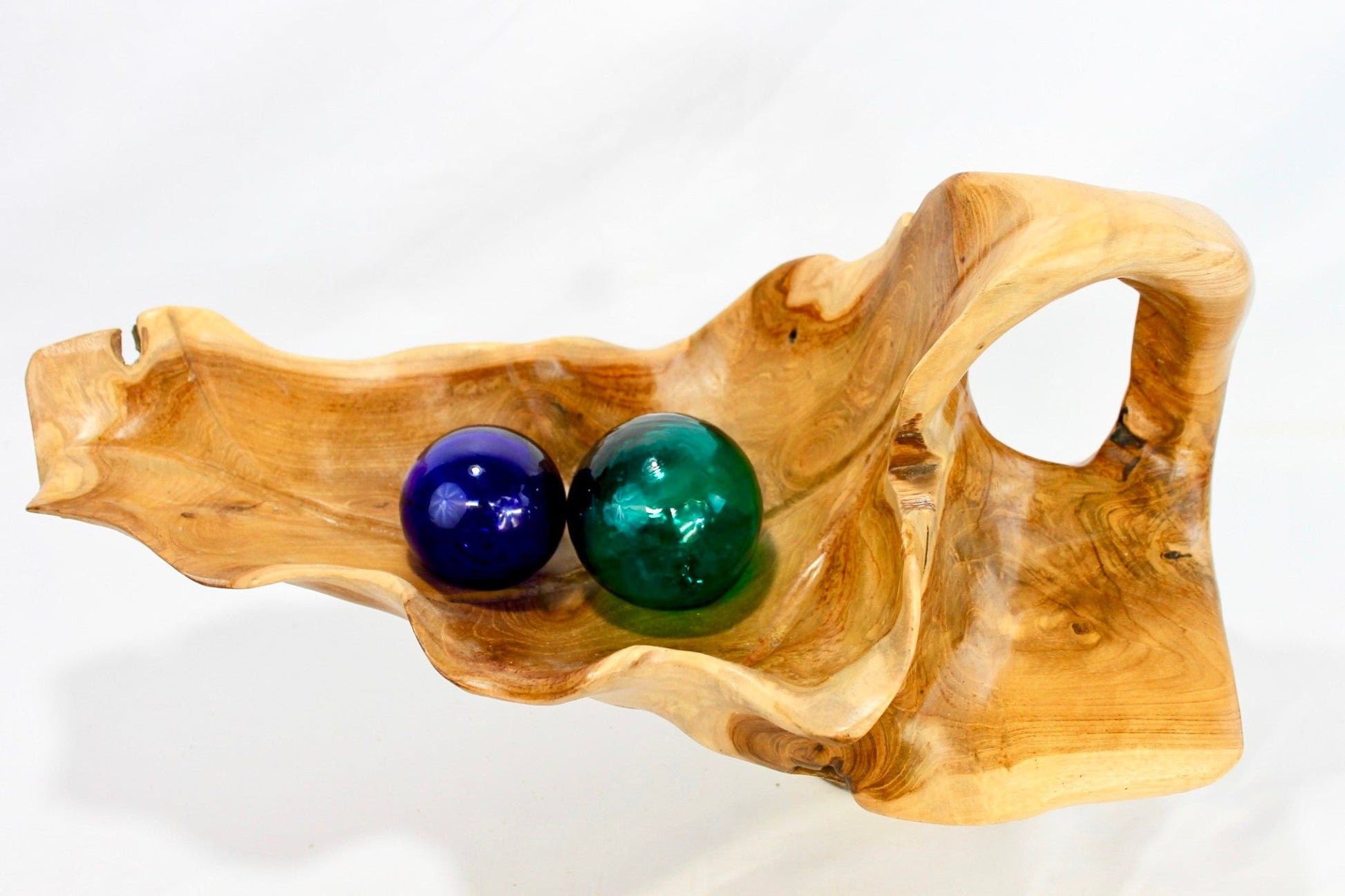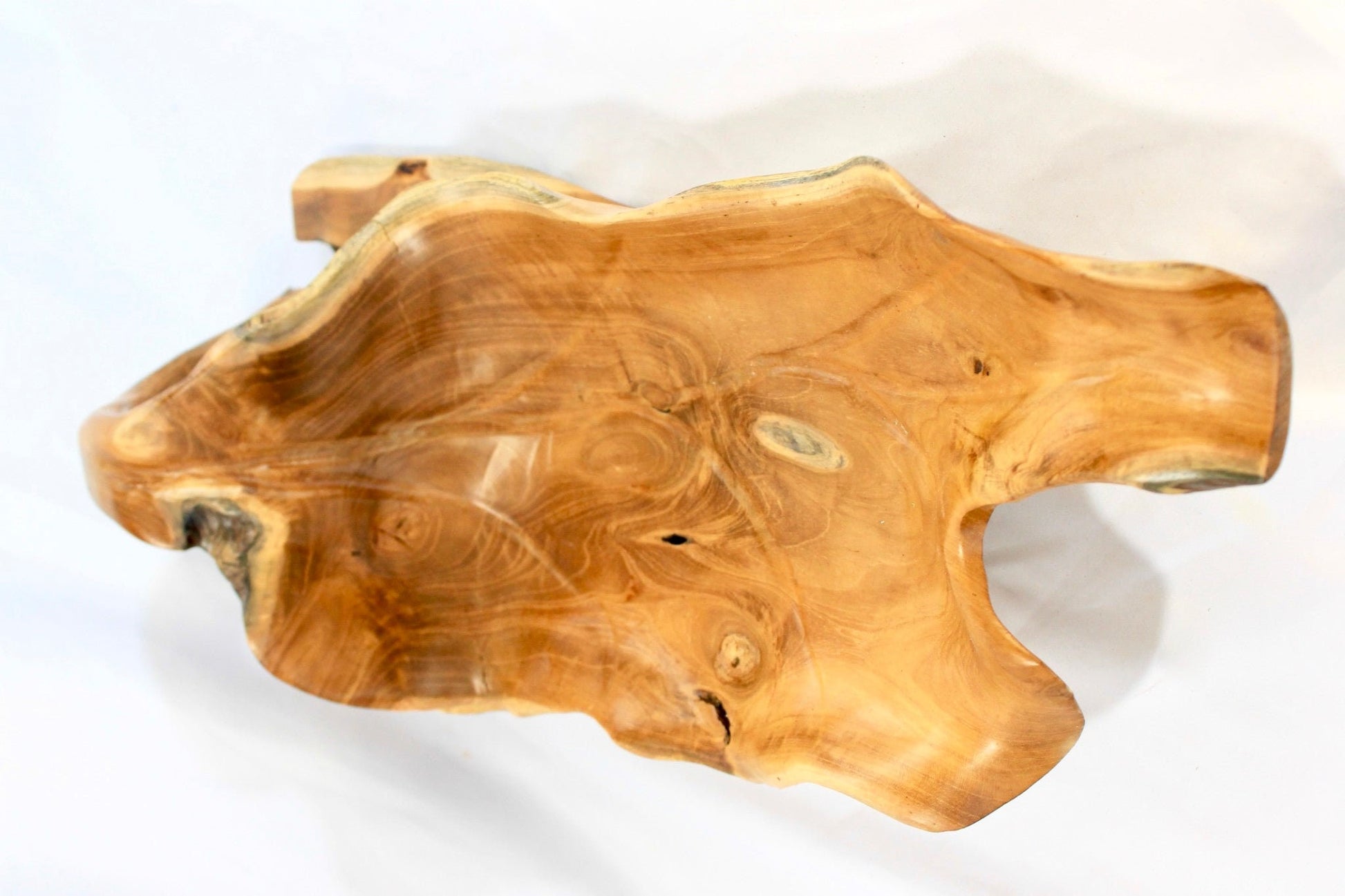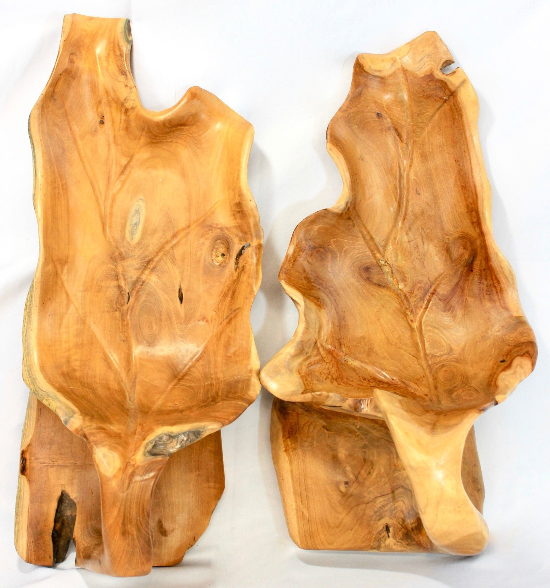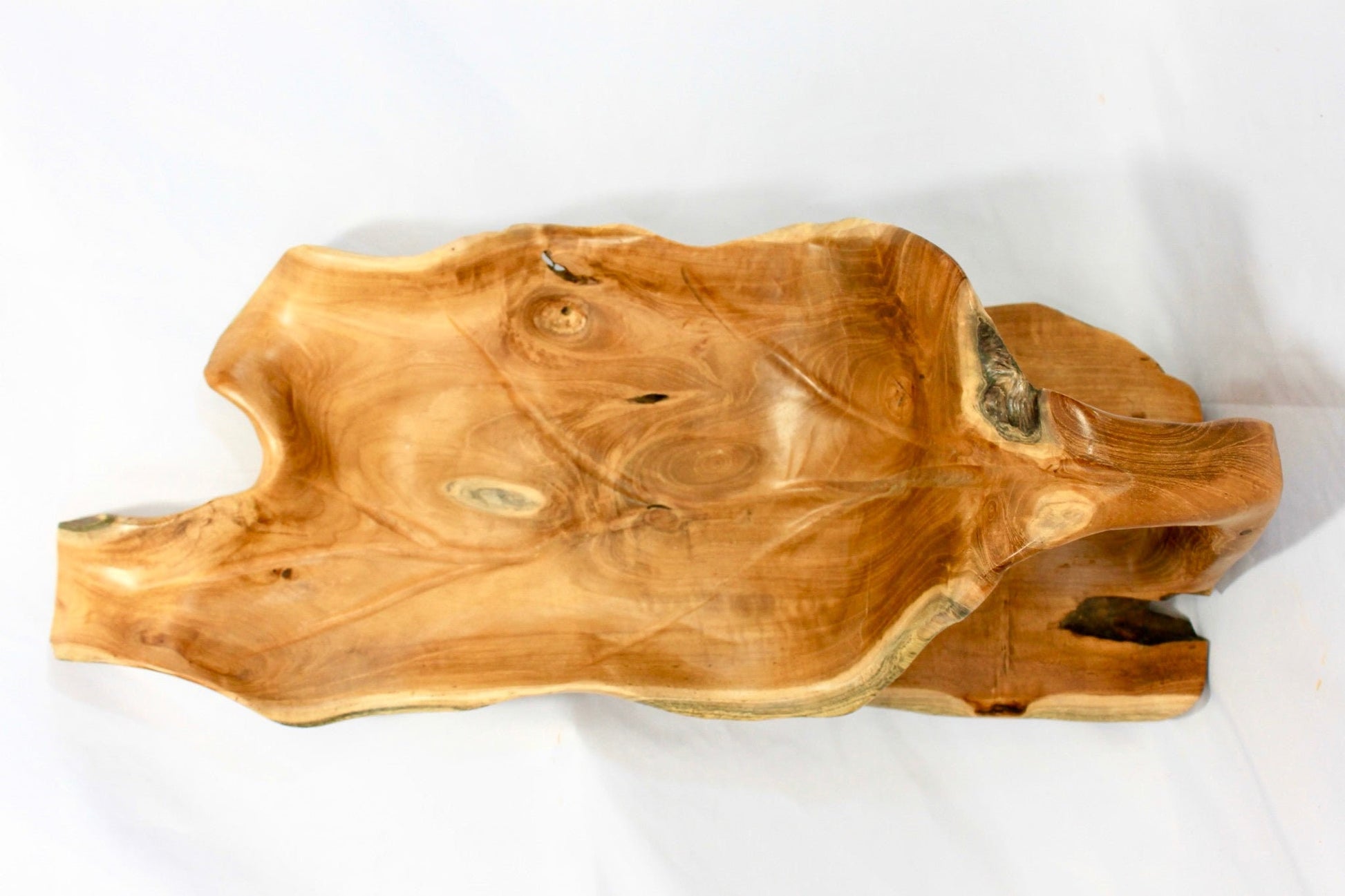 Reclaimed Teak Fruit Bowl Freeform leaf shape hand carved Table top decor repurposed wood