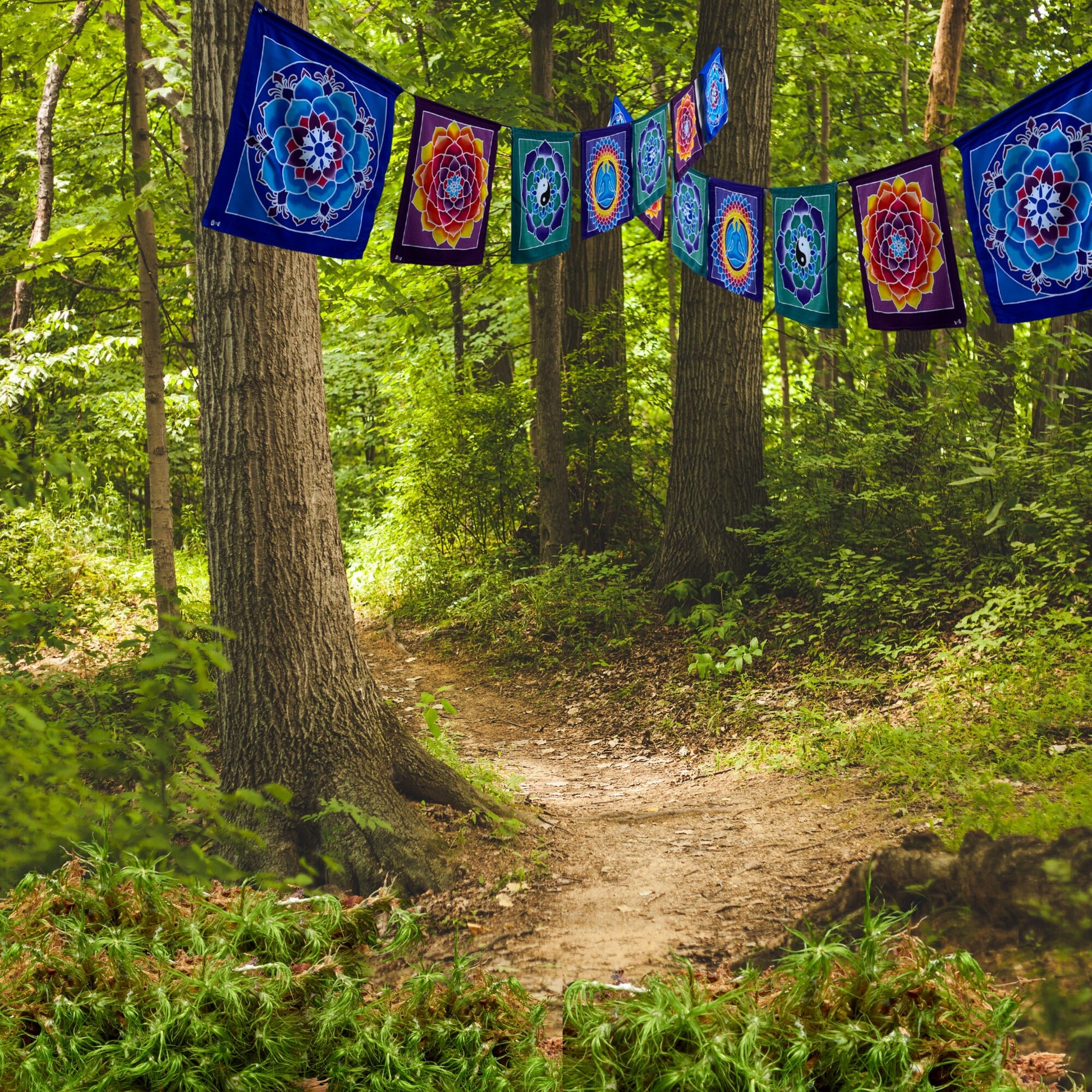 Only 100% high quality rayon and cotton cord are used, and are ready to hang. These great flags would be equally as beautiful inside your home or in the garden. Perfect for Yoga studios, spas or retreats too!