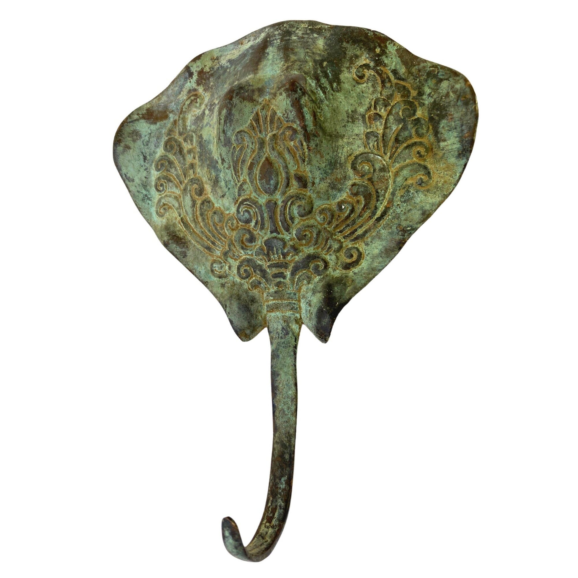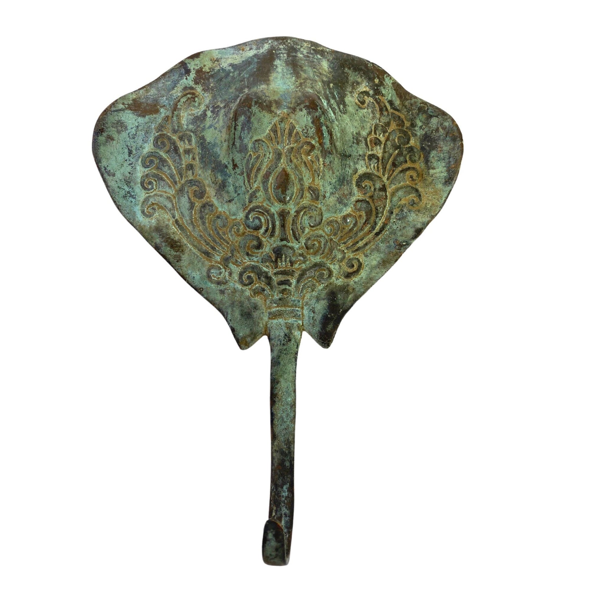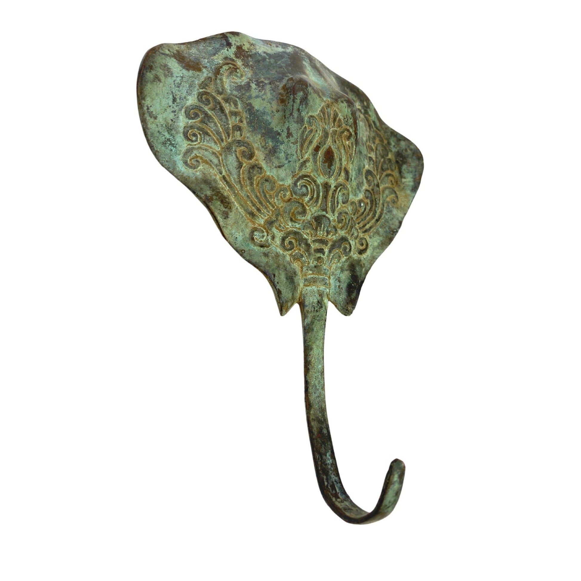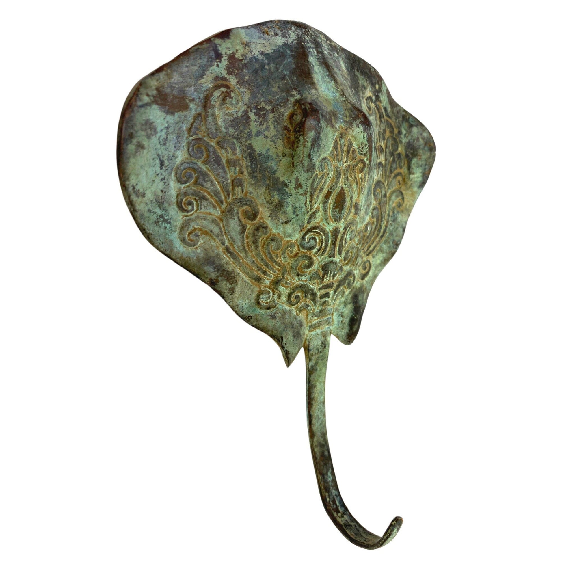 Skate Stingray Mantaray Wall Hook handmade coat hook Bronze Green Verdigris Patina metal Nautical Home decor