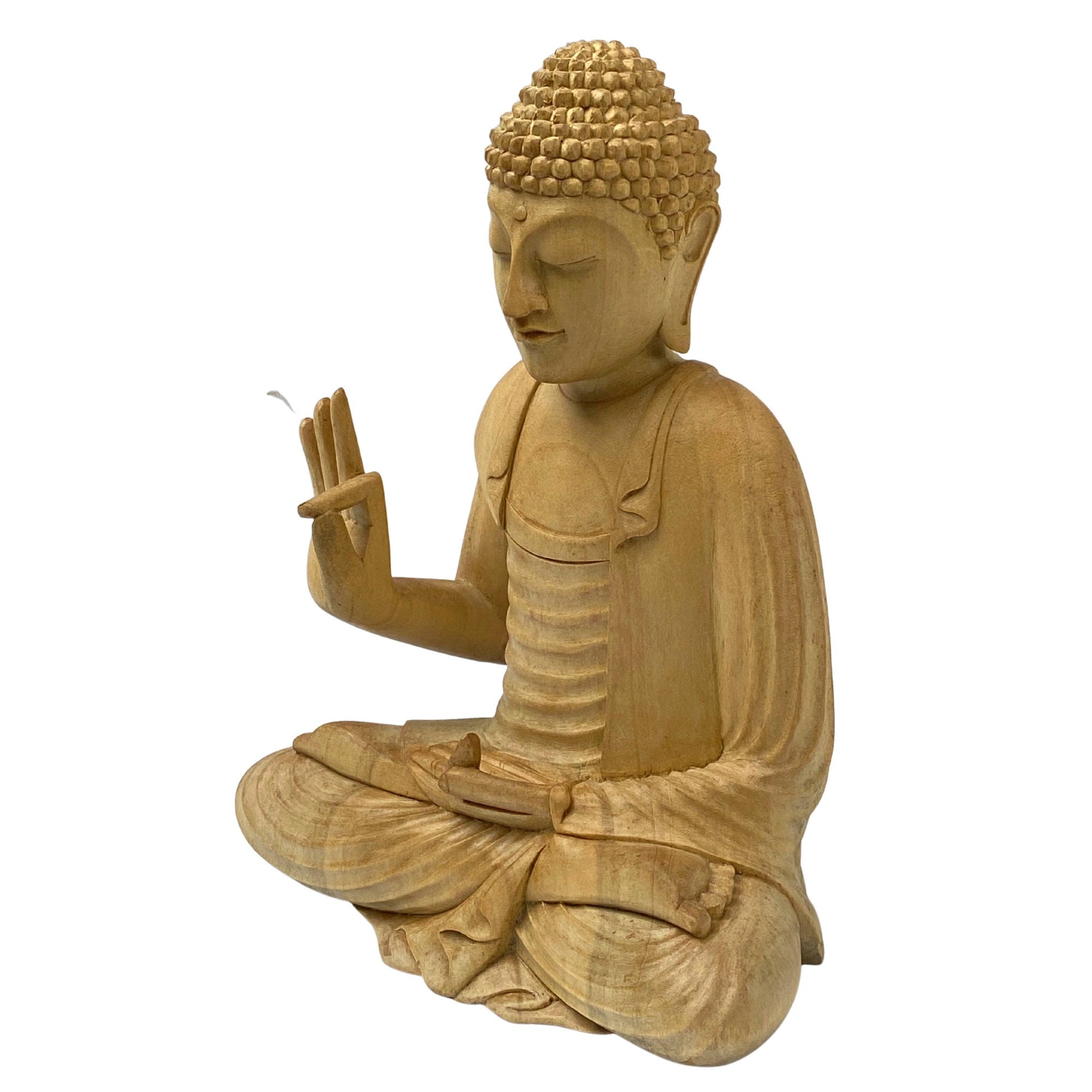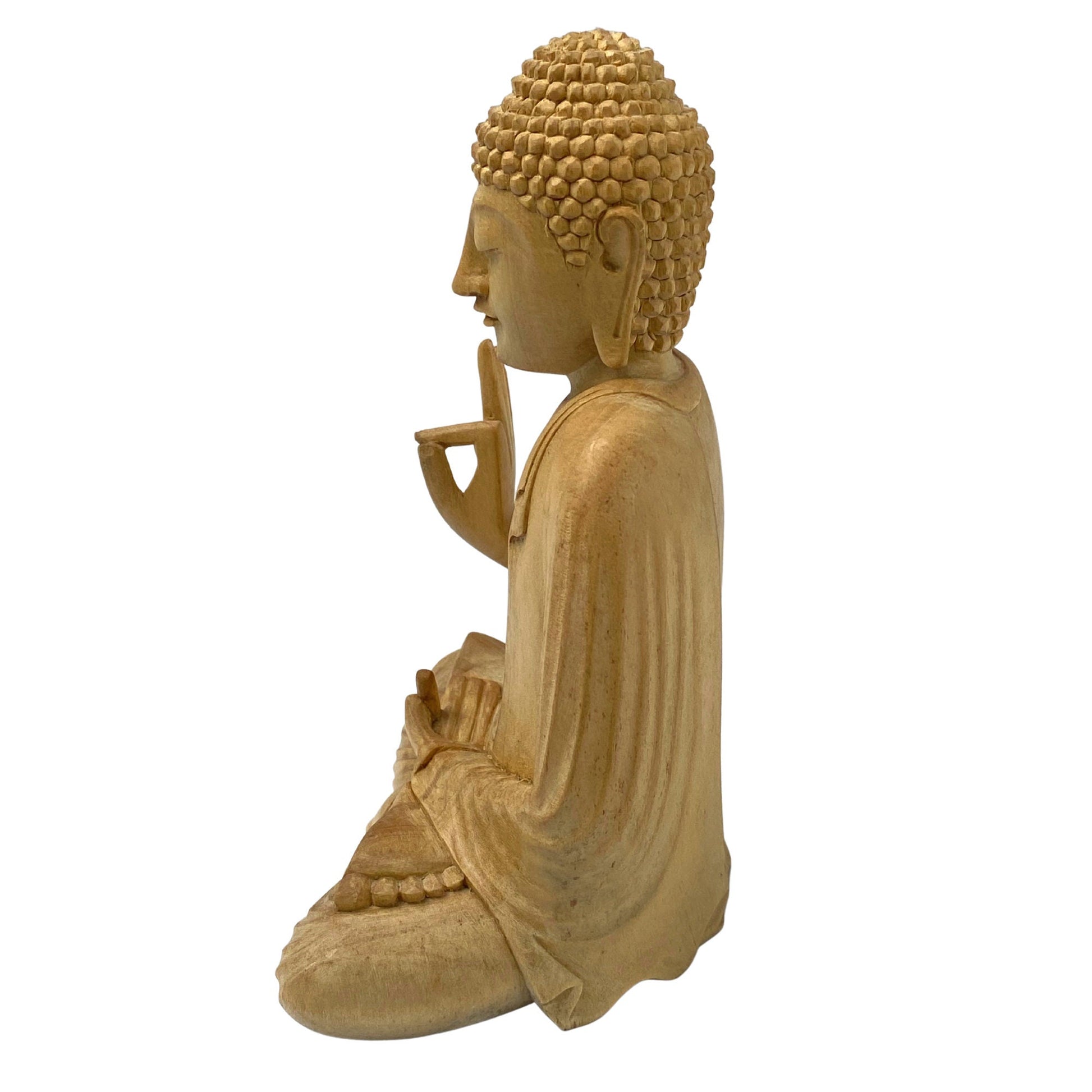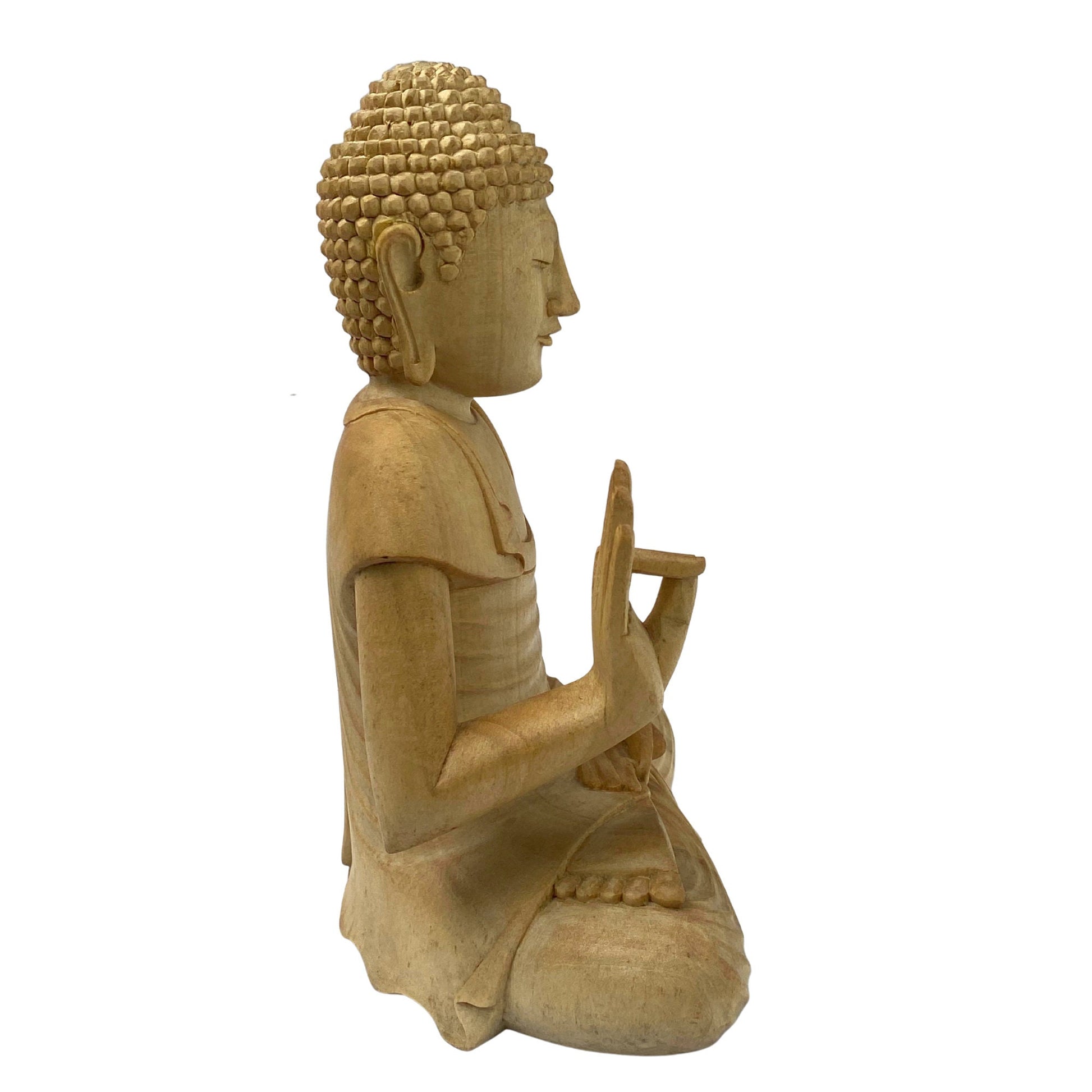 Teaching Buddha statue Dharmachakra Dharma Wheel Mudra Wood Carving Sculpture Bali Buddhist Art asian decor