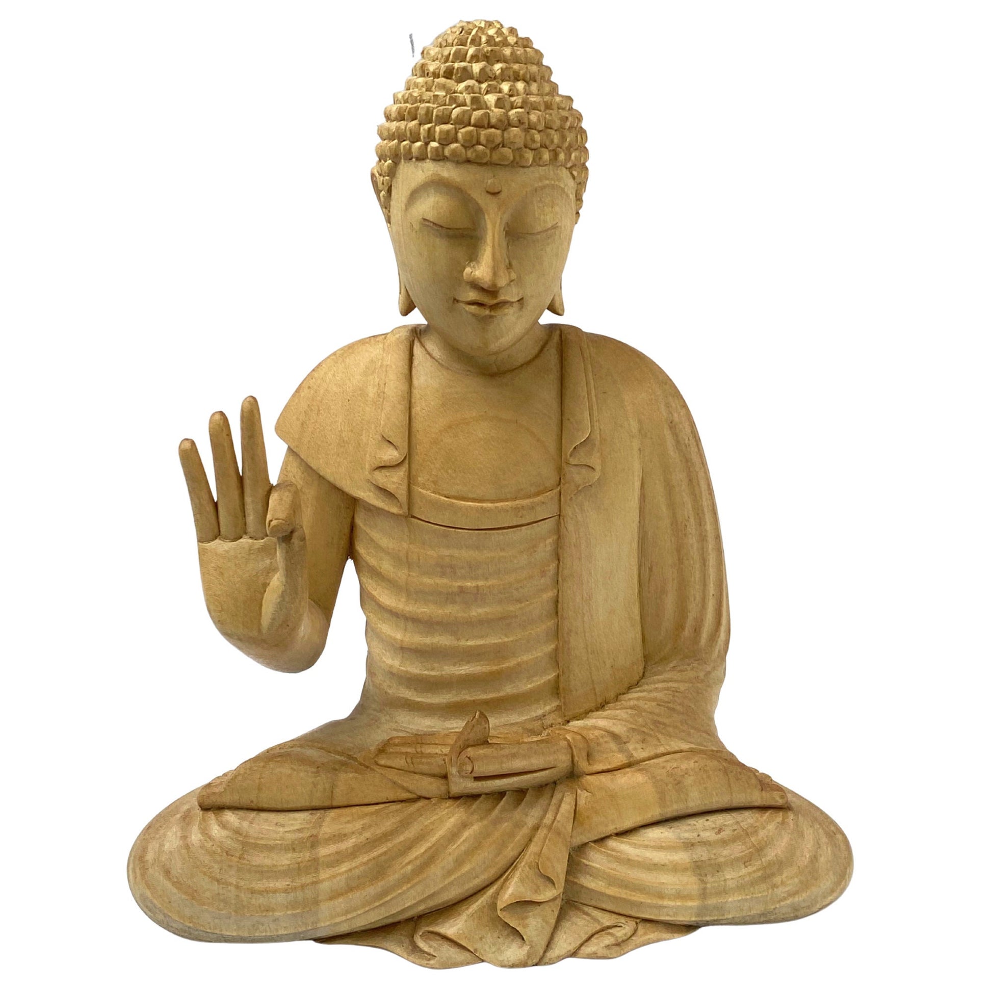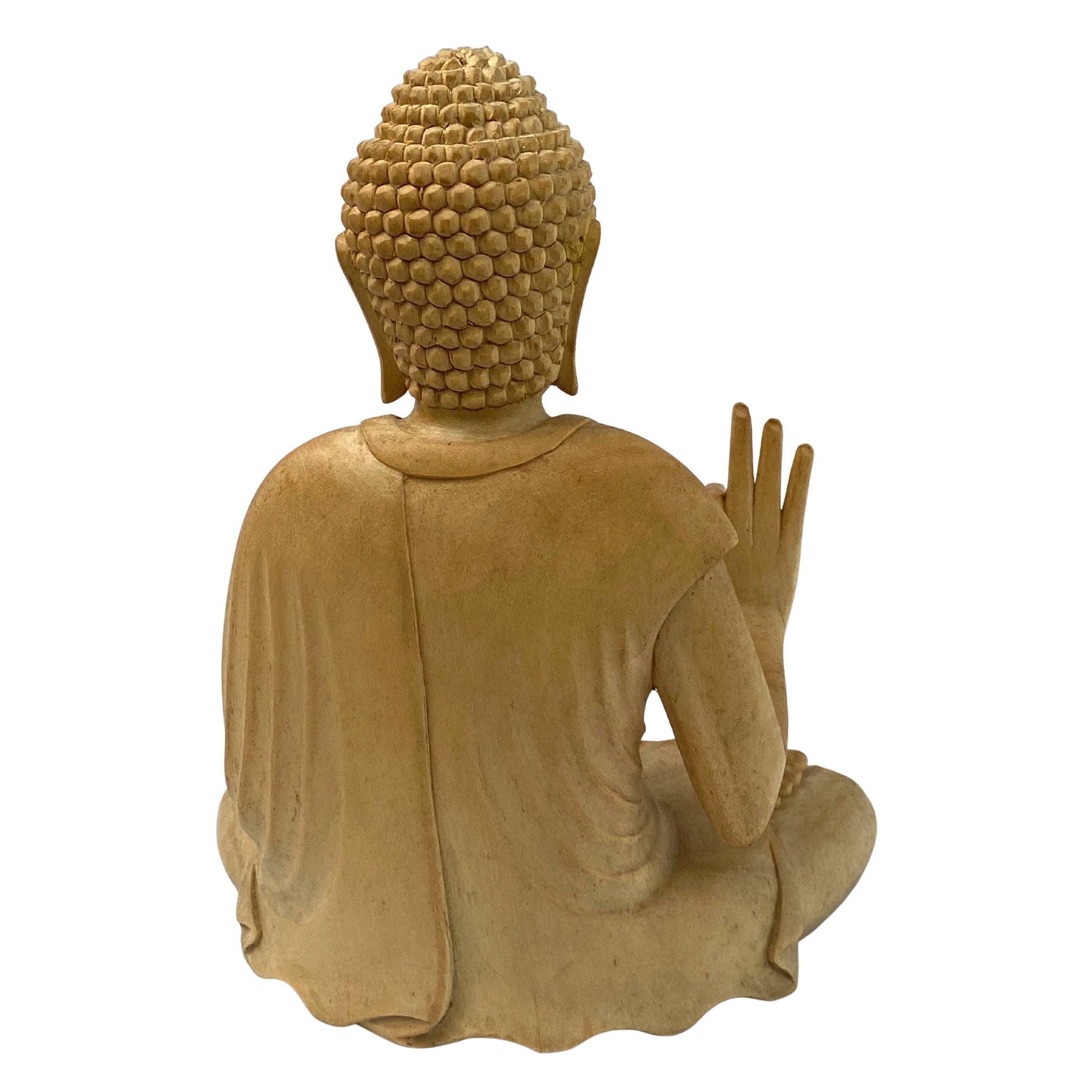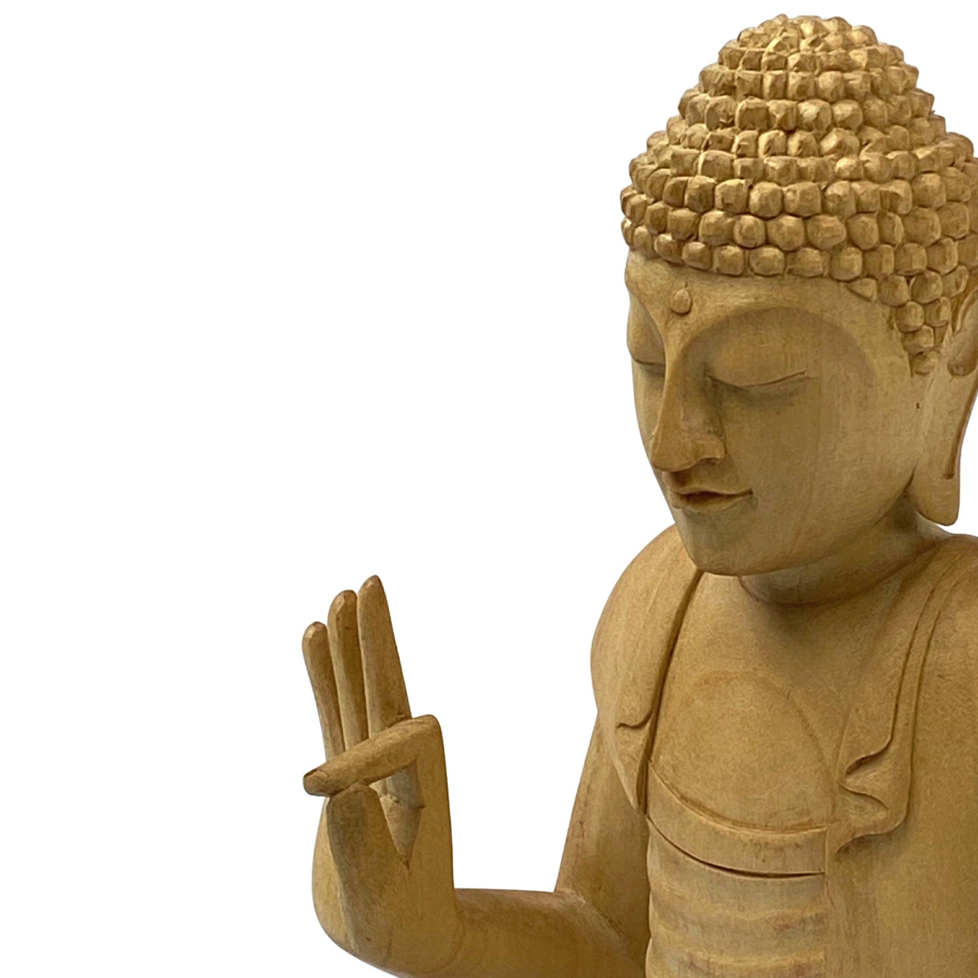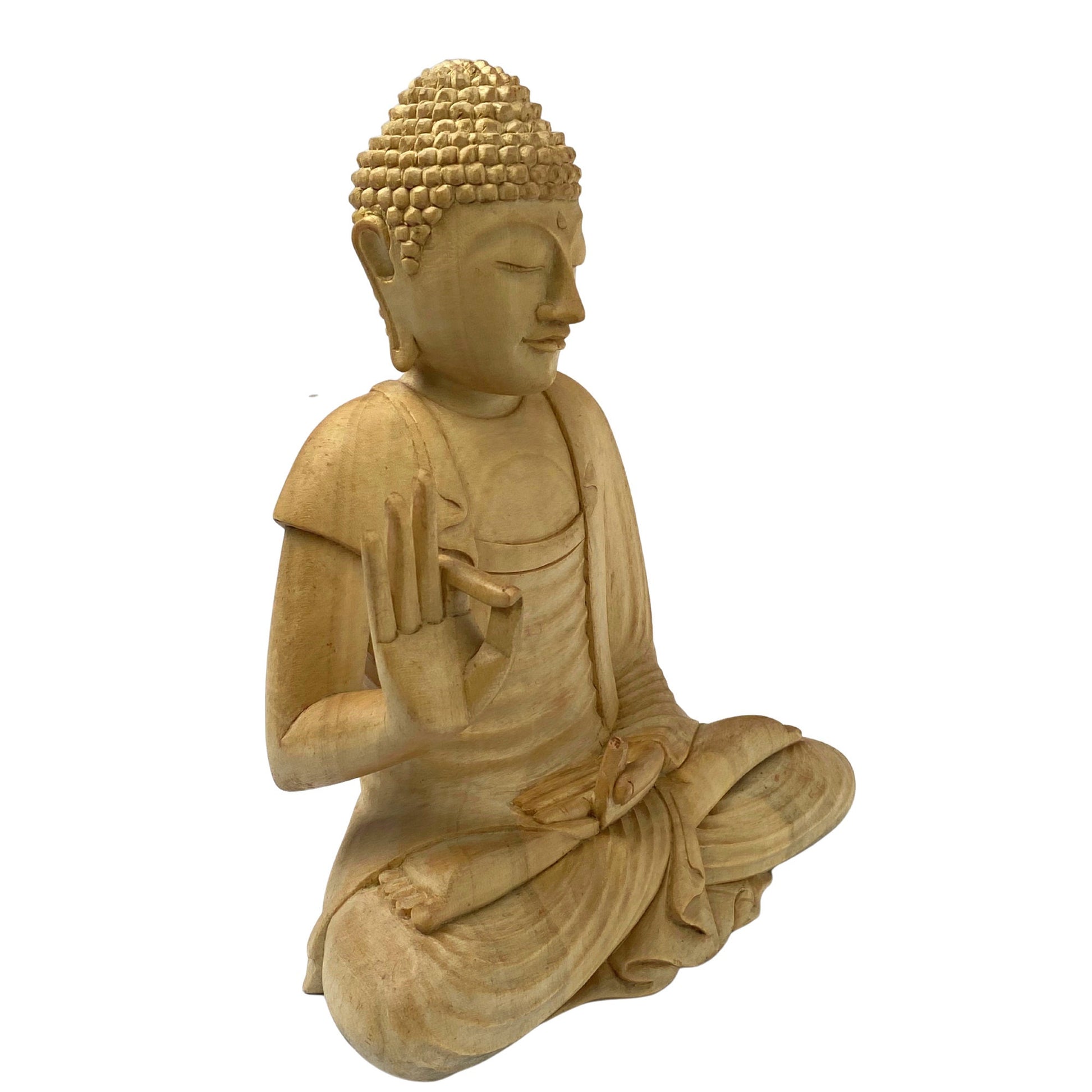Teaching Buddha statue Dharmachakra Dharma Wheel Mudra Wood Carving Sculpture Bali Buddhist Art asian decor