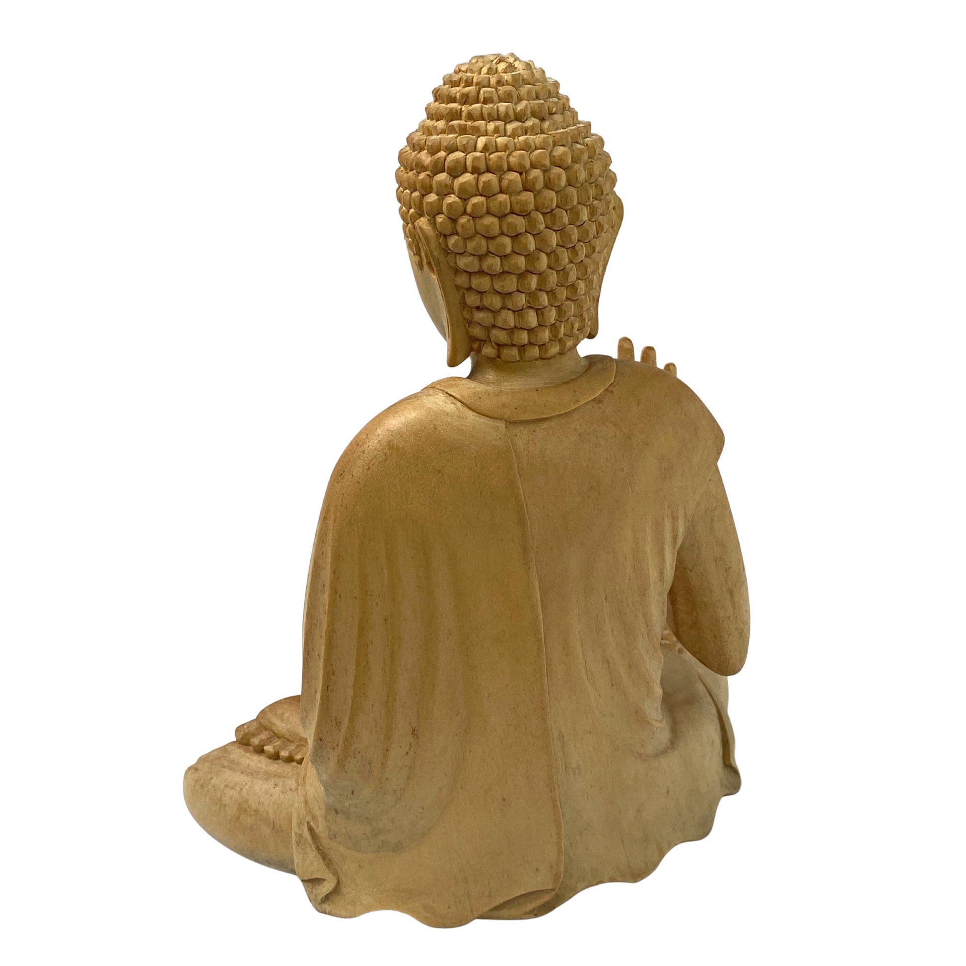This Buddha has a beautiful presence & expression. Very peaceful and serene as the Buddha is seated in the lotus pose, the hands are perfectly carved and held in what is known the gesture of Teaching the Wheel of Dharma or Dharmachakra Mudra that describes one of the most important moments in the Buddha’s life.