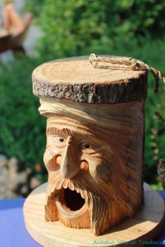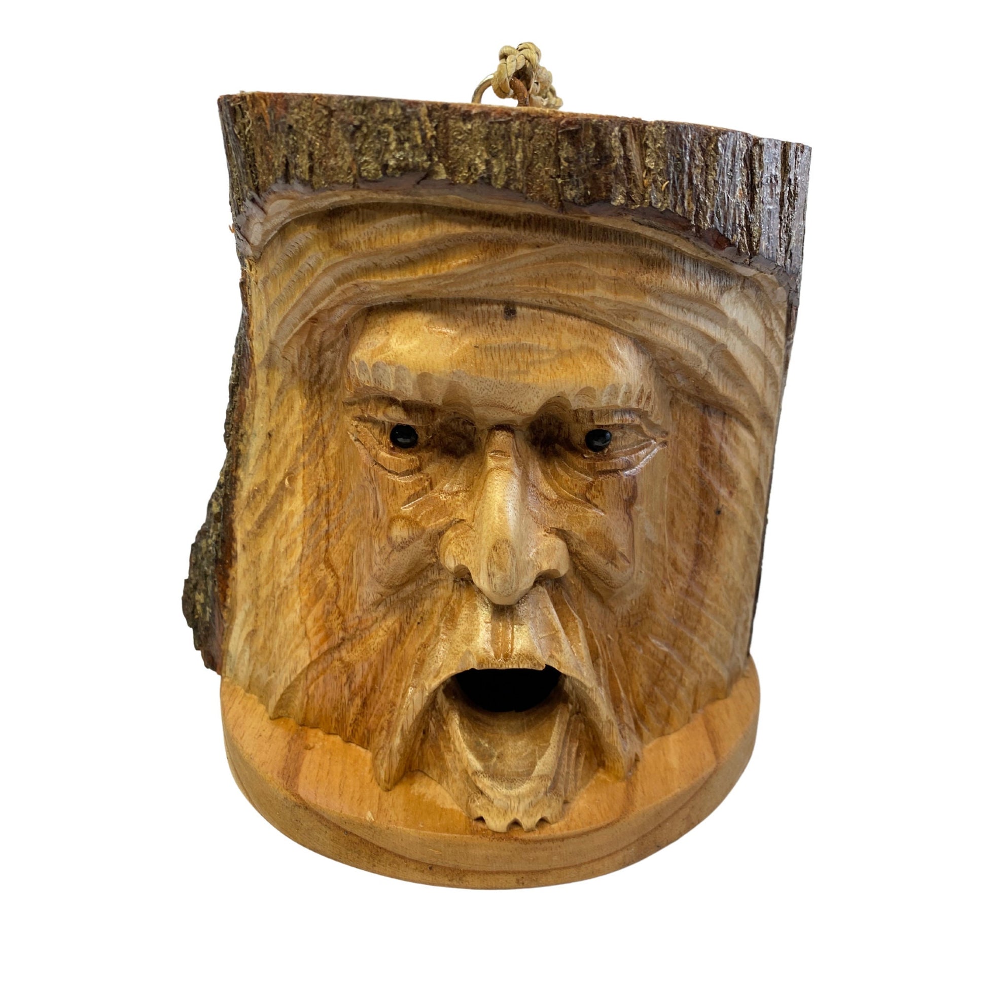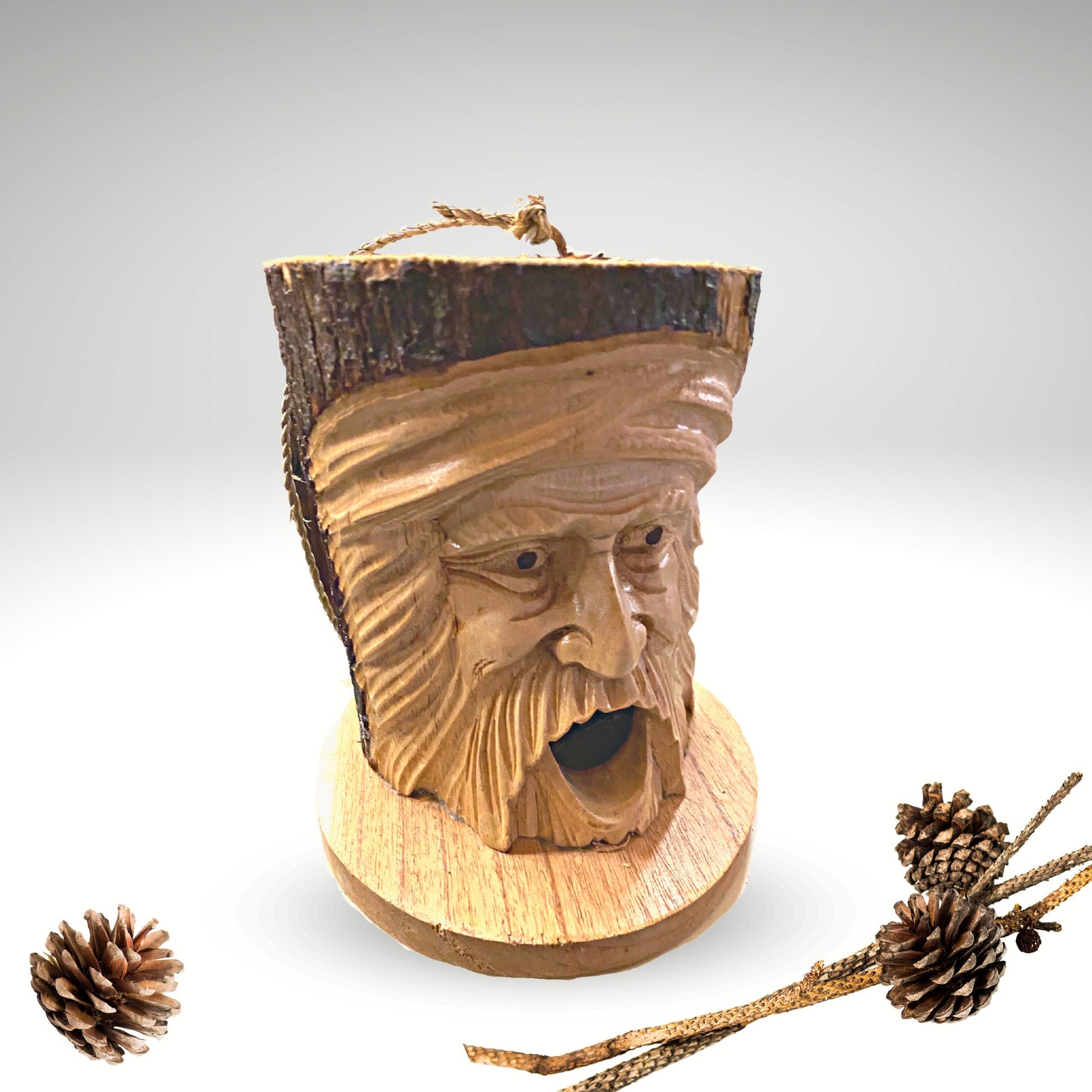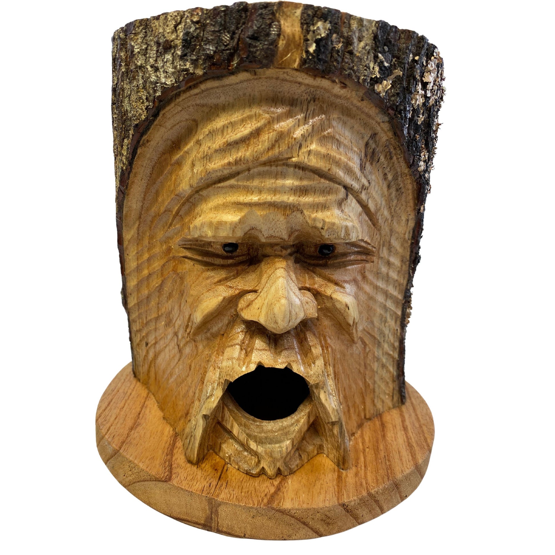 Tree Spirit Bird house Wizard Old Man Rustic Hand Carved Wood Carving Bird House Bali Art