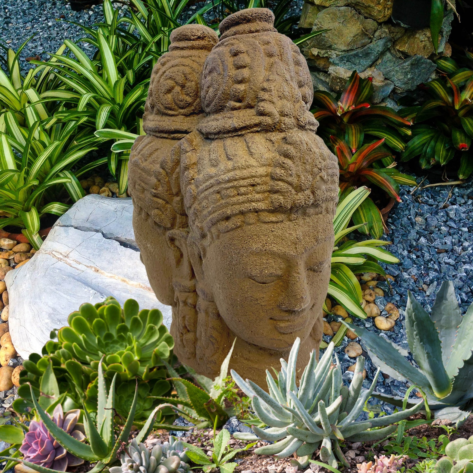 Trimurti Garden Statue cast lava concrete stone sculpture Brahma Vishnu Shiva Hindu Trinity Handmade Balinese Yard Art