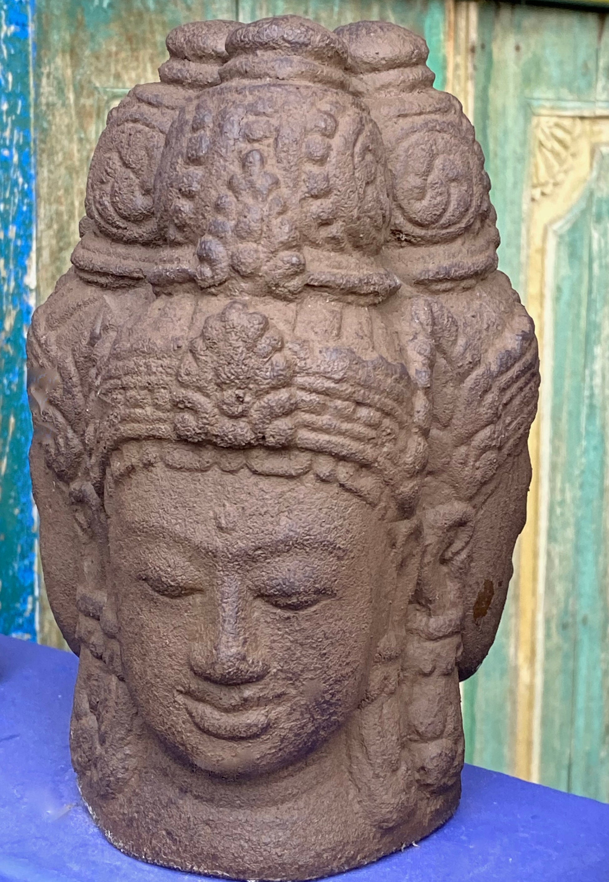Trimurti or the Hindu Trinity, Shiva, Brahma and Vishnu. This has three beautiful faces topped by a nicely detailed headdress. Each face is also adorned on each side by ornate earrings.