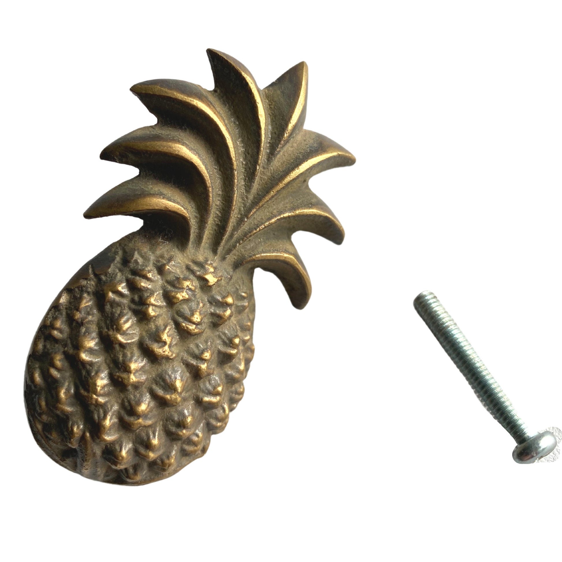 This classic pineapple knob, the symbol of hospitality, is meant to be mounted on a cabinet, drawer or chest as a knob, handle, drawer pull or as a wall-hook. Solid brass, comes with screw, you will receive one pineapple knob. A beautiful and unique addition to your homes eclectic decor.