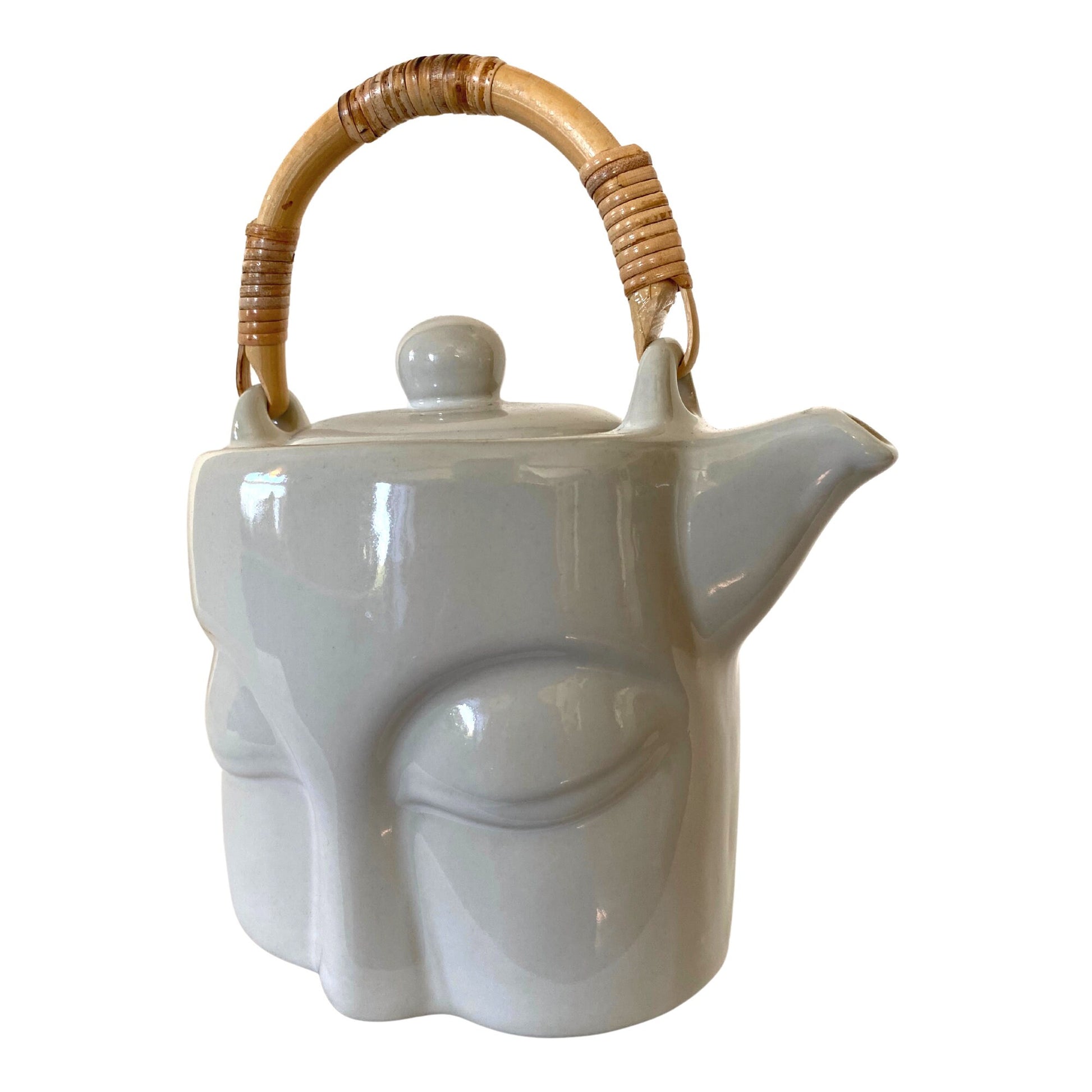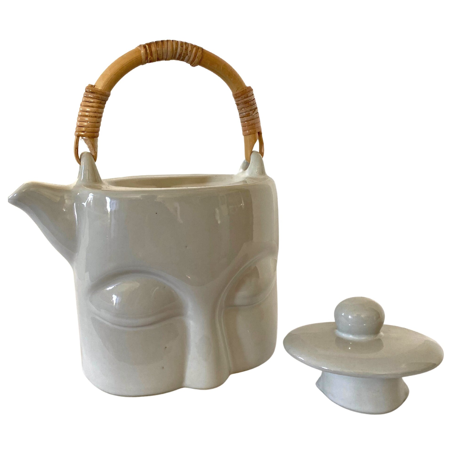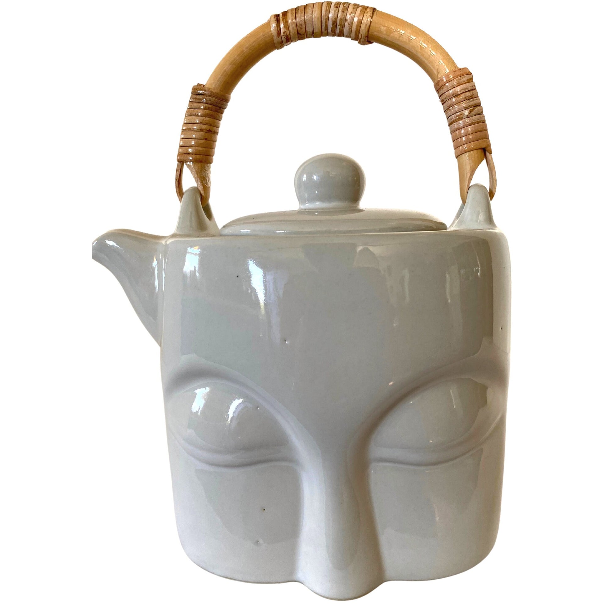 Wise Buddha Eyes Teapot Tea Pot Handmade Ceramic White Glazed Pottery Bali Art Tea Ceremony Eclectic Decor