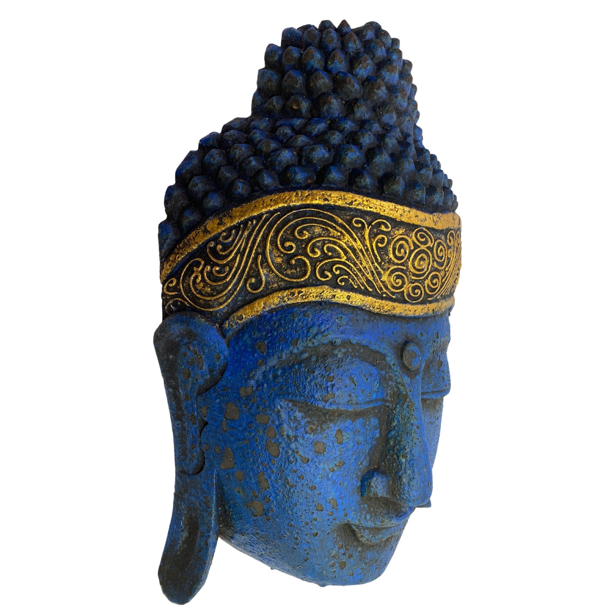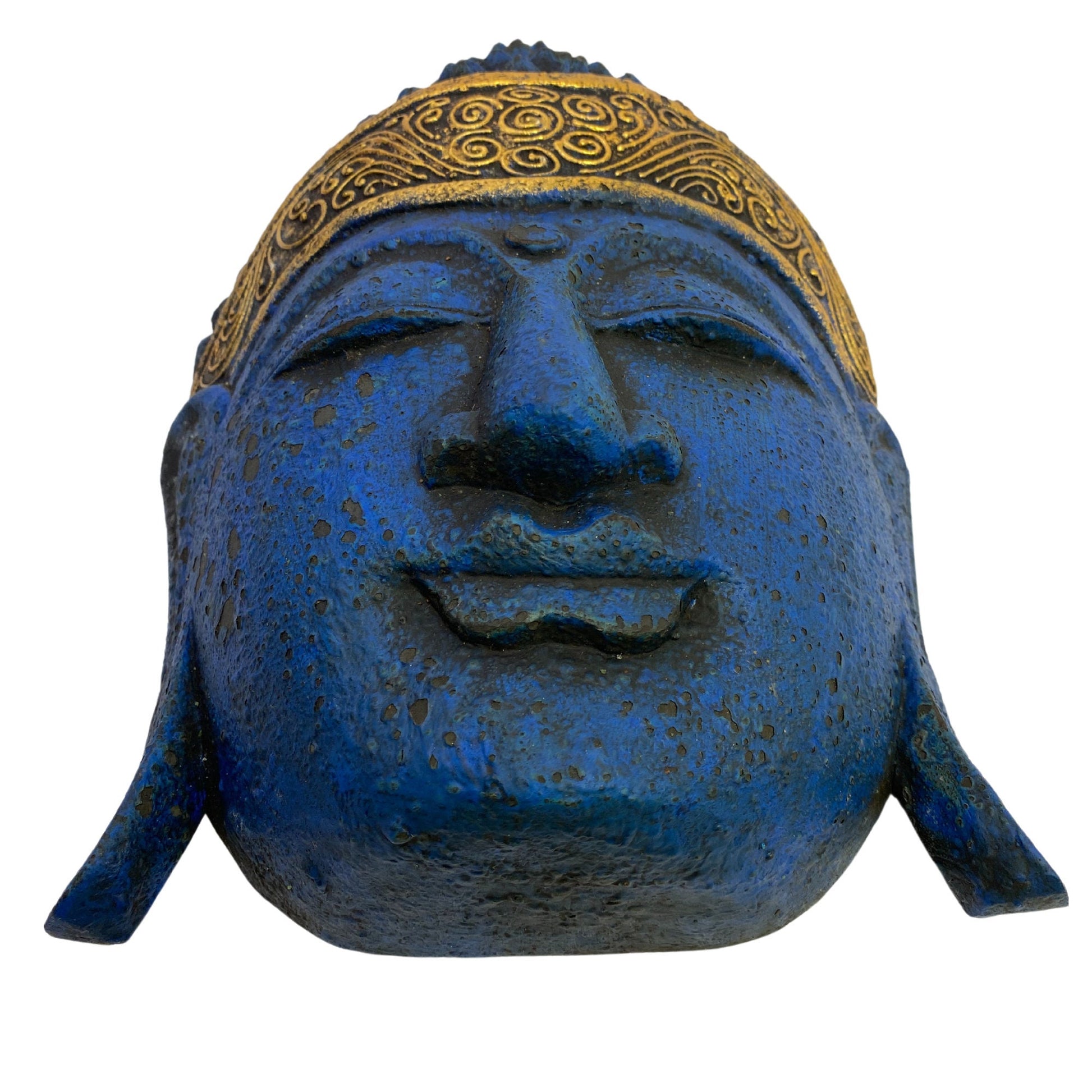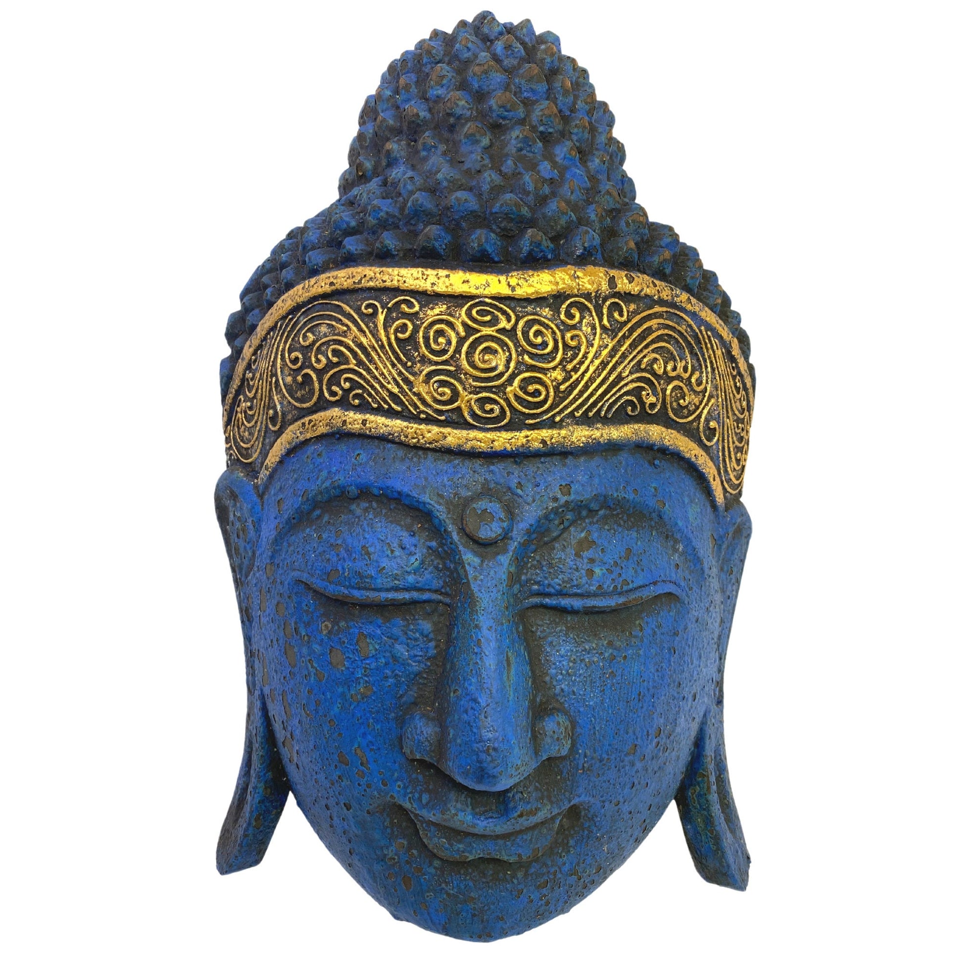 Antique Blue Buddha Mask, hand carved and painted in a distressed antique paint finish technique by talented artisans high in the spiritual heartland of Bali, this is an amazing work of art. Carved from one solid chunk of suar wood.
