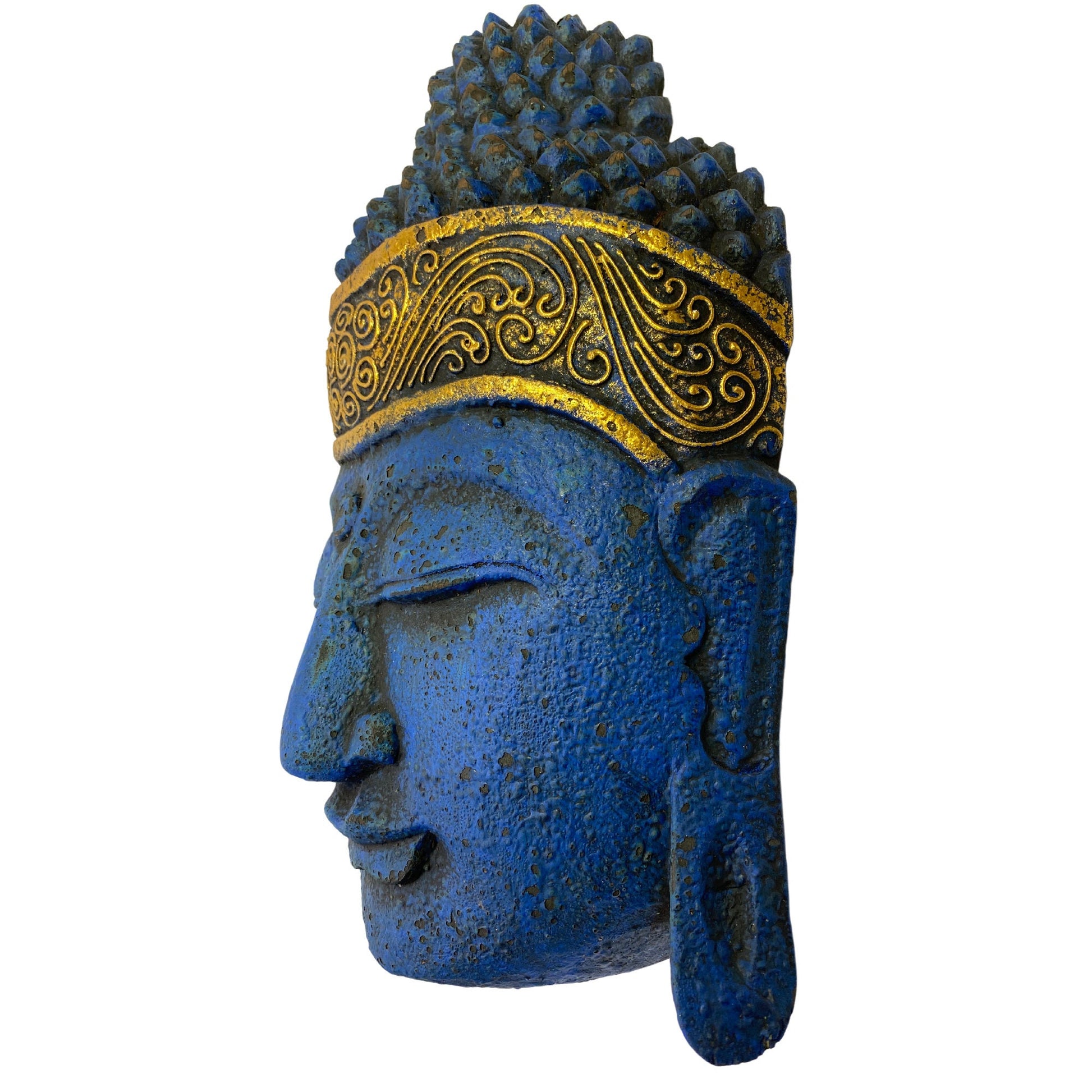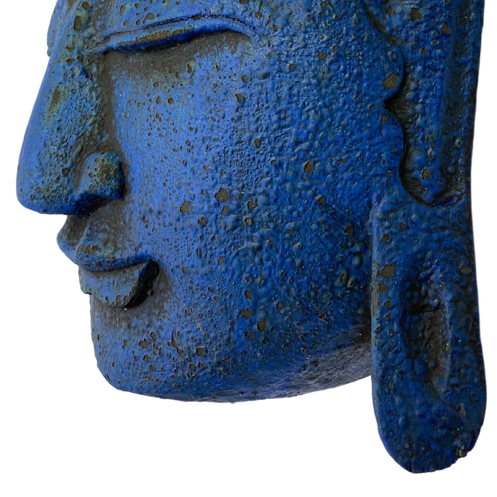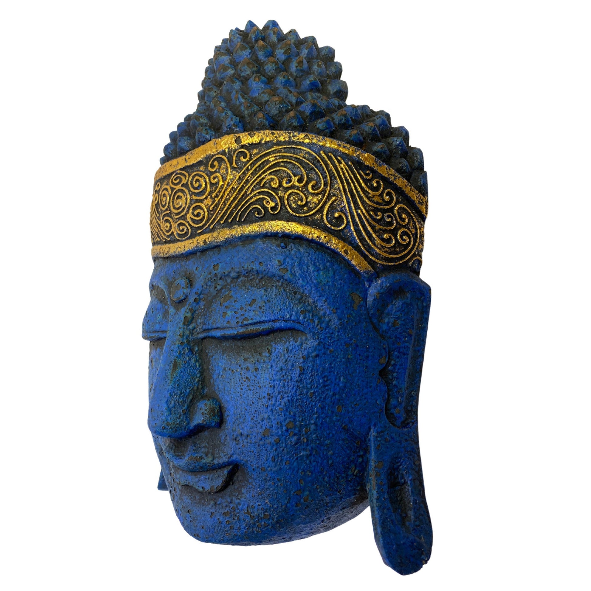 Wooden Blue Buddha Mask Hand Carved Wood Carving Balinese Eclectic Wall decor Folk art Handmade 16"