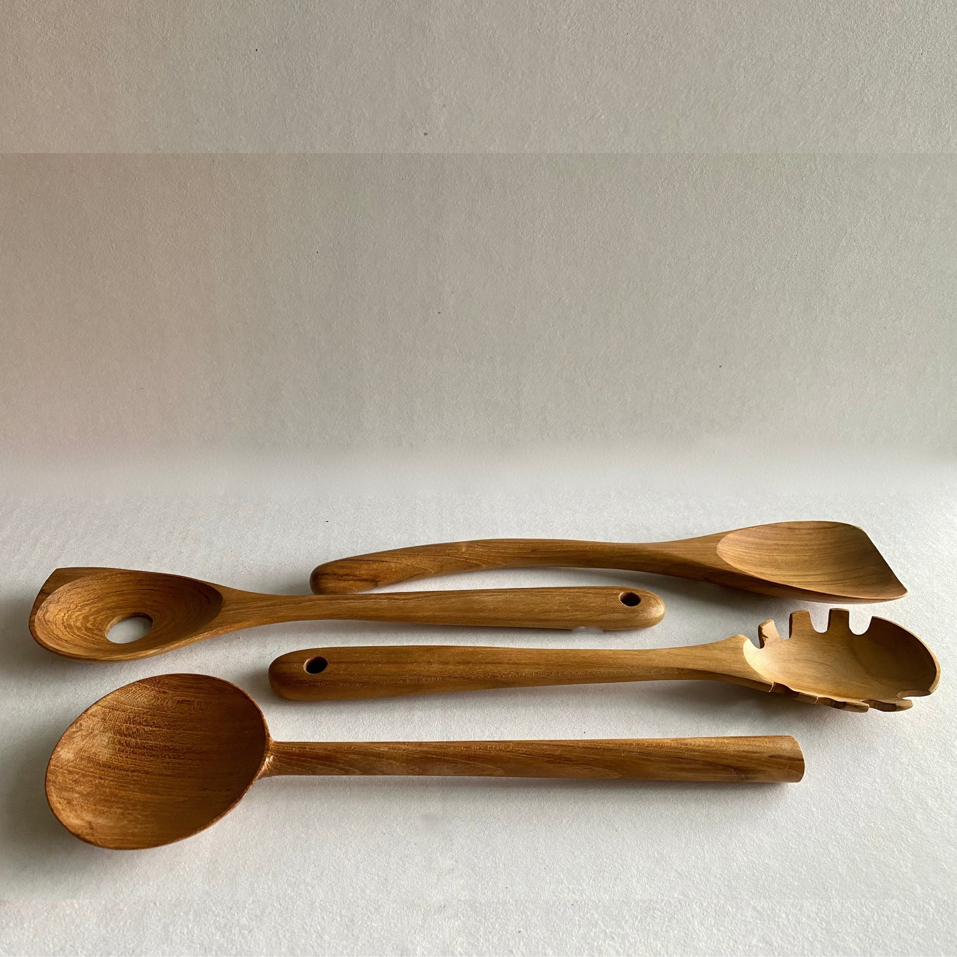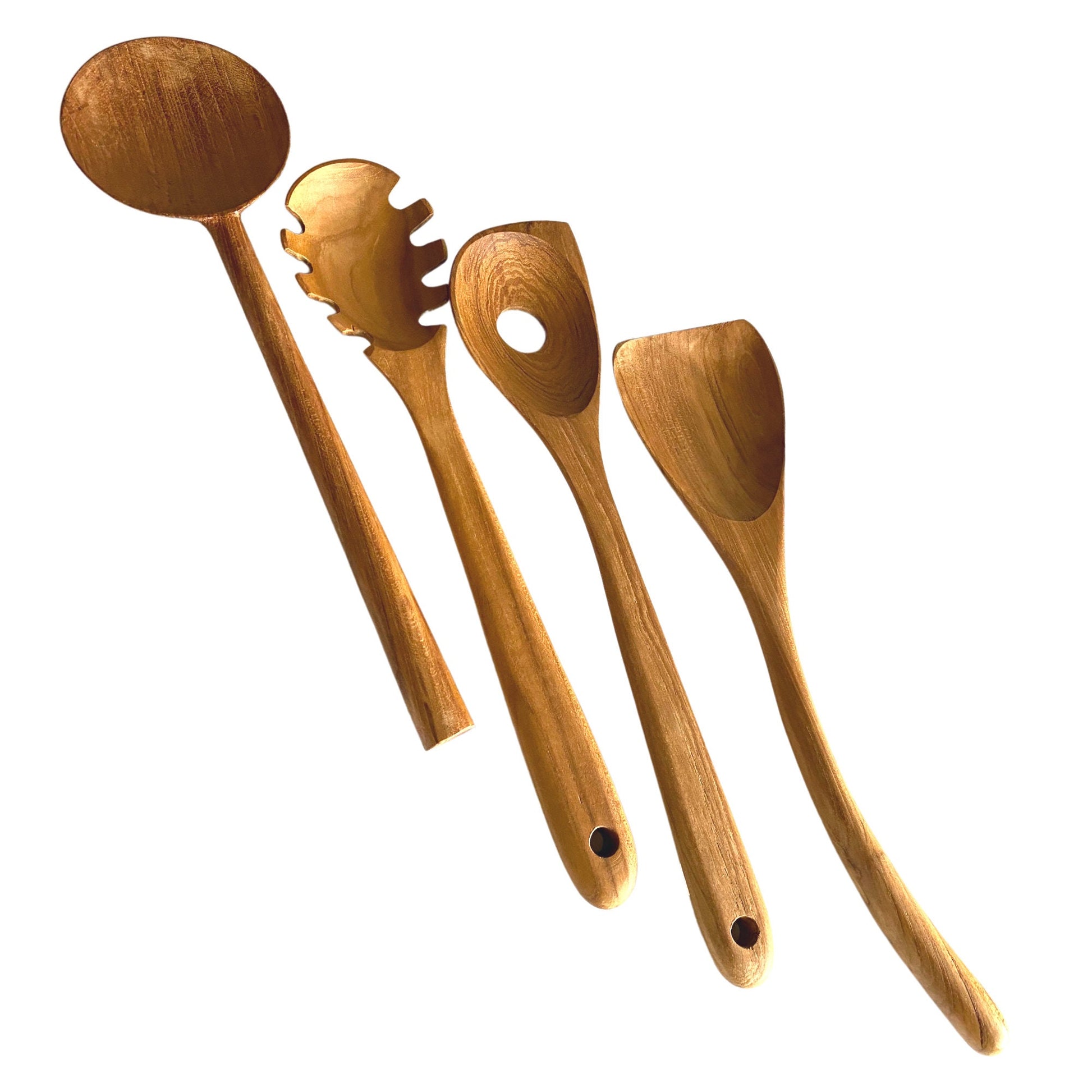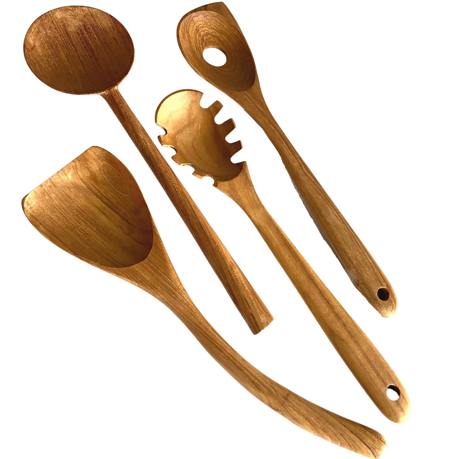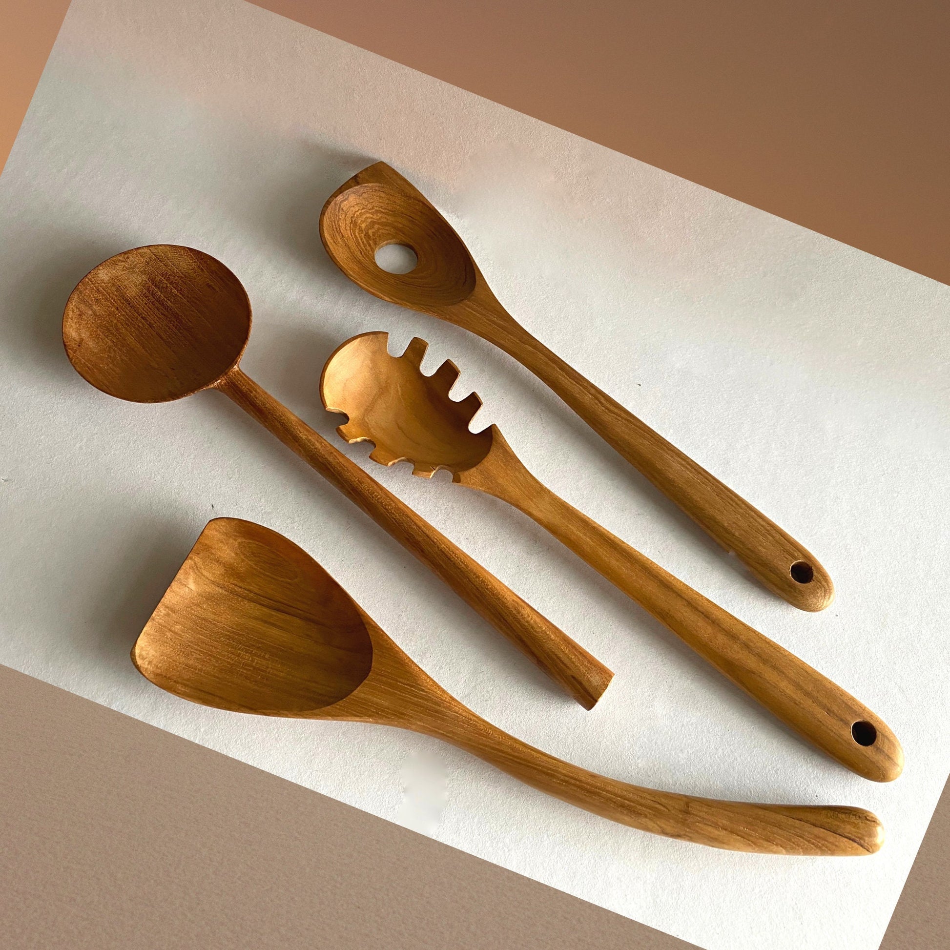 Wooden Spoon wood Ladle Pasta spoon Stir-fry Spatula Hand carved sustainable Teak Wood Kitchen tool Utensil